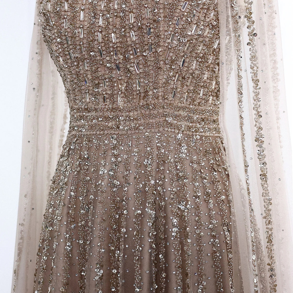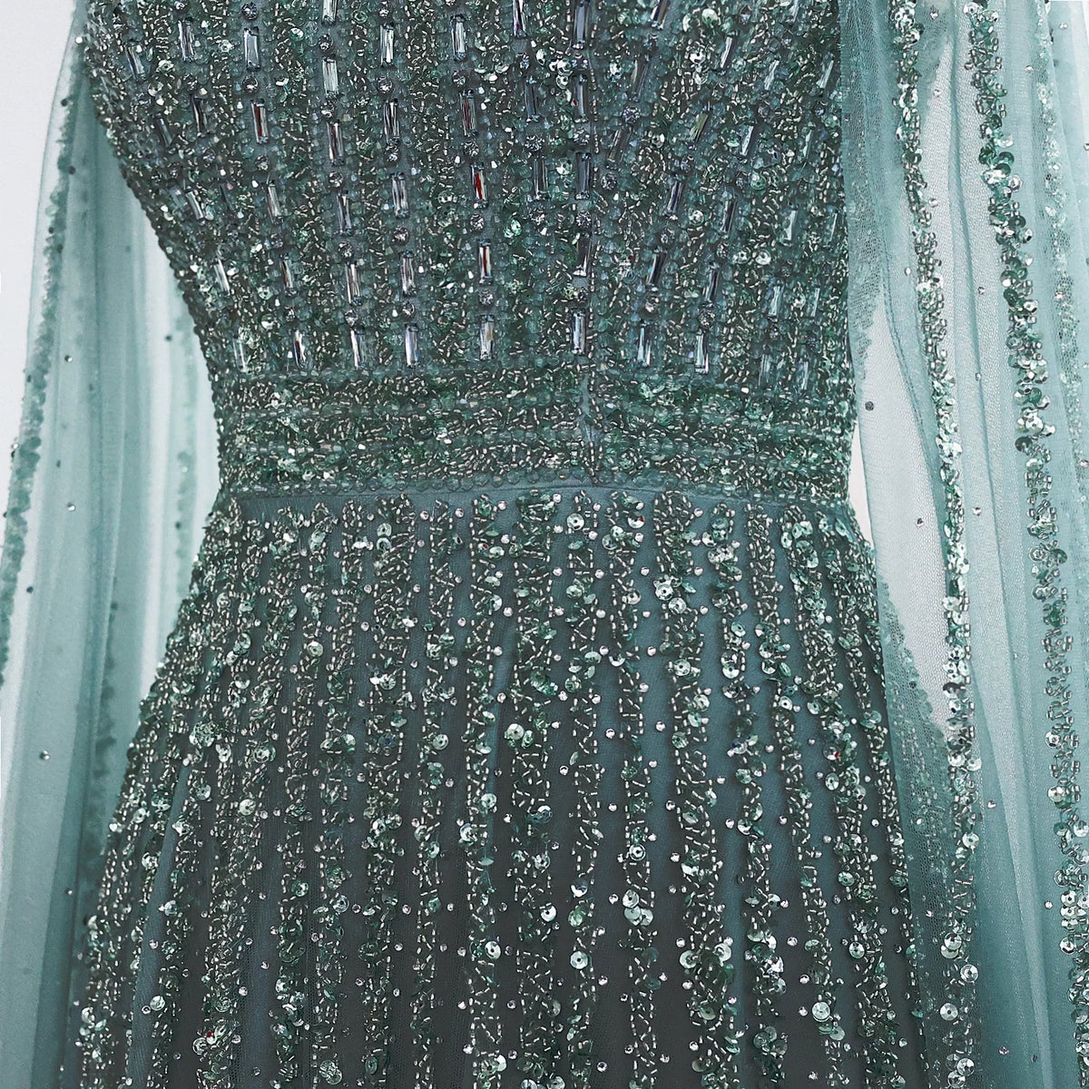 Arabic Turquoise Luxury Dubai Evening Dress with Cape Sleeves SS085