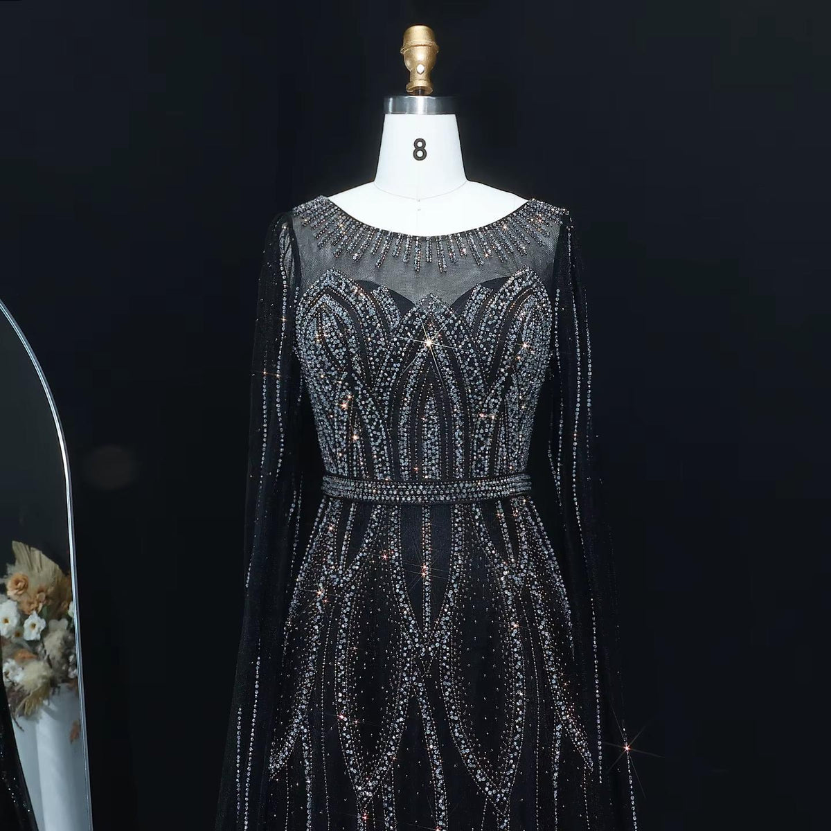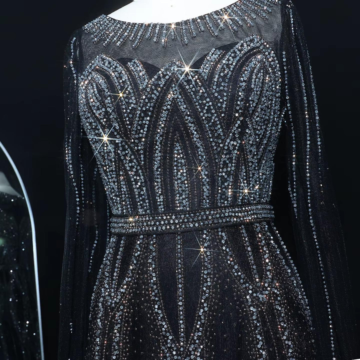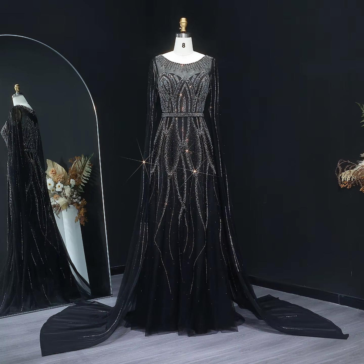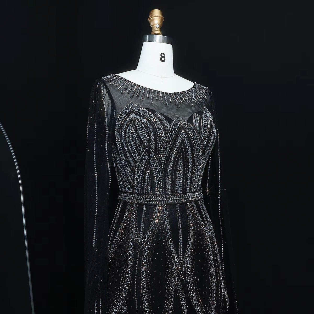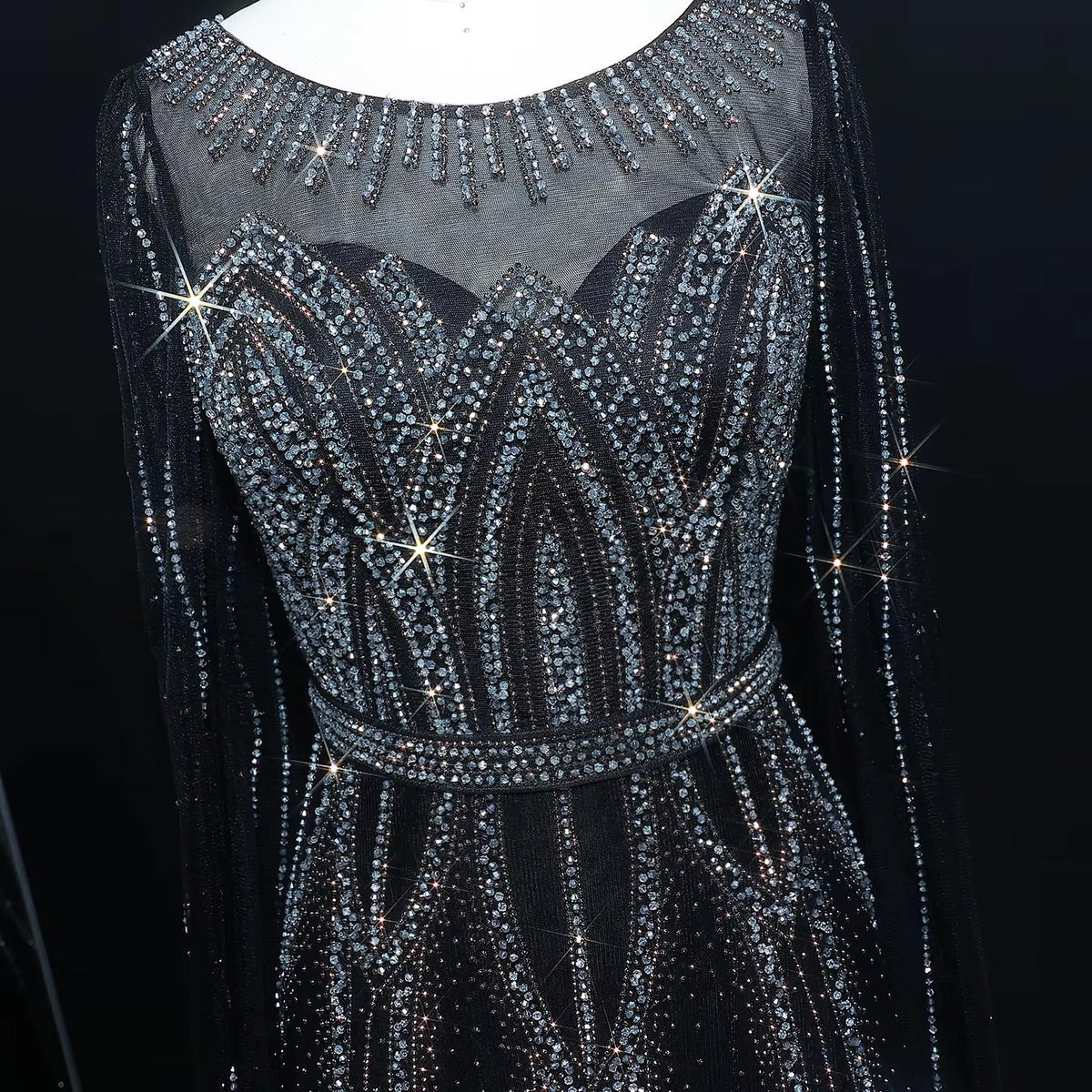 Blue Beaded Evening Dress with Cape Sleeves SS032