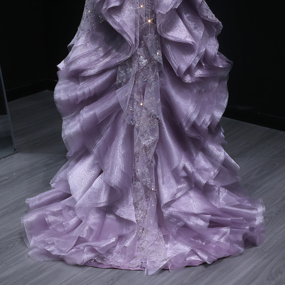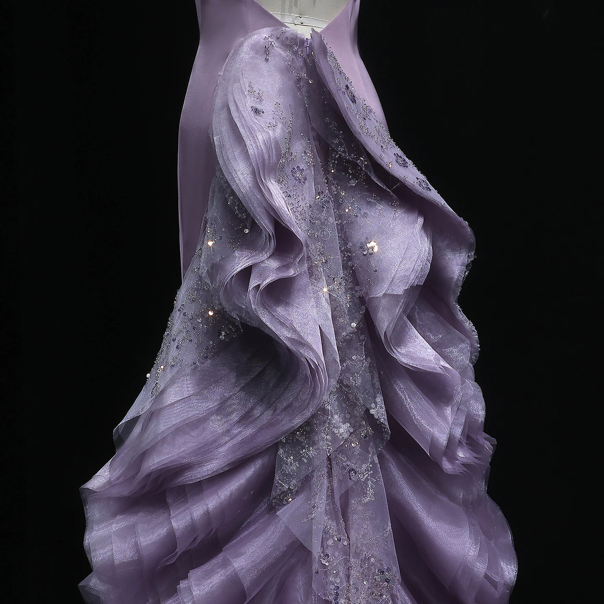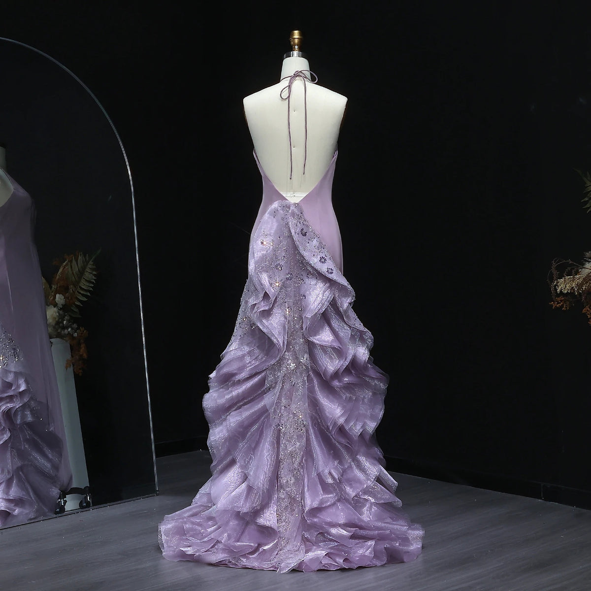 This stunning Blue Halter Mermaid Evening Dress with Ruffles SS524 is a must-have for any elegant evening event. The halter design accentuates the neckline and the mermaid silhouette creates a flattering shape. The ruffle detailing adds a touch of playfulness to the gown. Perfect for those who want to make a statement at formal occasions.