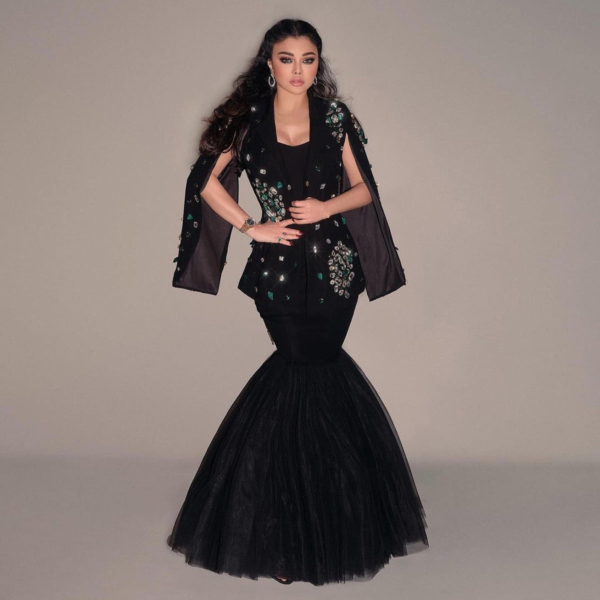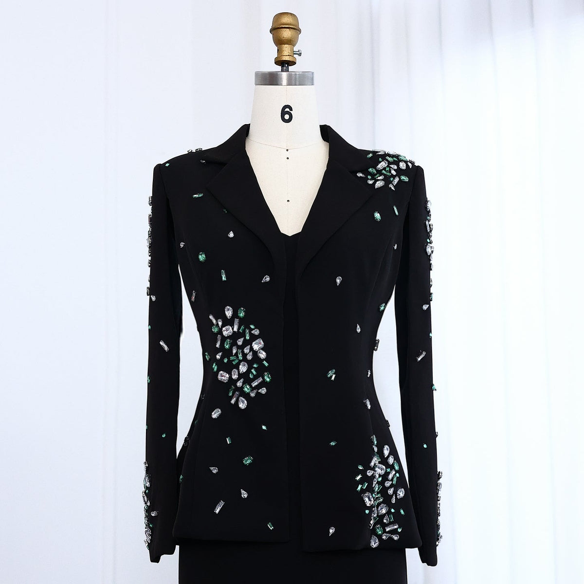 Elegant Black Rhinestone Evening Dress with Jacket SS561