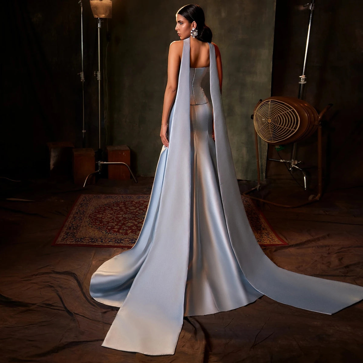 Elegant Blue Satin Mermaid Arabic Wedding Gown SS245