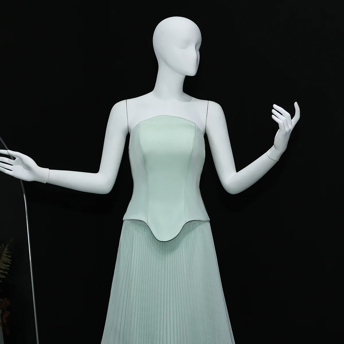 Elevate your formal attire with this sophisticated green strapless evening dress. Meticulously crafted with intricate 3D floral embellishments that create dimension and visual interest. The strapless silhouette offers a timeless elegance while showcasing your shoulders and décolletage. Perfect for galas, formal receptions, or any black-tie event where making a refined statement is essential.
