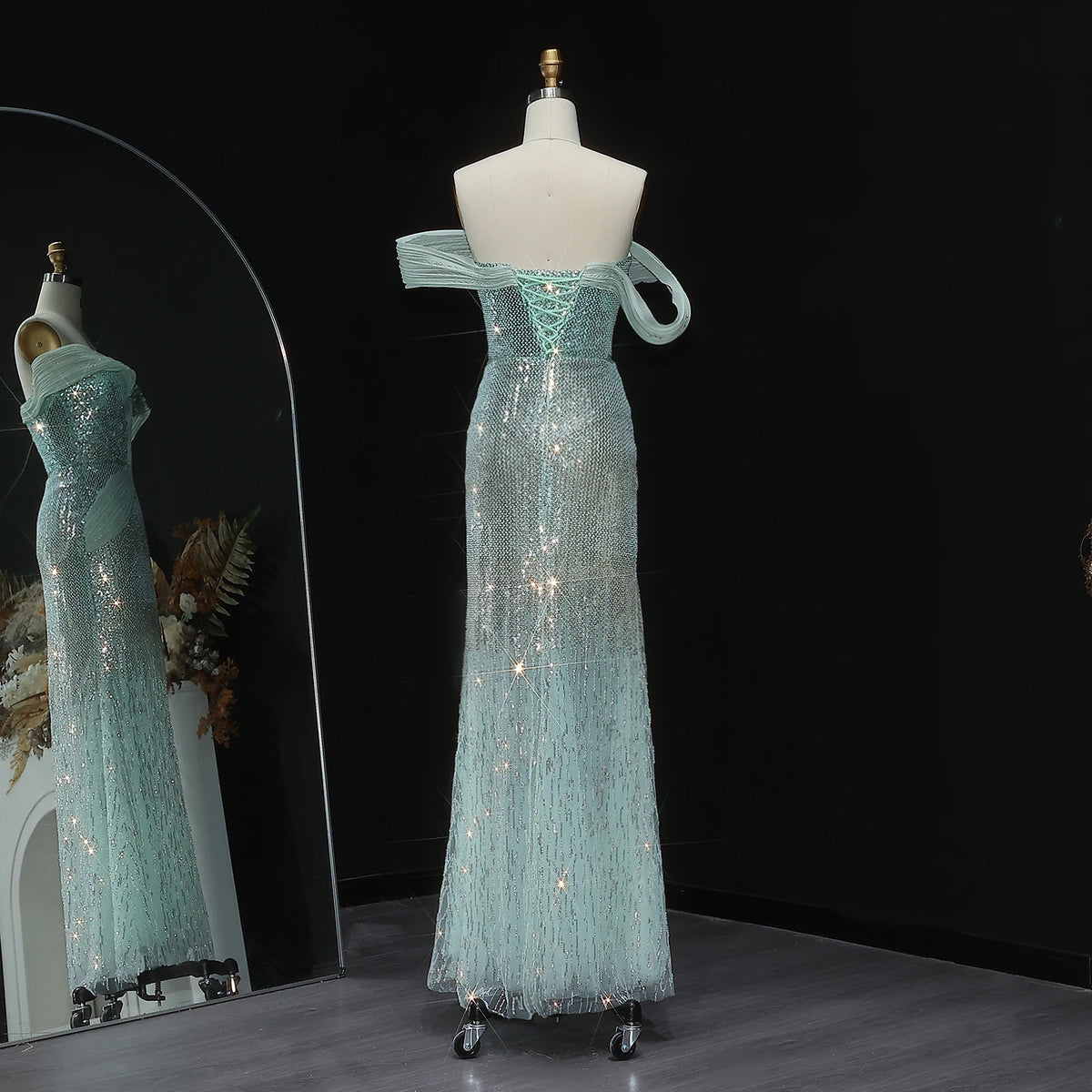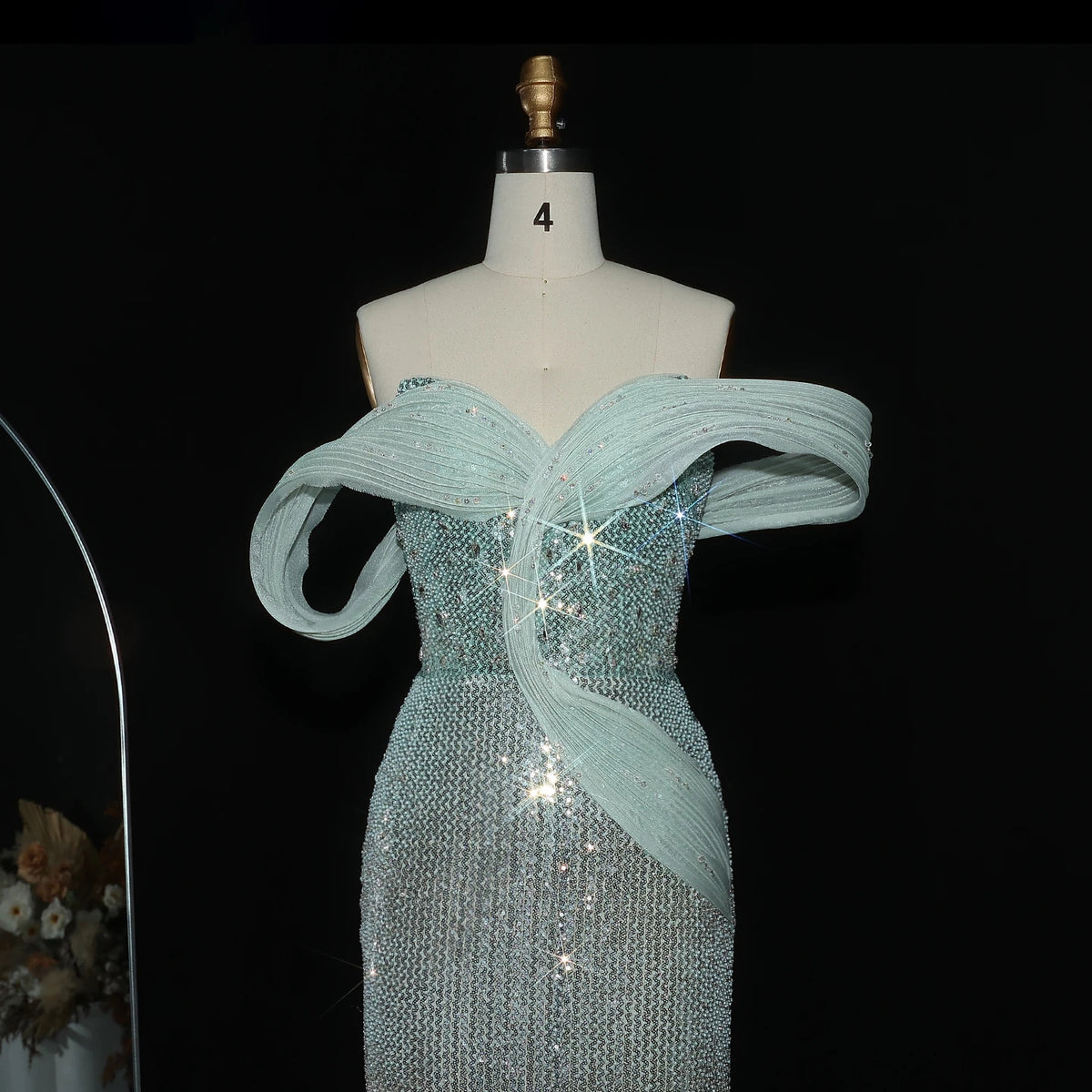 Elegant Off Shoulder Mint Green Midi Gown Wedding Party Prom SS523