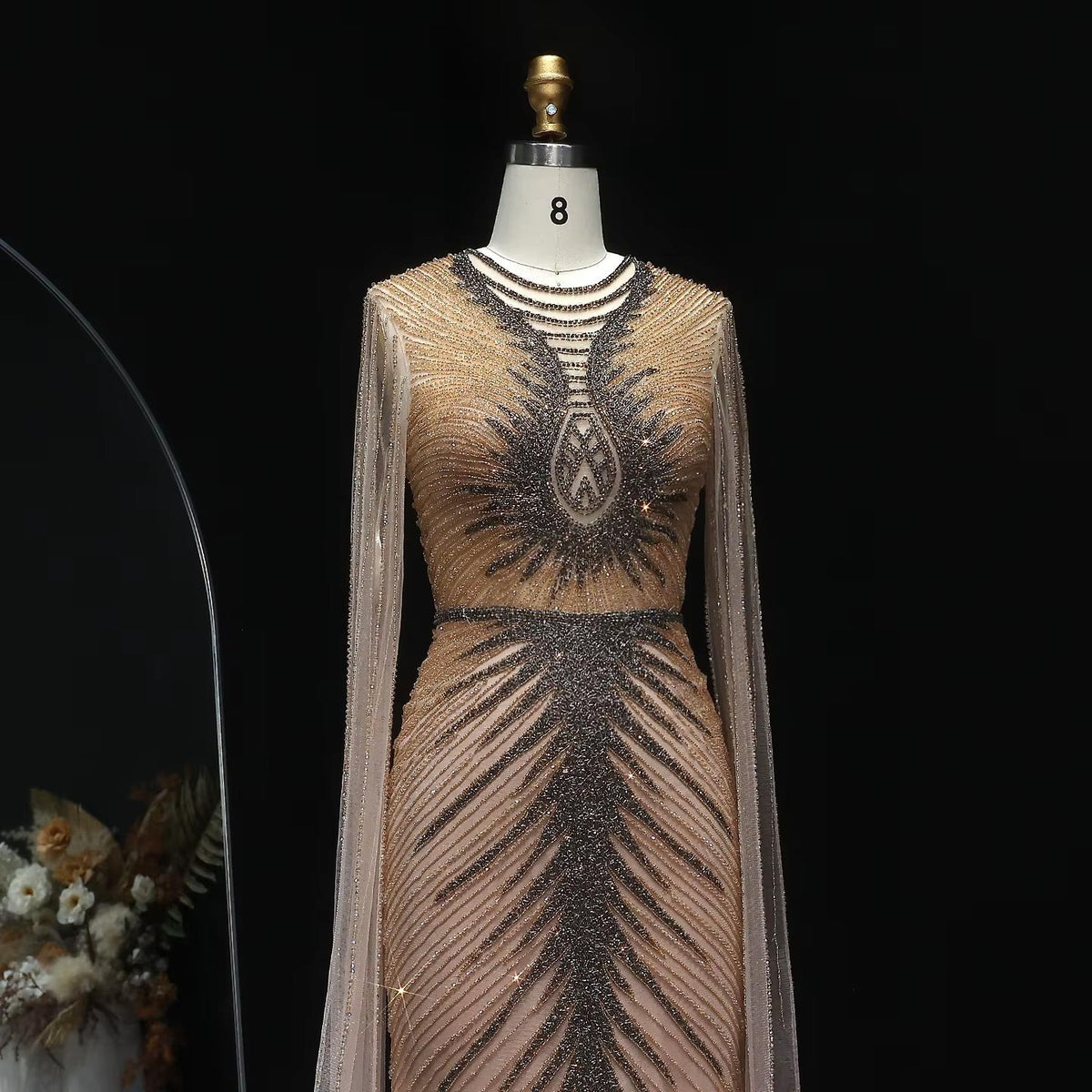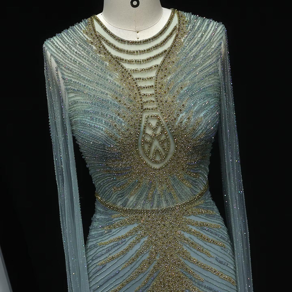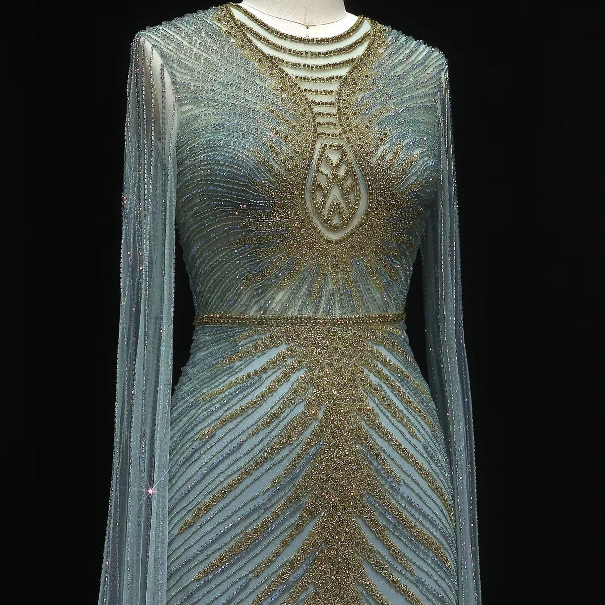 Turquoise Beaded Mermaid Evening Dress with Cape Sleeves SS028