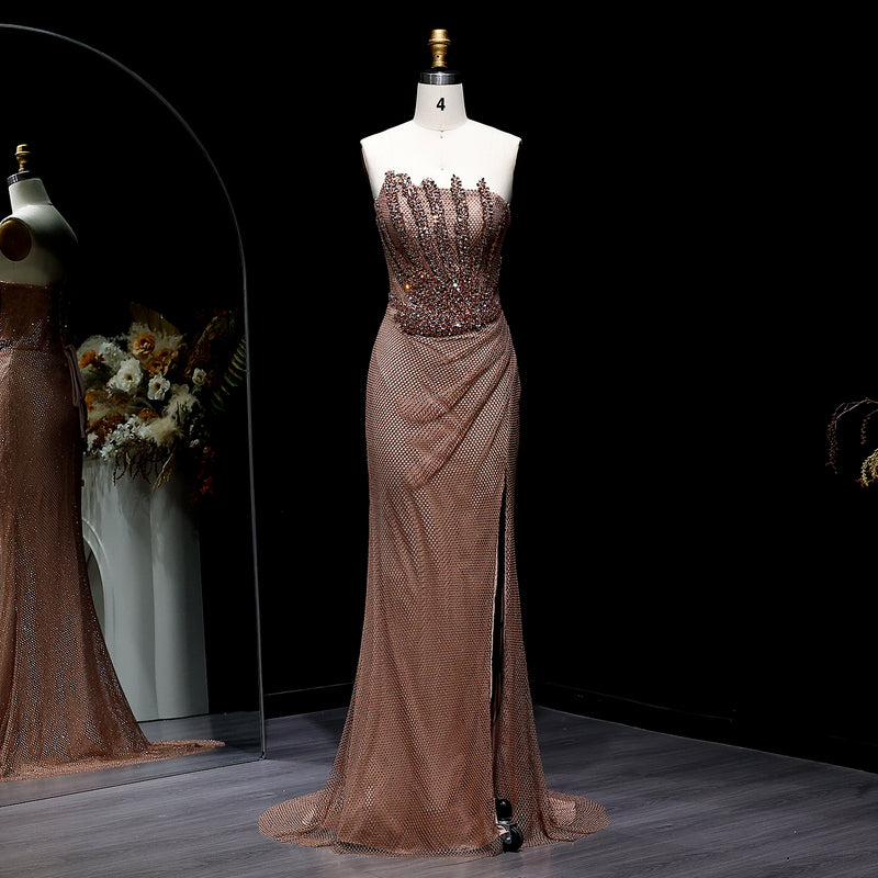 Sparkly Crystal Mermaid Evening Dress Dubai Luxury Caramel SS528