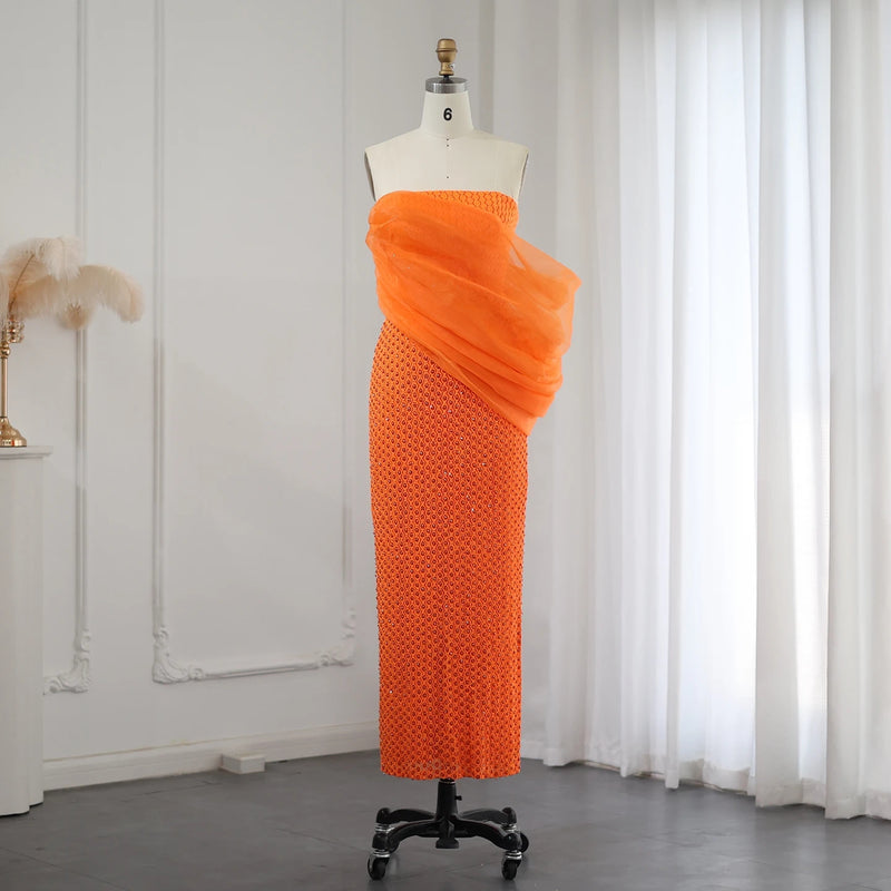 Stunning Orange Strapless Sequined Mermaid Evening Dress SS311
