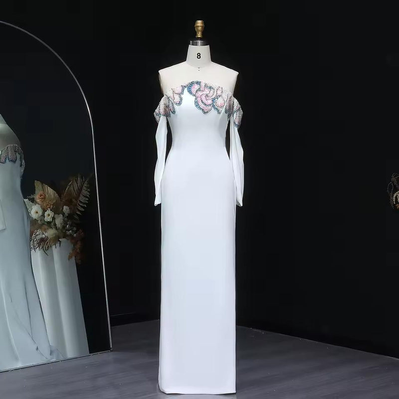 Sparkling Off-Shoulder Luxury Evening Dress with High Slit SS115