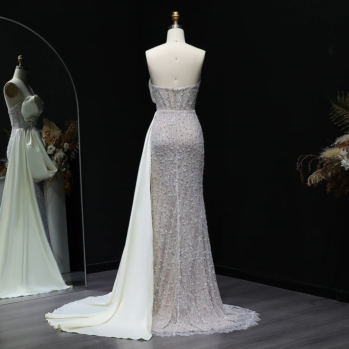 Glamorous Crystal Embellished Evening Dress with Flowing Overskirt SS617