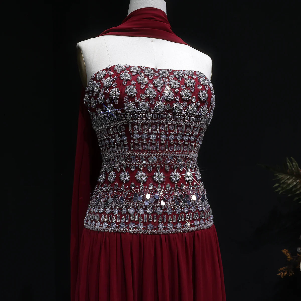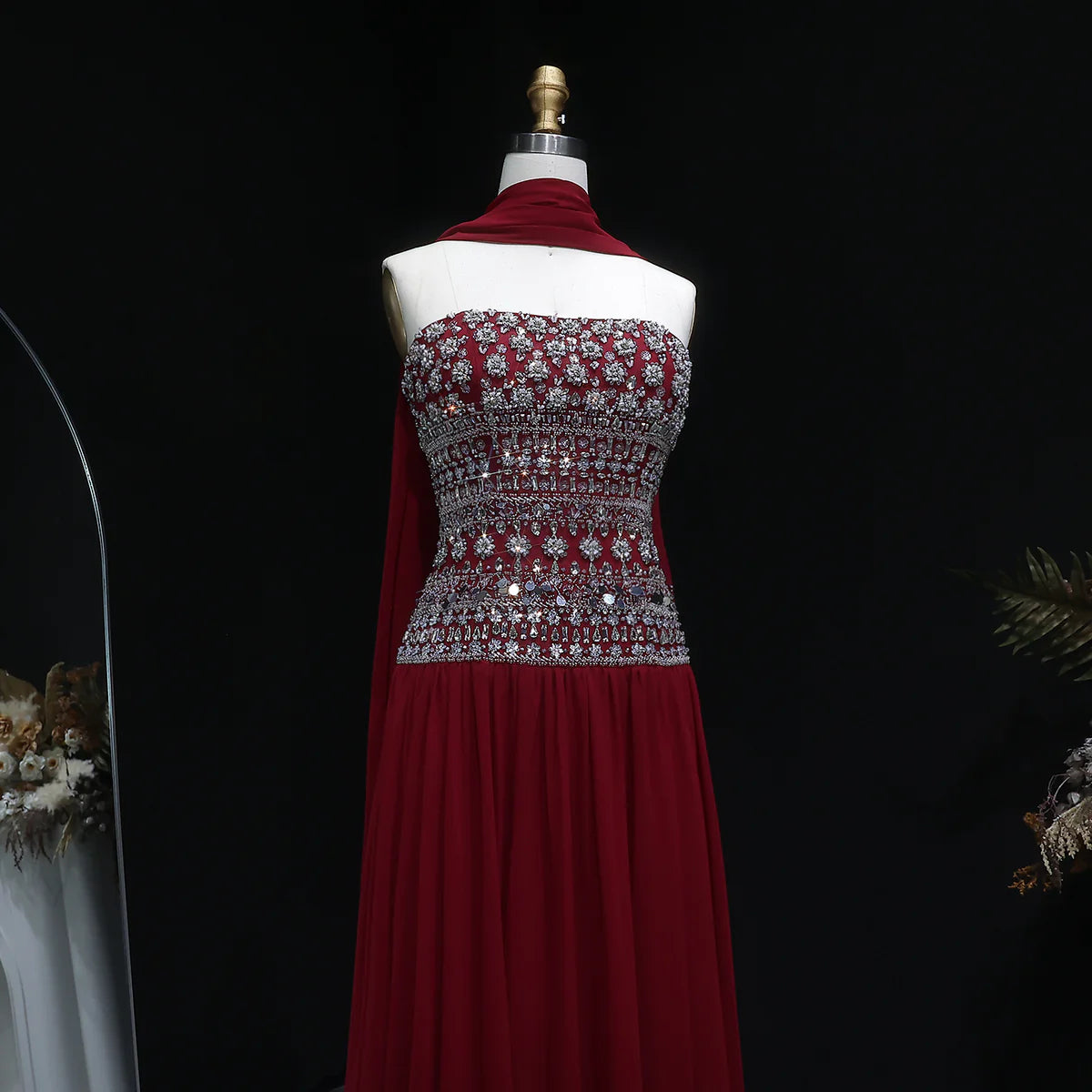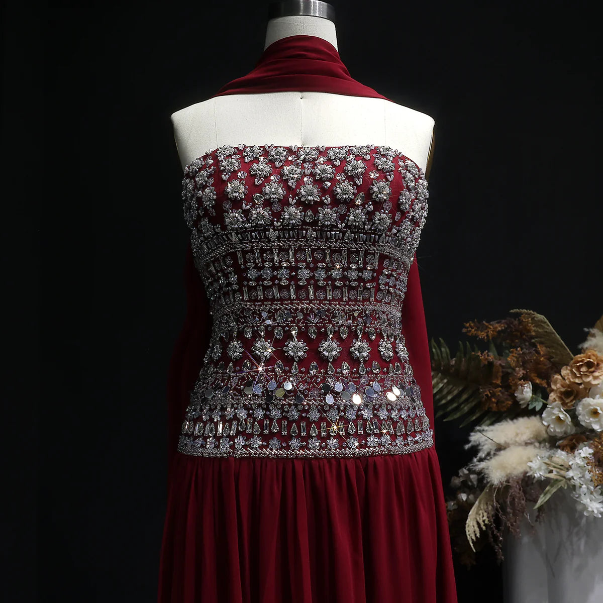 Achieve a glamorous look with our Strapless Lilac Beaded Bodice Evening Dress. Adorned with intricate beadwork and a flowing skirt, this dress is perfect for any special occasion. The strapless design adds a touch of elegance while the lilac color adds a pop of color to your wardrobe. Stand out in style and confidence with this stunning dress.