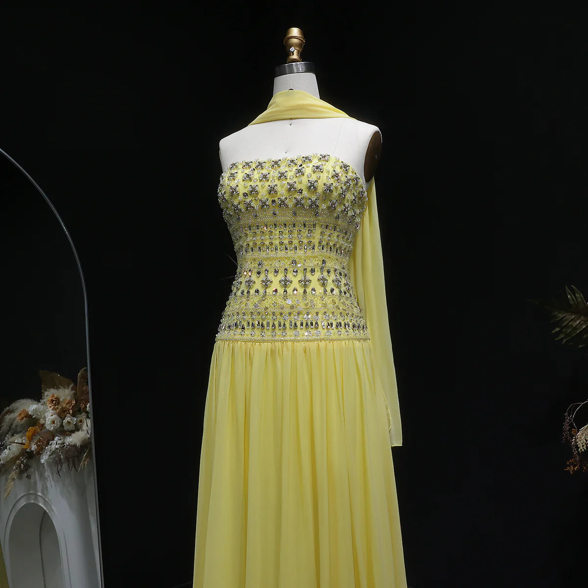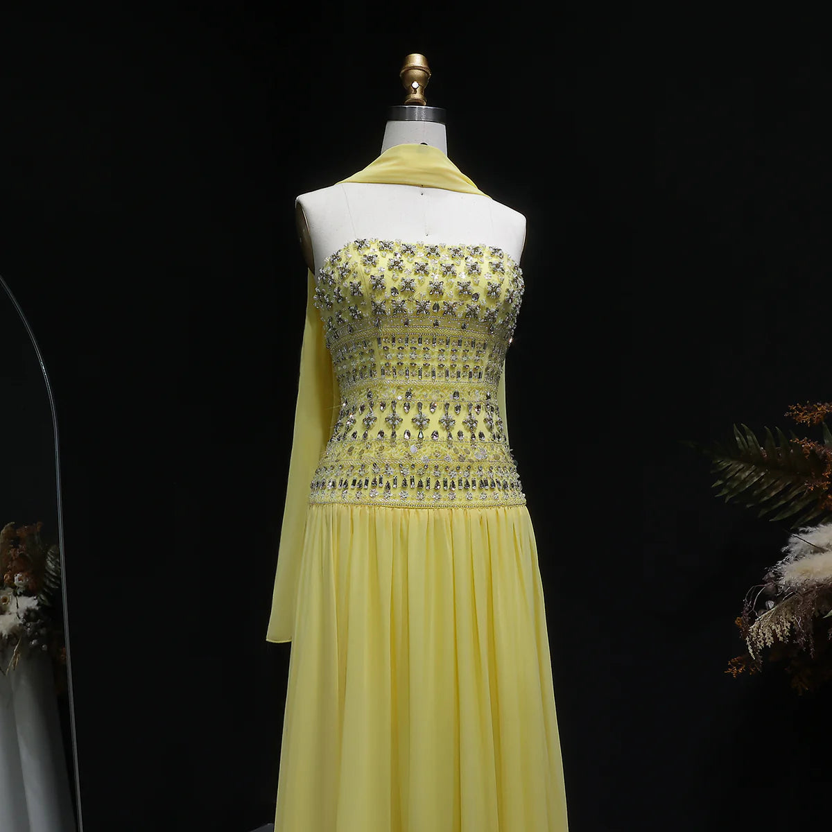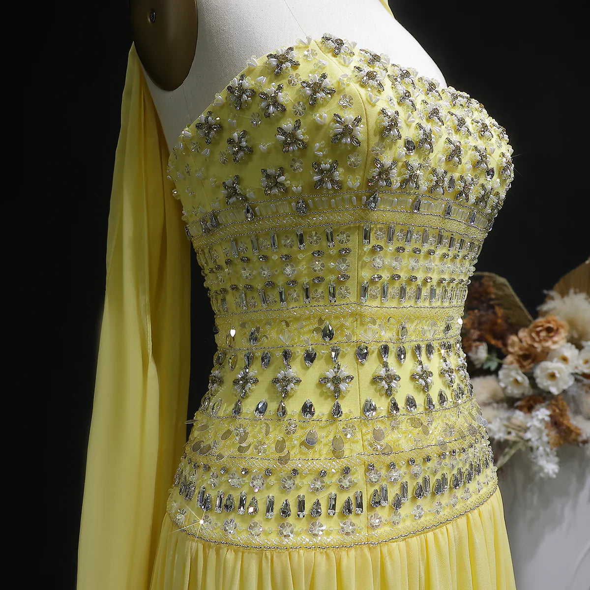 Strapless Lilac Beaded Bodice Evening Dress with Flowing Skirt SS539