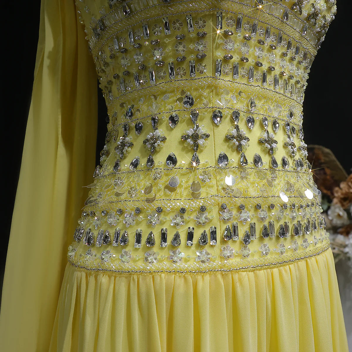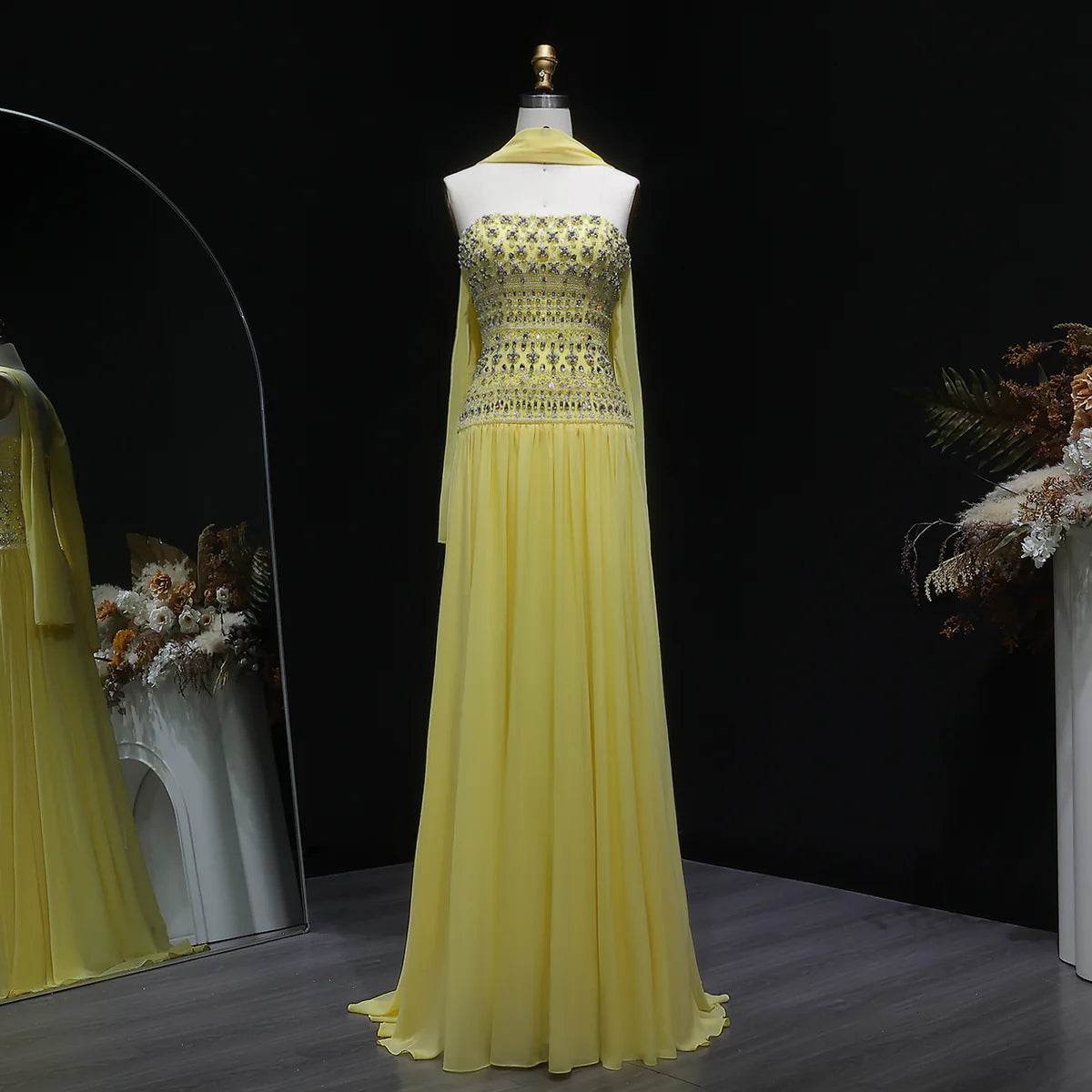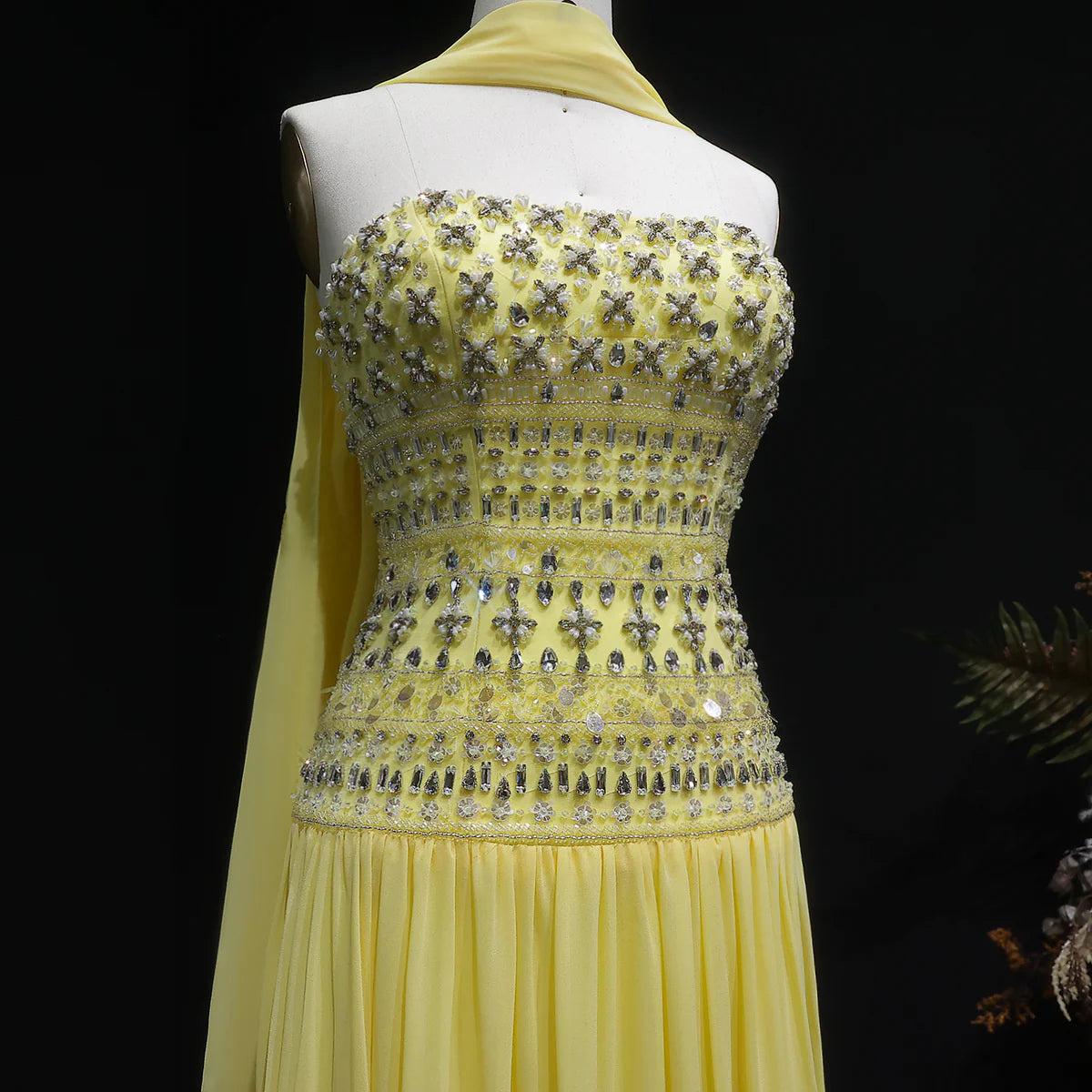 Strapless Lilac Beaded Bodice Evening Dress with Flowing Skirt SS539