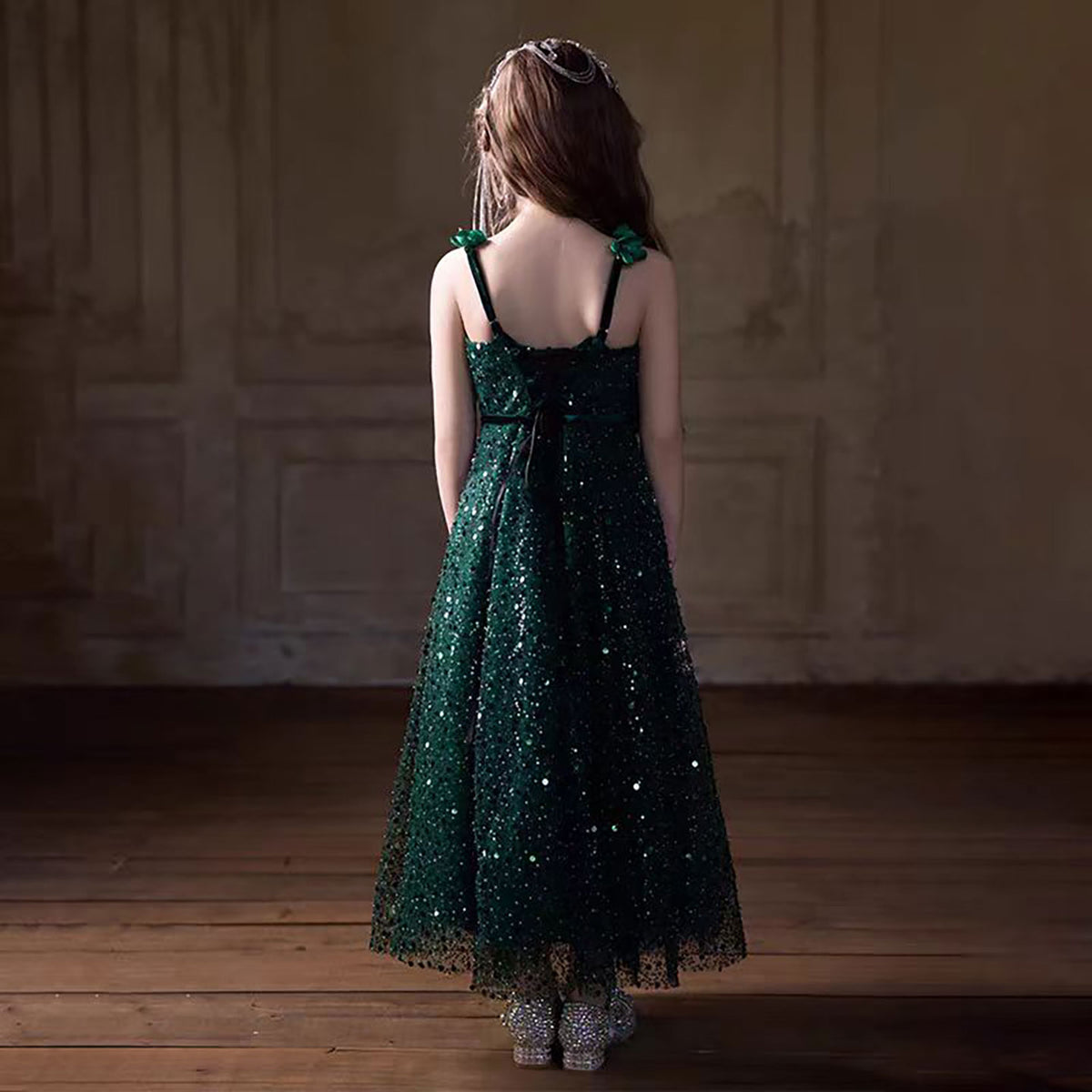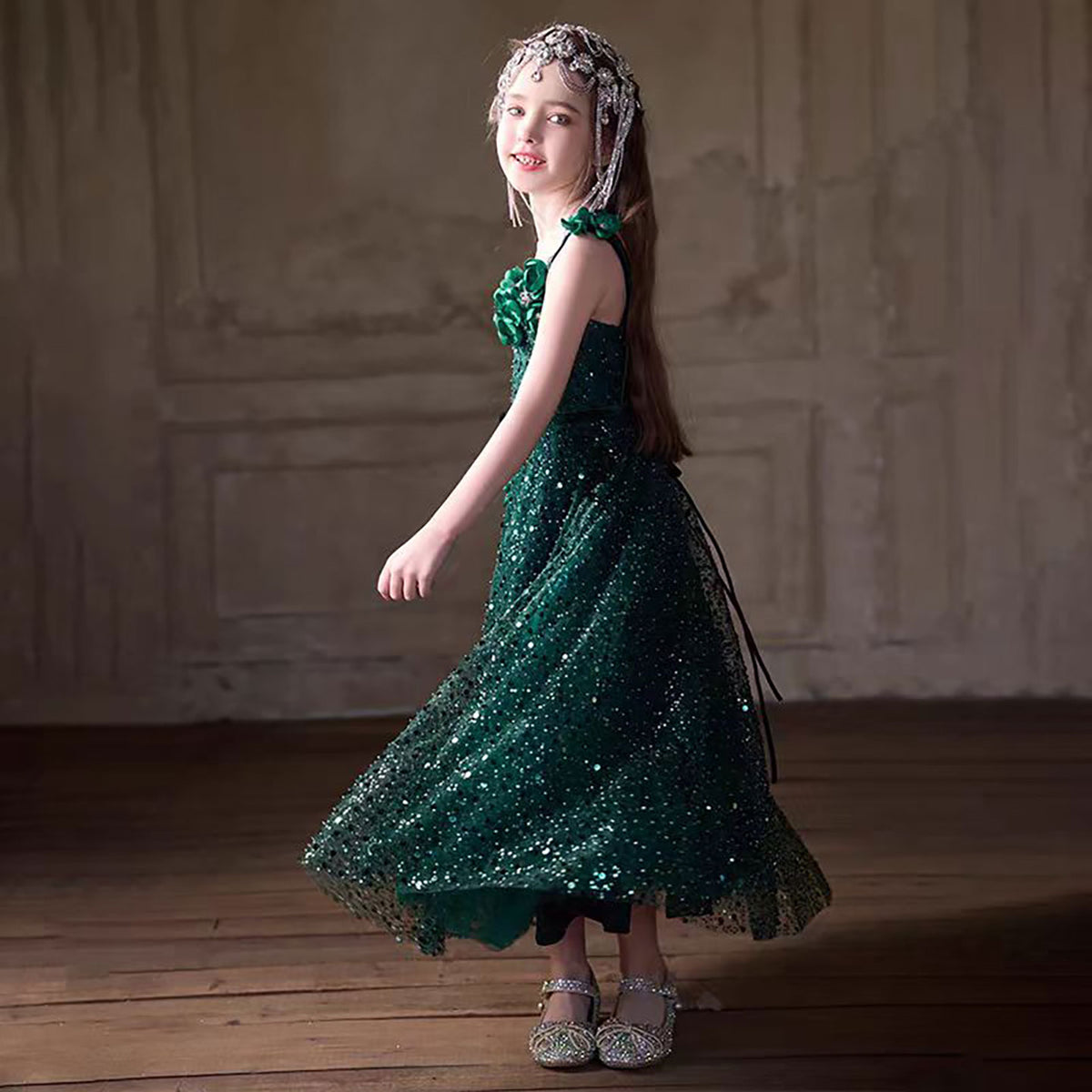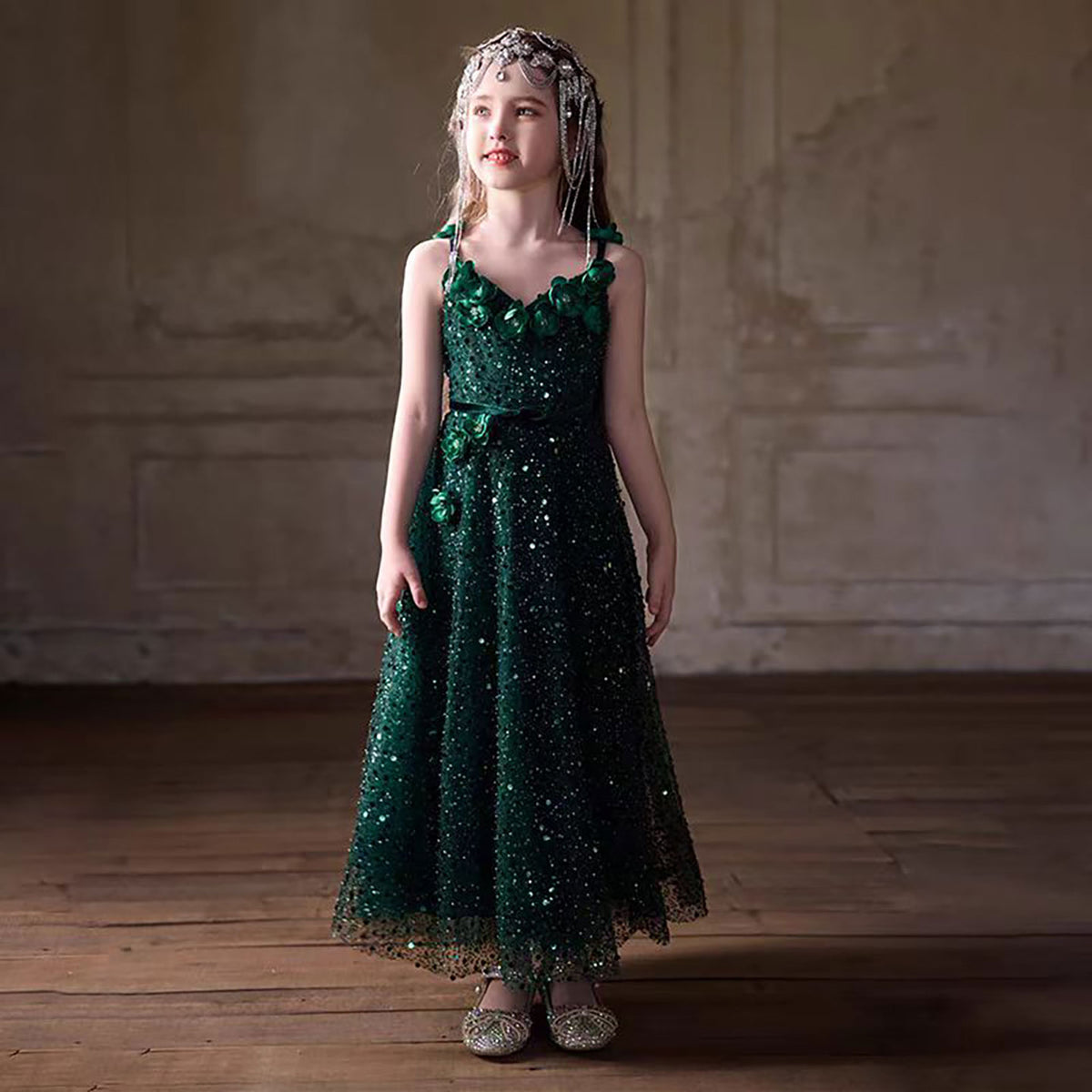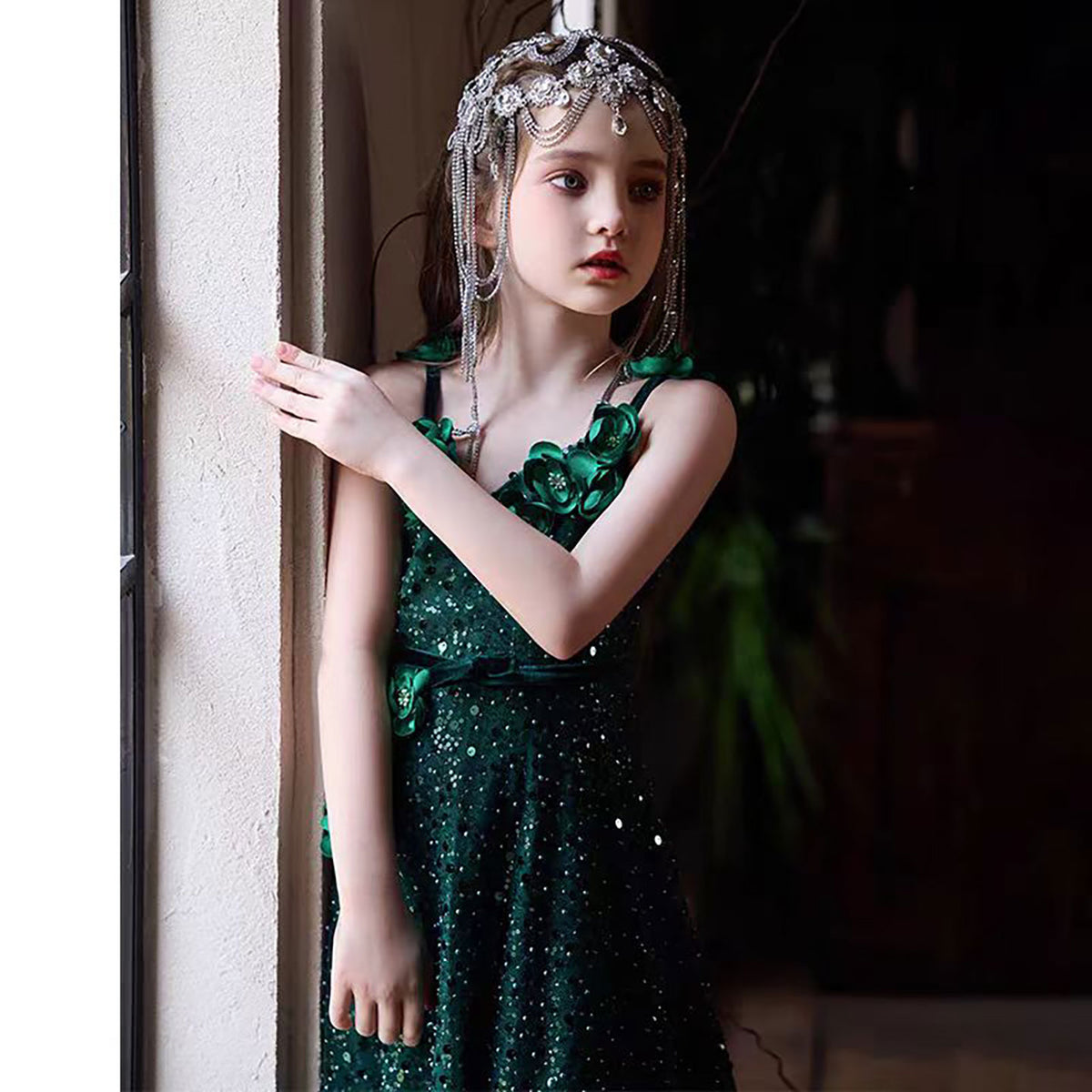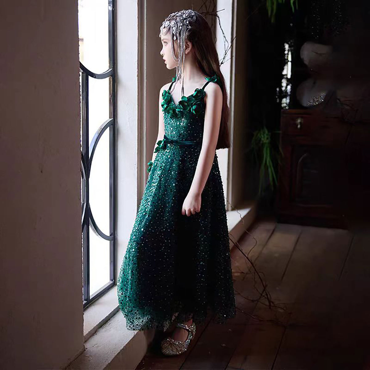 Luxury A-Line Applique Sling Flower Girl Dress Green J222