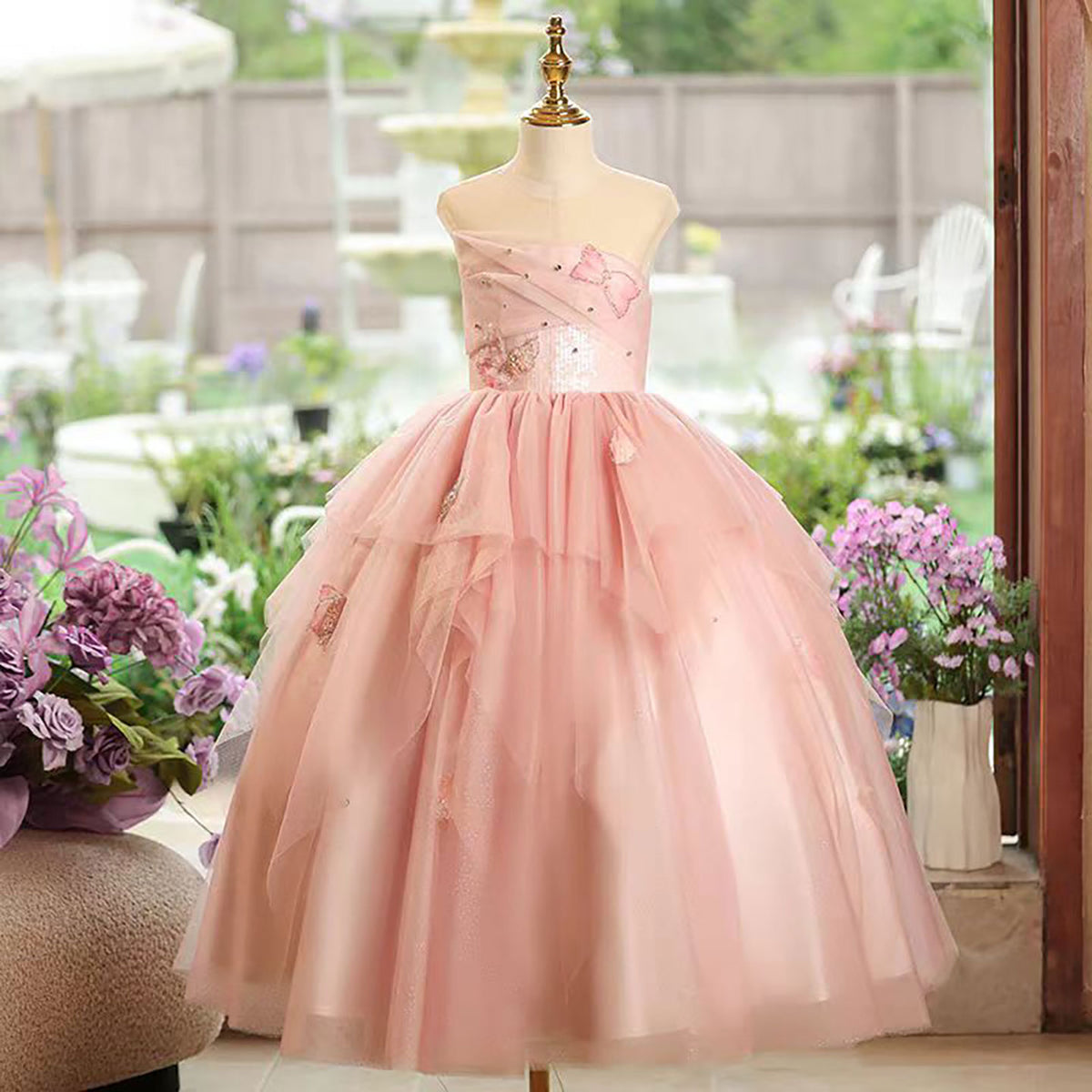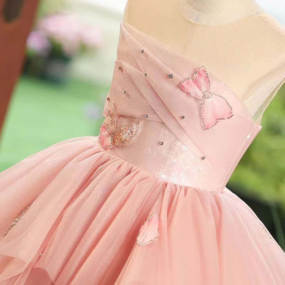 This butterfly flower girl dress features a charming tube top design and sleeveless cut, perfect for warmer occasions. Its beautiful butterfly and flower patterns add a whimsical touch to any event. Crafted with high-quality materials, this dress offers both style and comfort.
