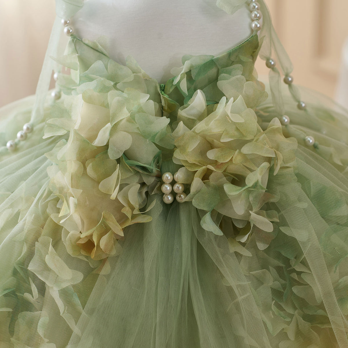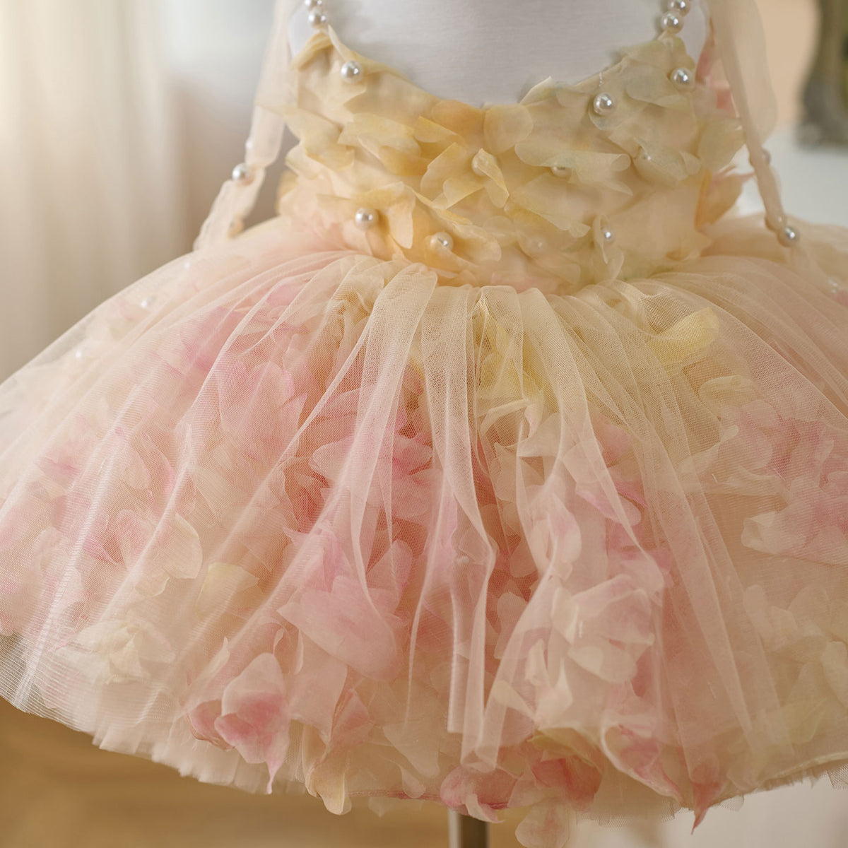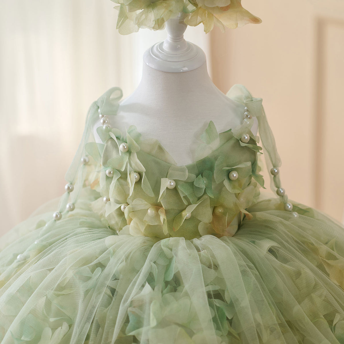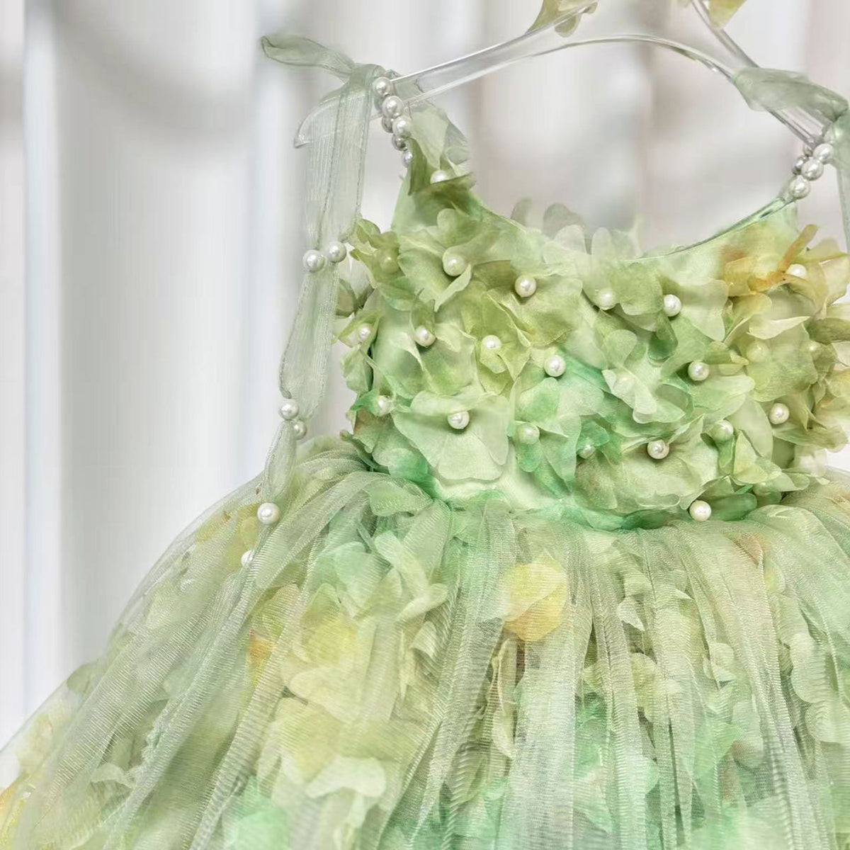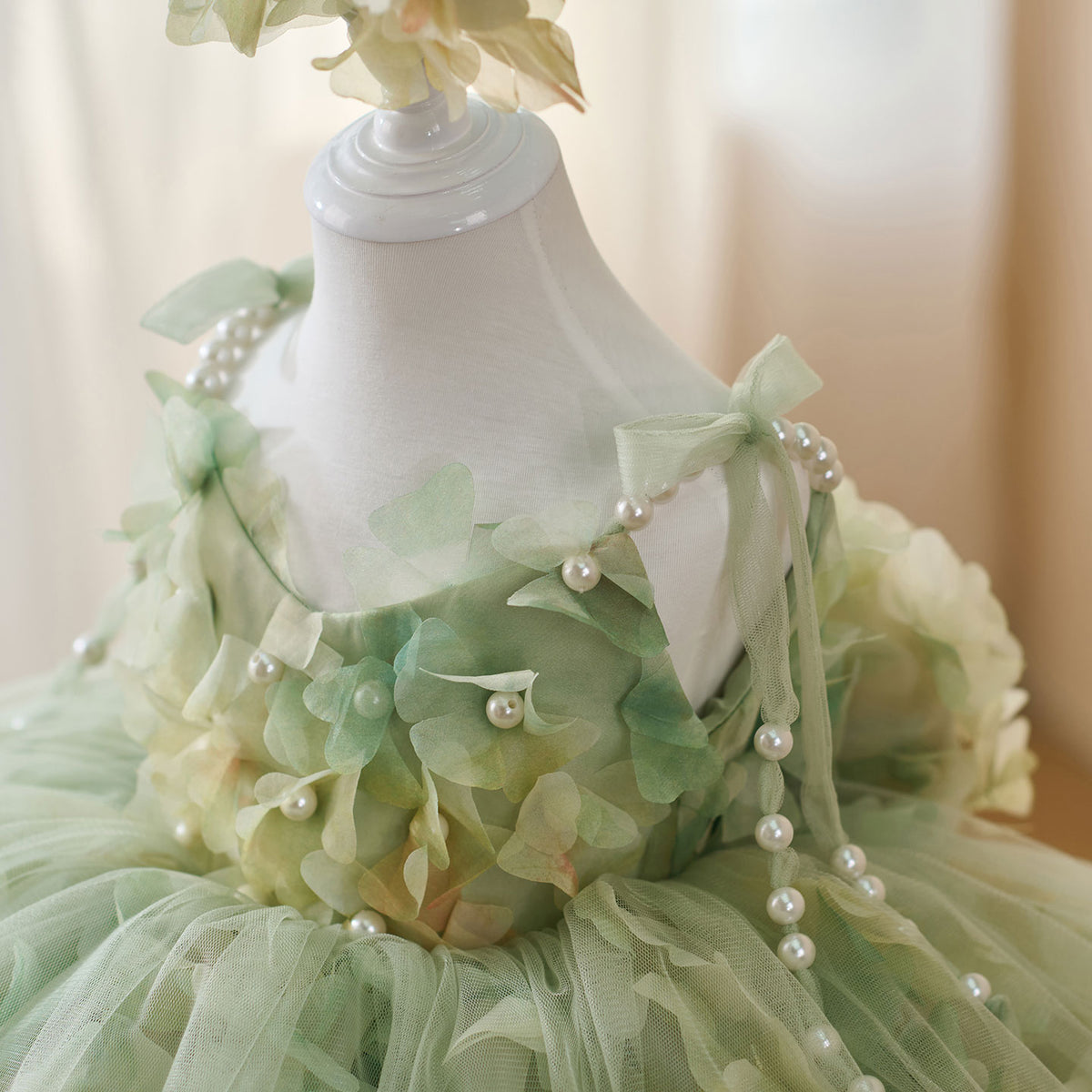 Expertly crafted with a scoop neckline, this Jill dress features a pearl sling and a sleeveless design, finished with a delicate bow. Made to perfection, this elegant dress is perfect for any flower girl, adding a touch of charm to any wedding.