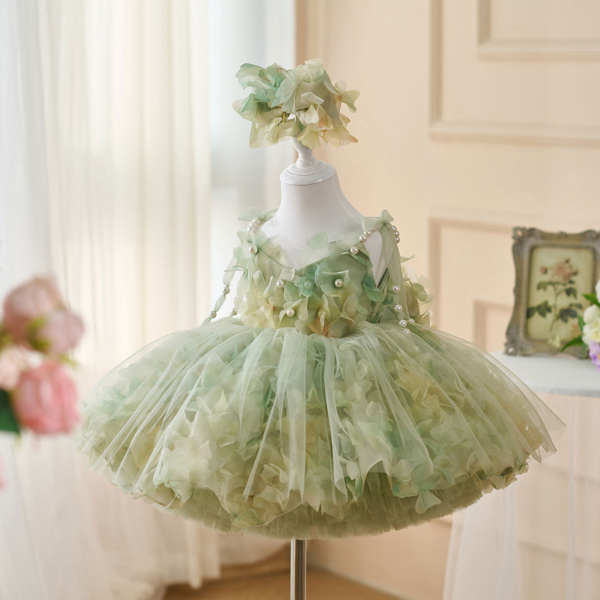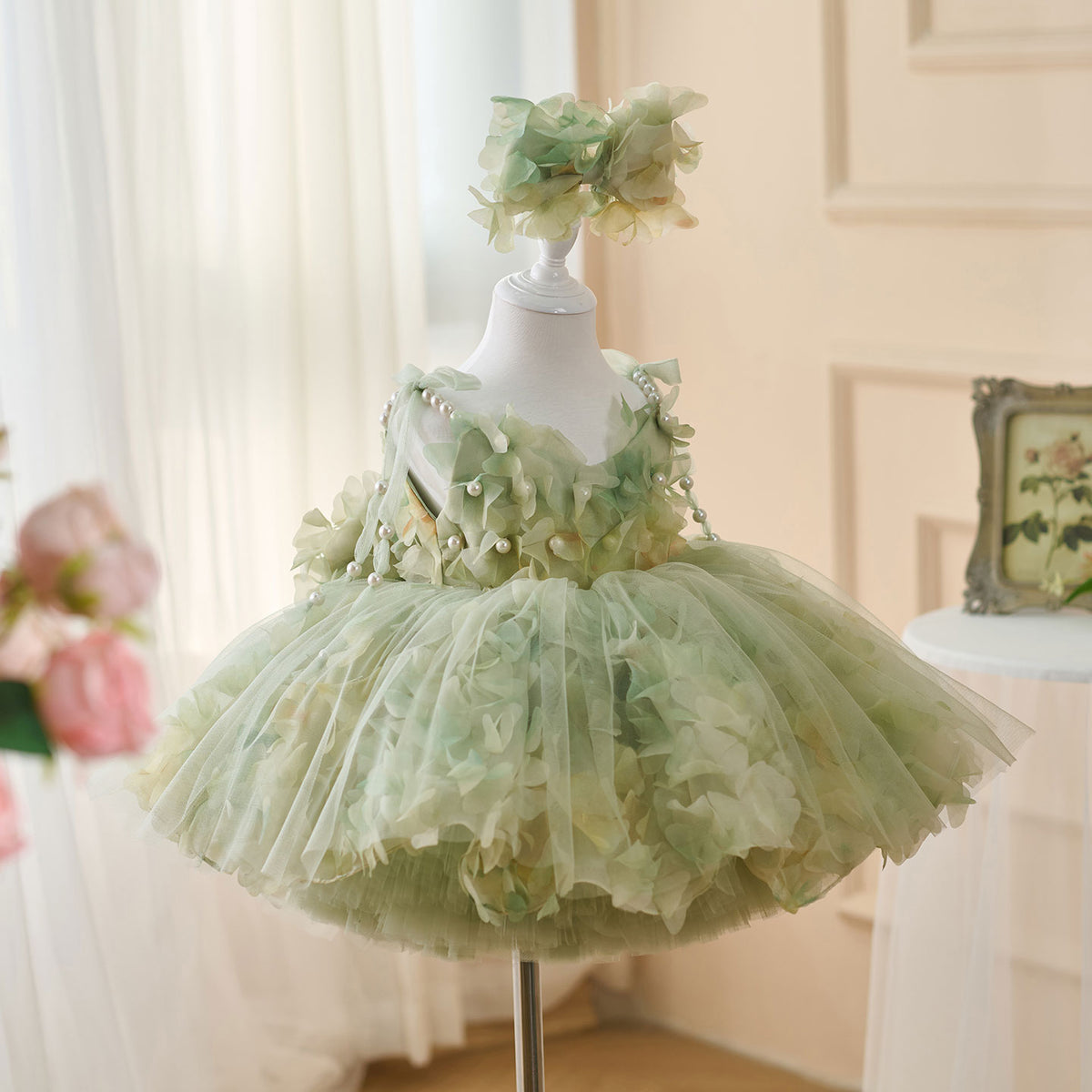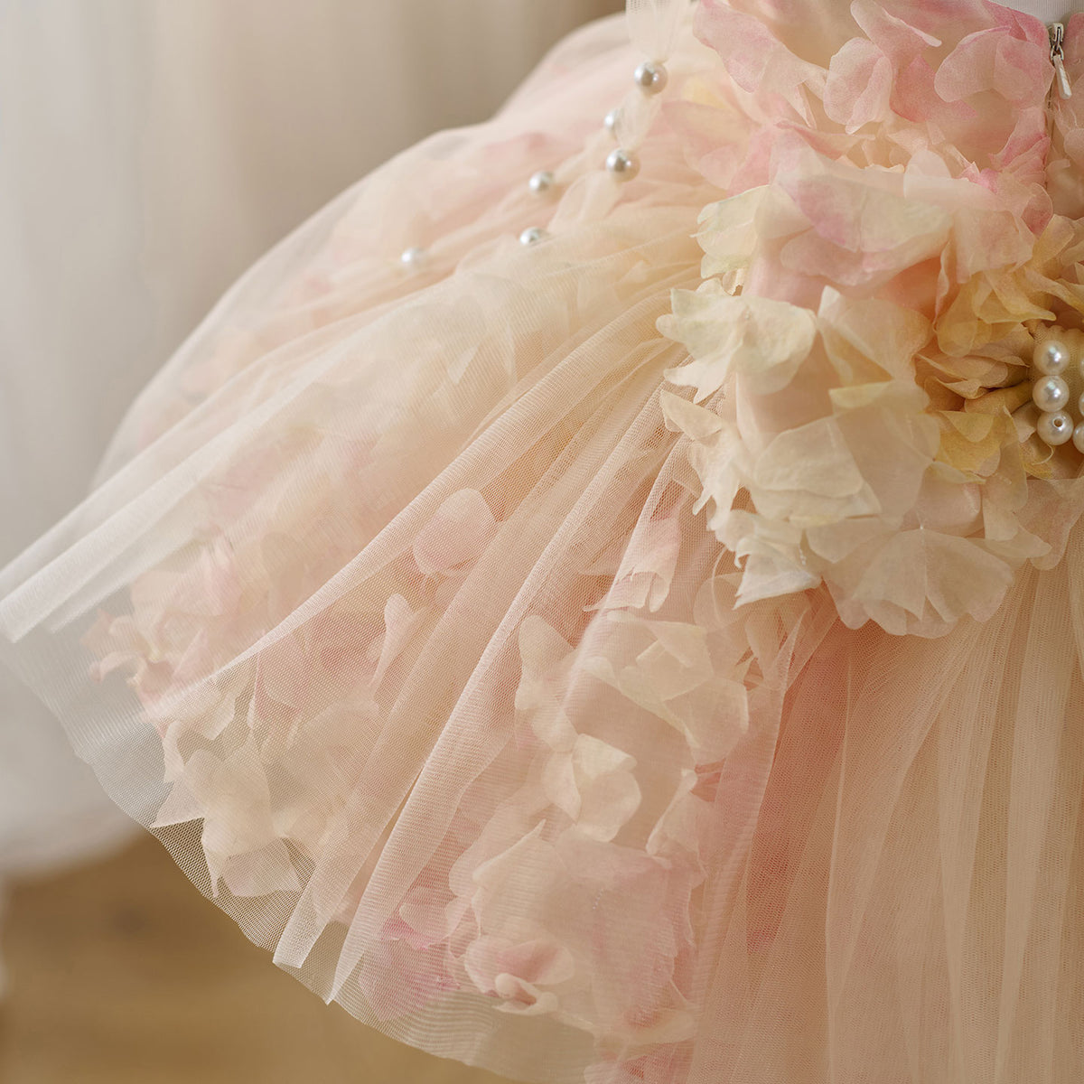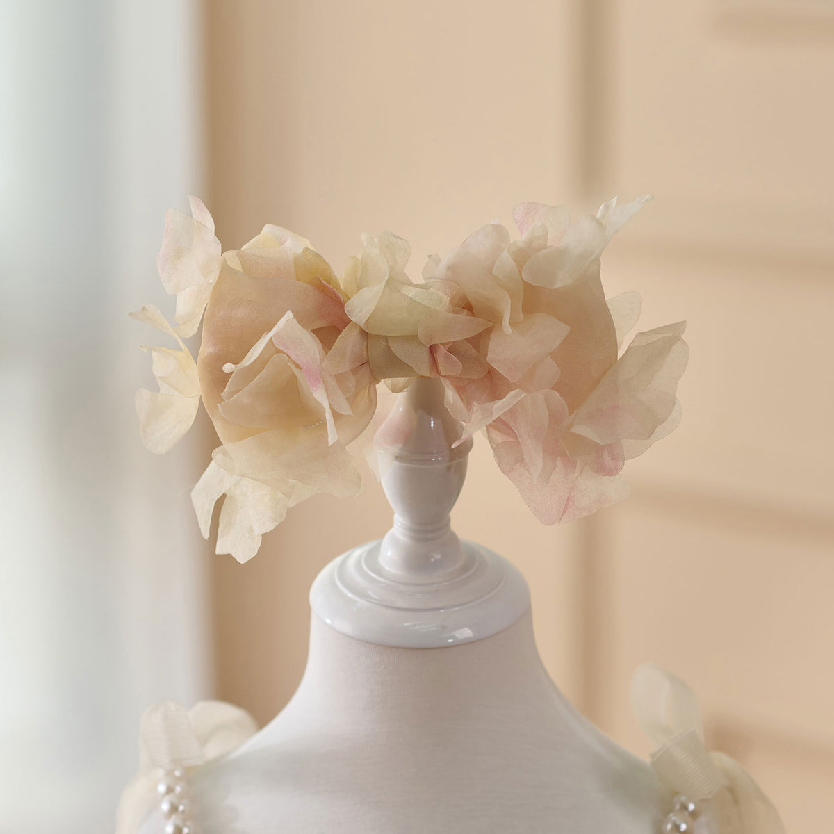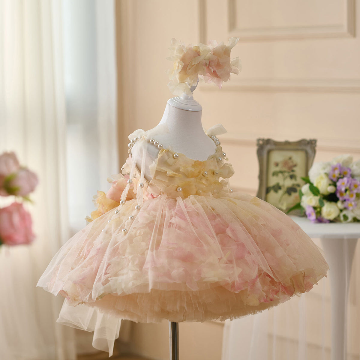 Expertly crafted with a scoop neckline, this Jill dress features a pearl sling and a sleeveless design, finished with a delicate bow. Made to perfection, this elegant dress is perfect for any flower girl, adding a touch of charm to any wedding.