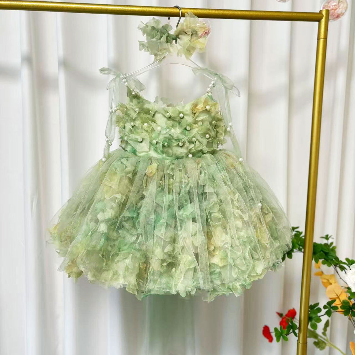 Scoop Pearl Sling Flower Girl Dress With Bow Sleeveless D053