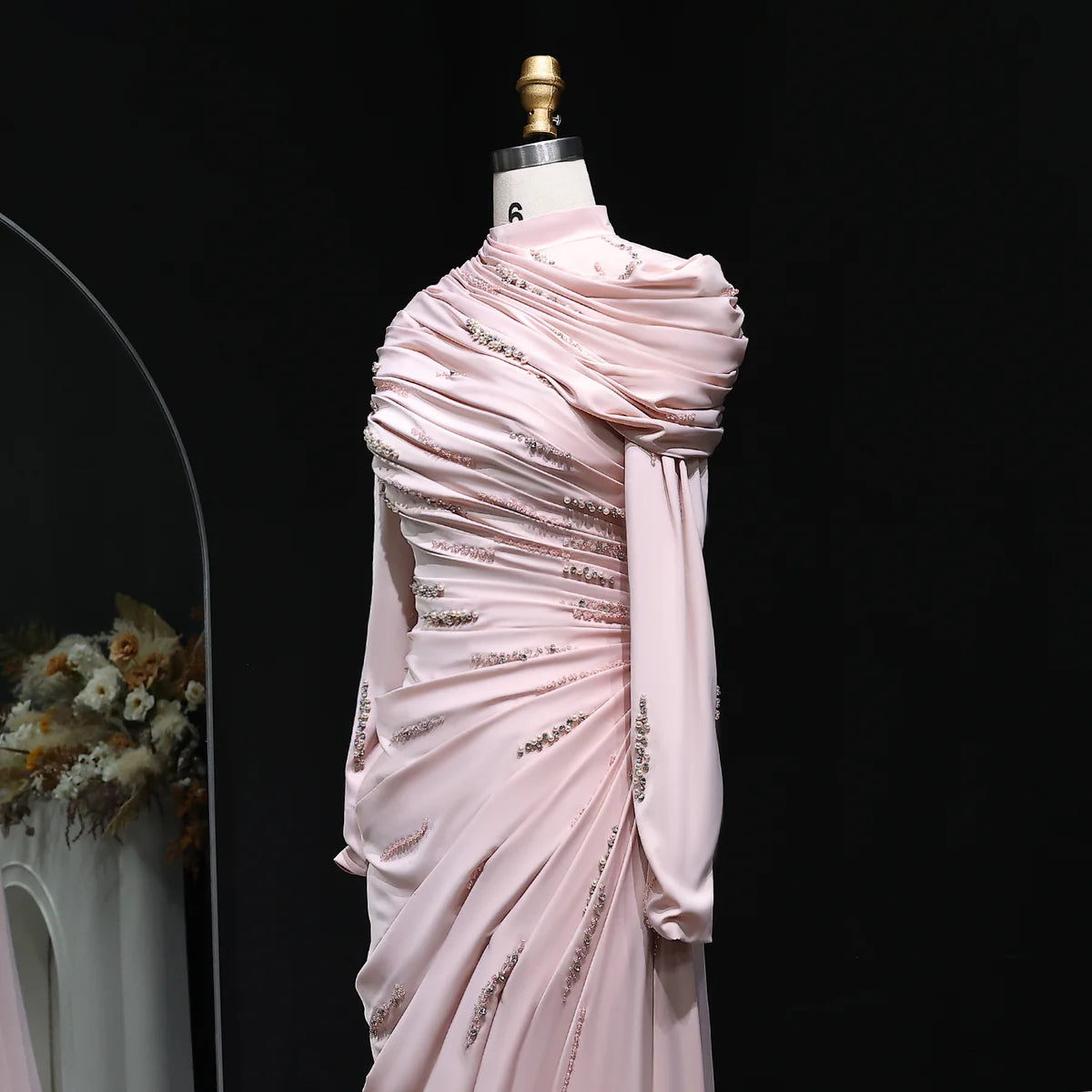 Elevate your evening elegance with this Luxury Pink Beaded Mermaid Evening Dress. Expertly crafted to highlight your silhouette, it features intricate beadwork that adds a refined shimmer. The delicate ruffle details and sophisticated cap sleeves provide a graceful touch, ensuring you stand out with understated charm. Perfect for high-end events, this dress balances classic glamour with contemporary design for a captivating presence.