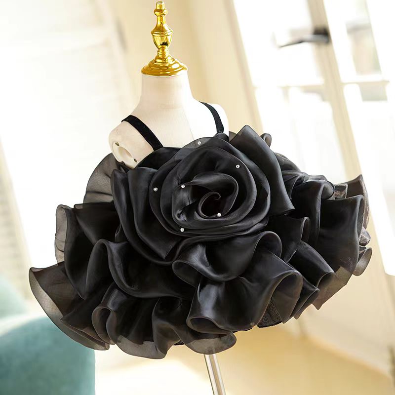This beige and black flower girl dress blends classic elegance with kid-friendly comfort. Designed for weddings and birthday celebrations, its neutral beige base accented with striking black floral details creates a timeless look suitable for various occasions. The gown’s tailored fit offers ease of movement while maintaining a polished appearance, making it an excellent choice for your child’s special day.