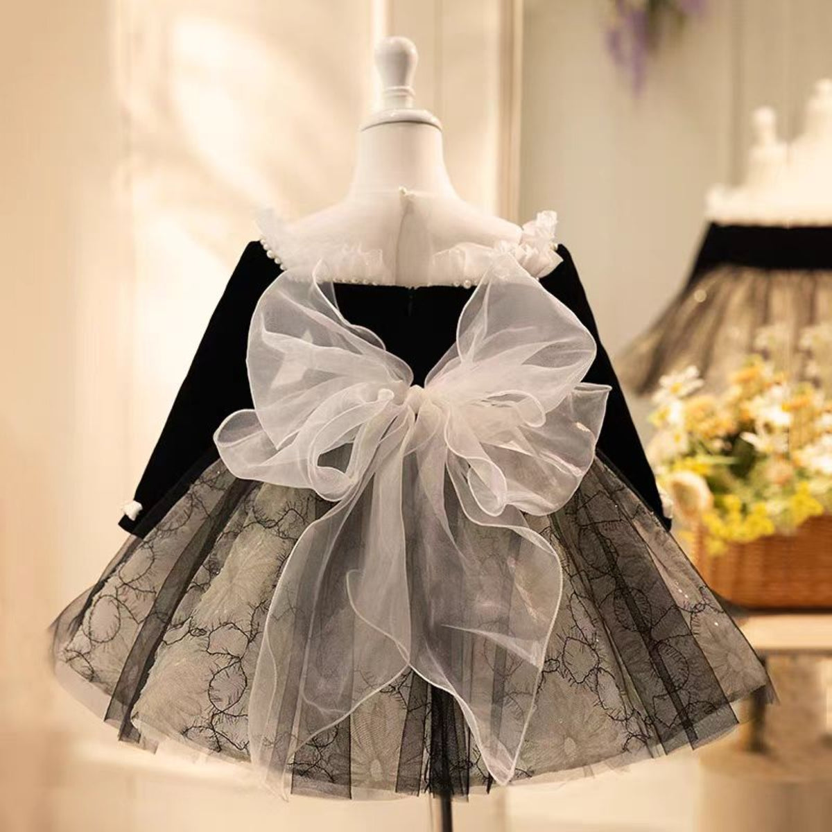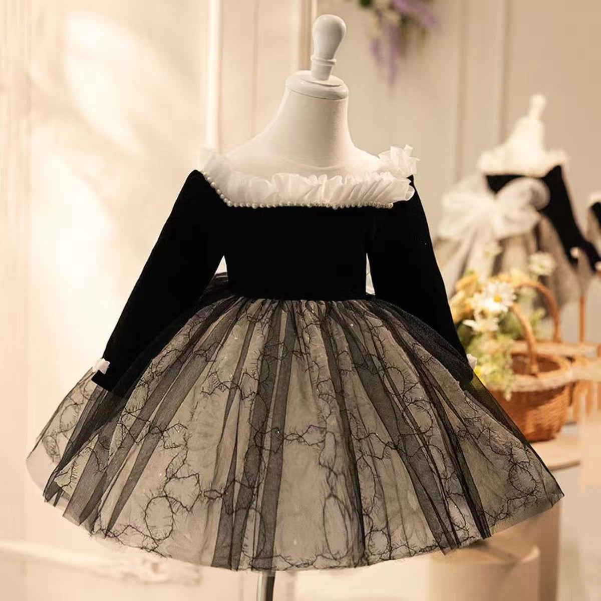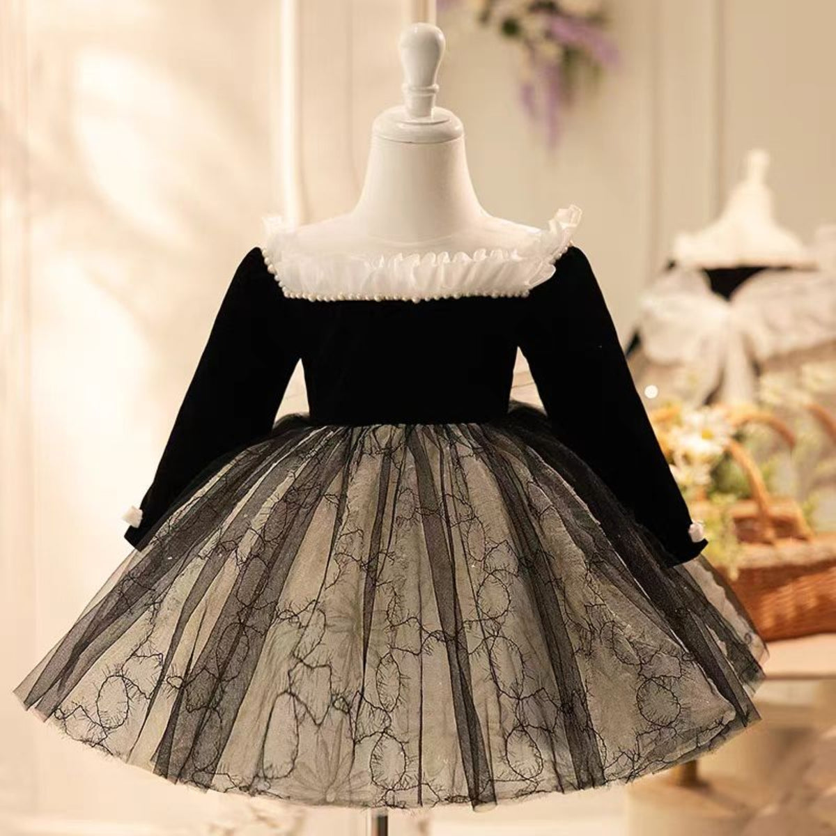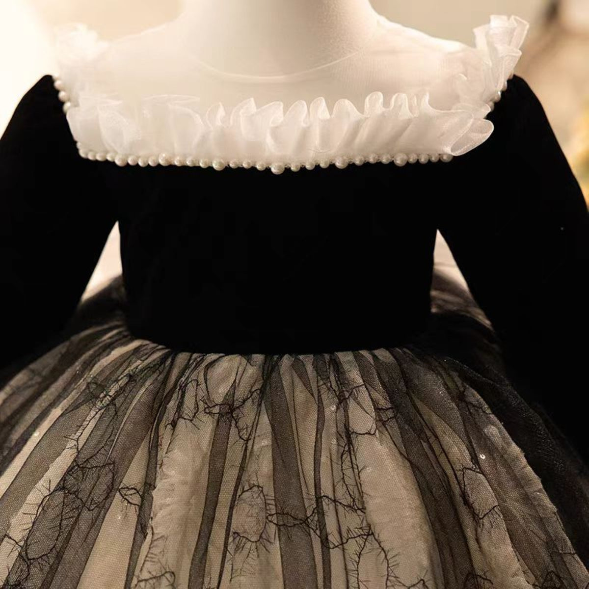 Black Flower Girl Dress Kids Wedding Birthday Party Gown J747
