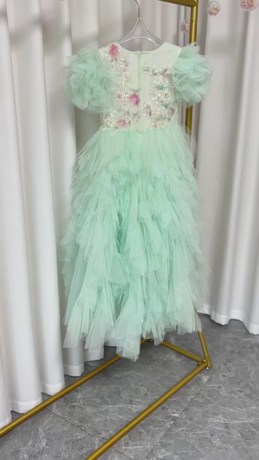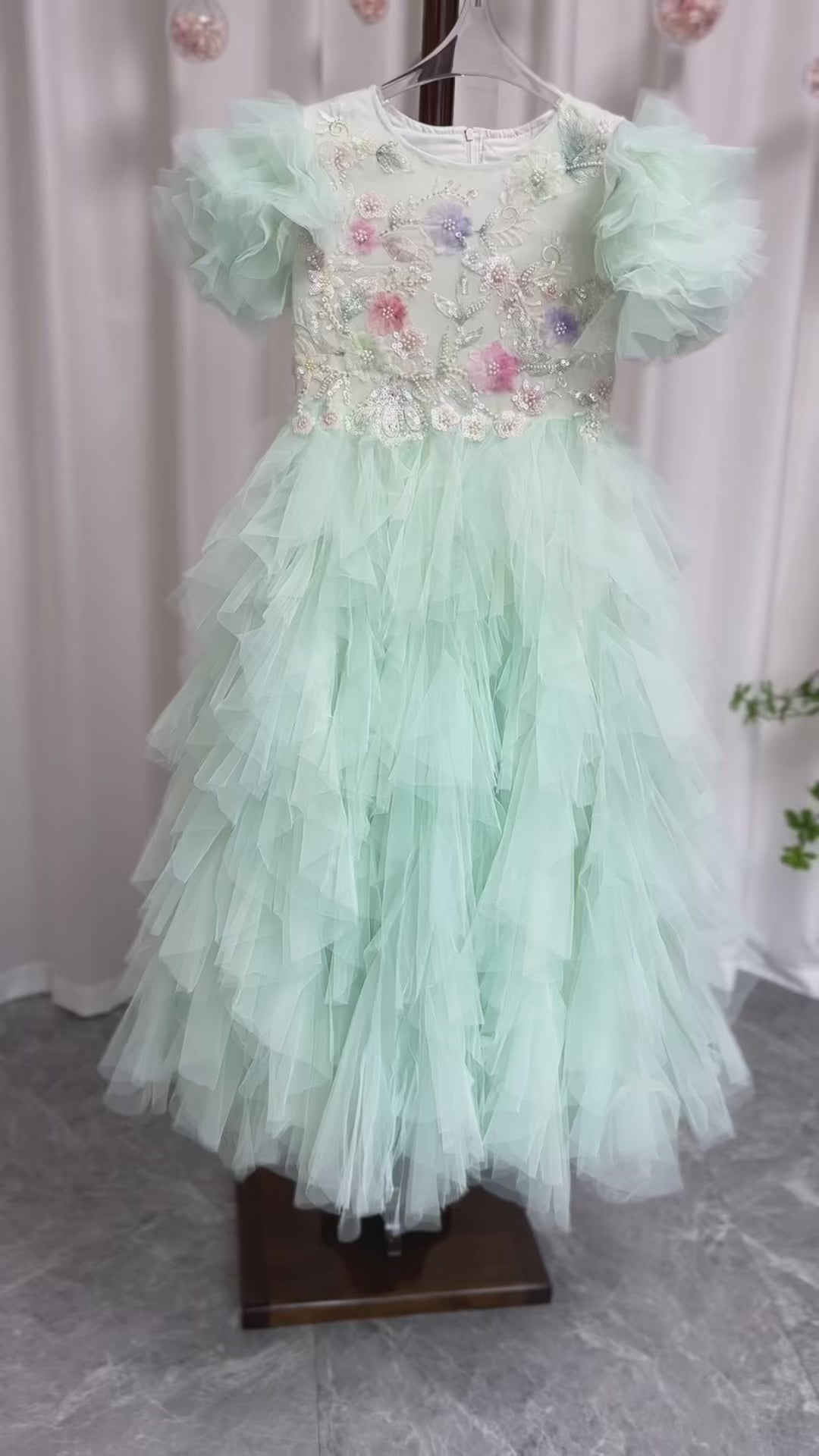 This Elegant Sage Green Flower Girl Dress is perfect for any special occasion. The Arabic Princess style and detailed design will make your little one feel like a royalty. Made with high-quality materials, this dress is comfortable and stylish. Perfect for weddings, birthdays, or any formal event.