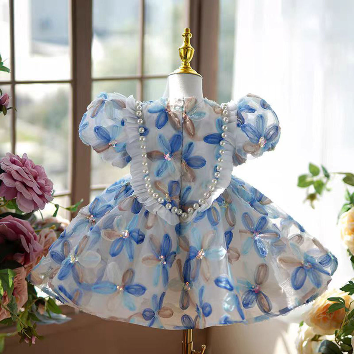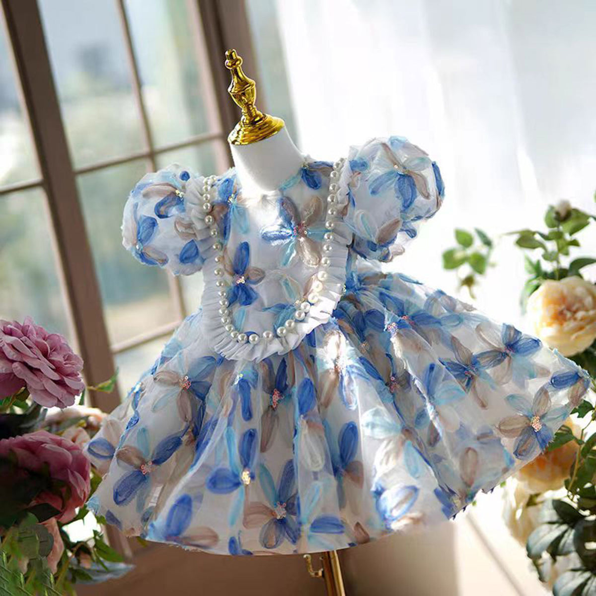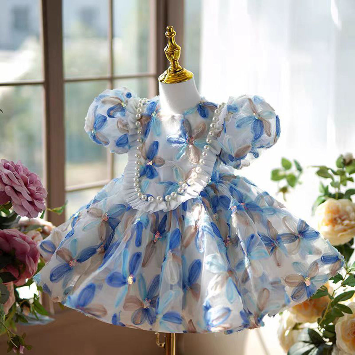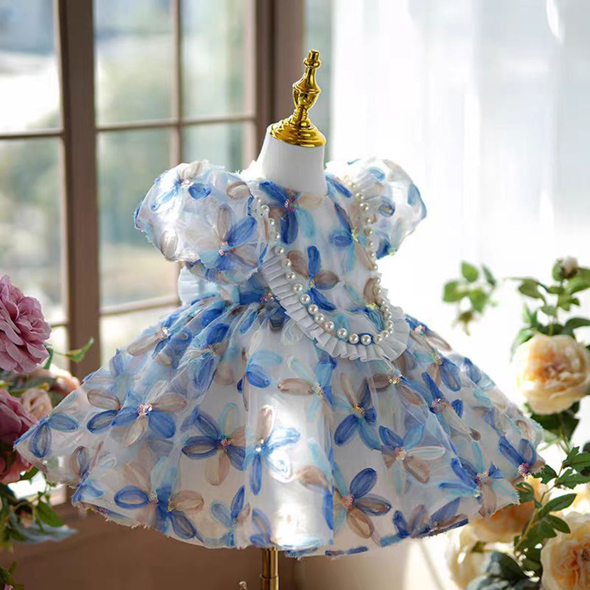 Floral Flower Girl Dress With Bow Lace Princess Toddler Kids 1st Birthday Party J474