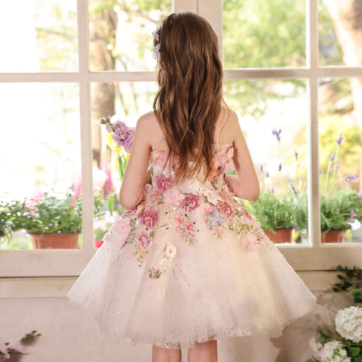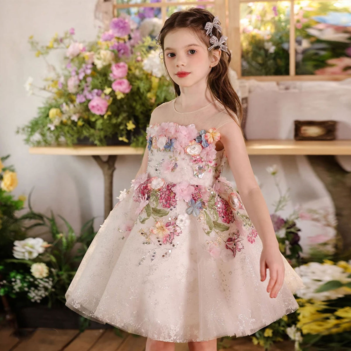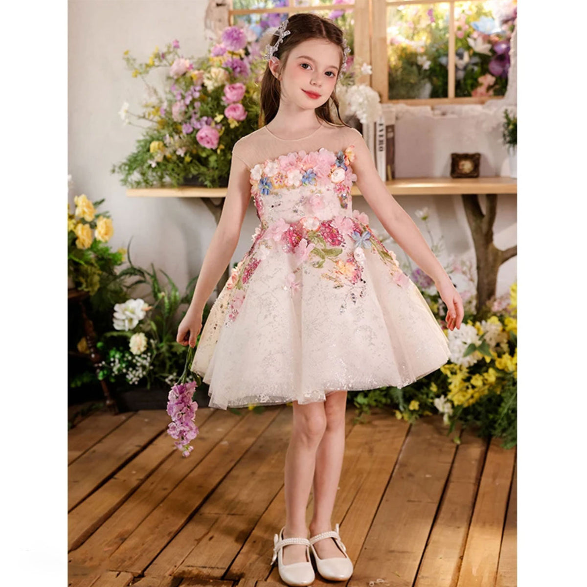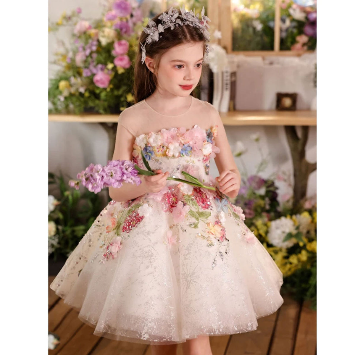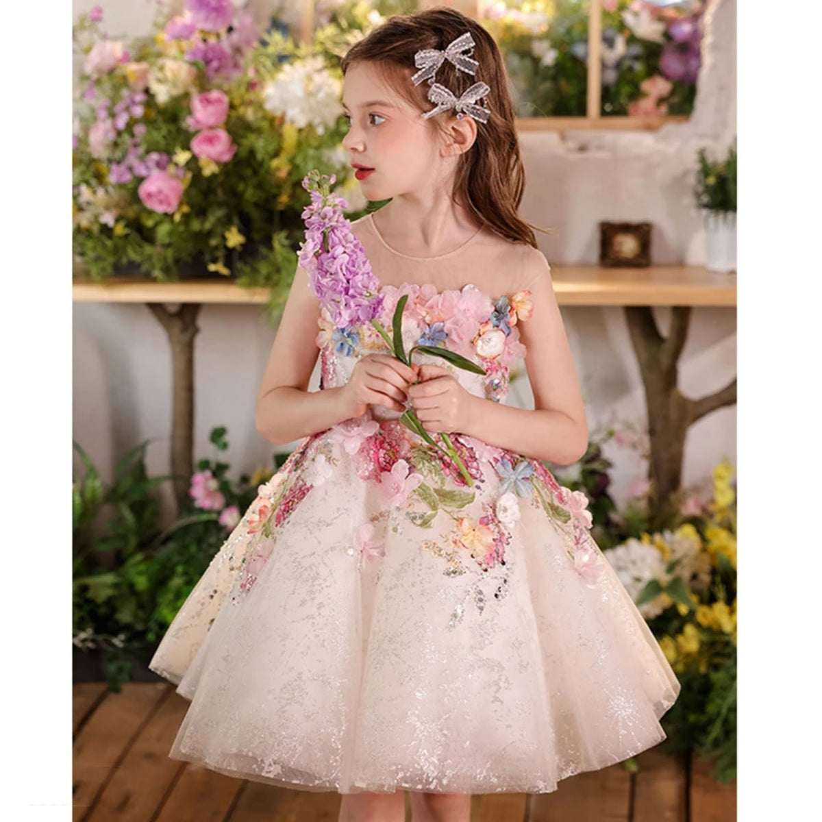 Luxury Floral Flower Girl Dress for Kids Pageant Party J404A
