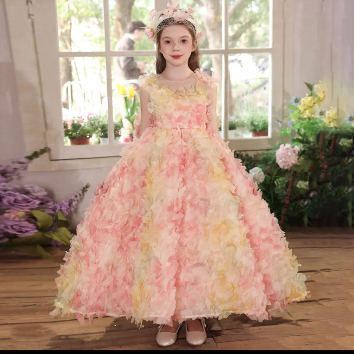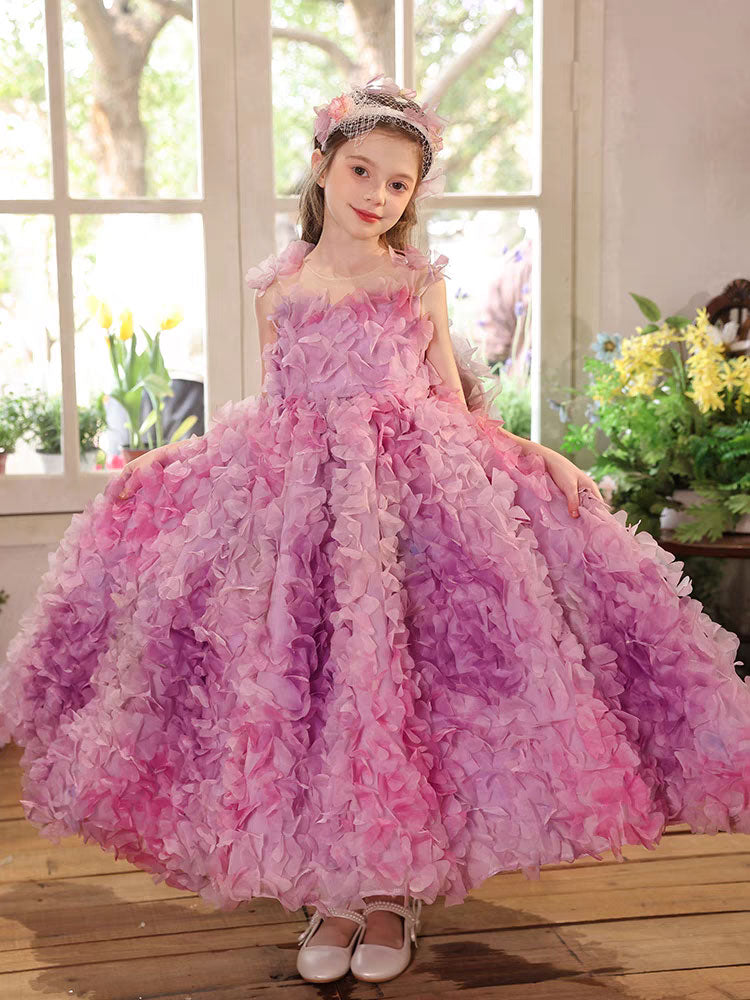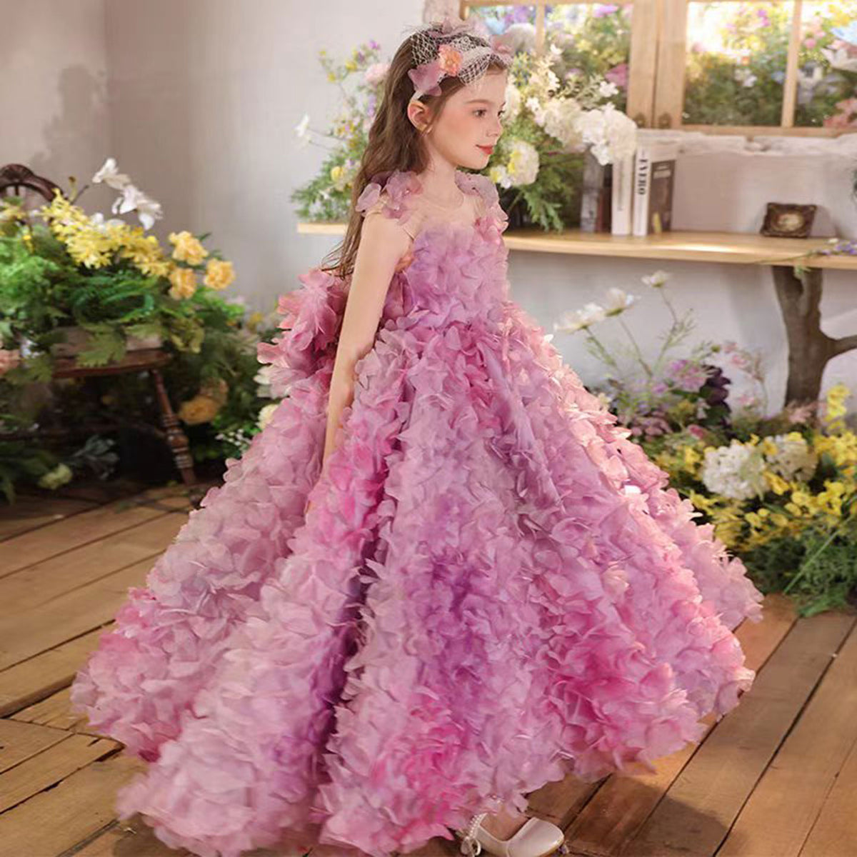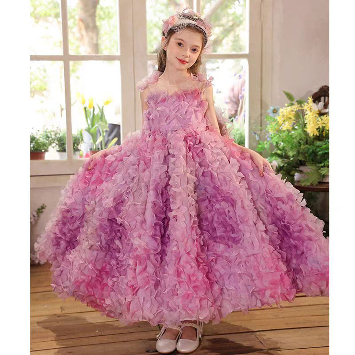 Luxury Fuchsia Flower Girl Long Dress Kids Wedding Pageant Party J288
