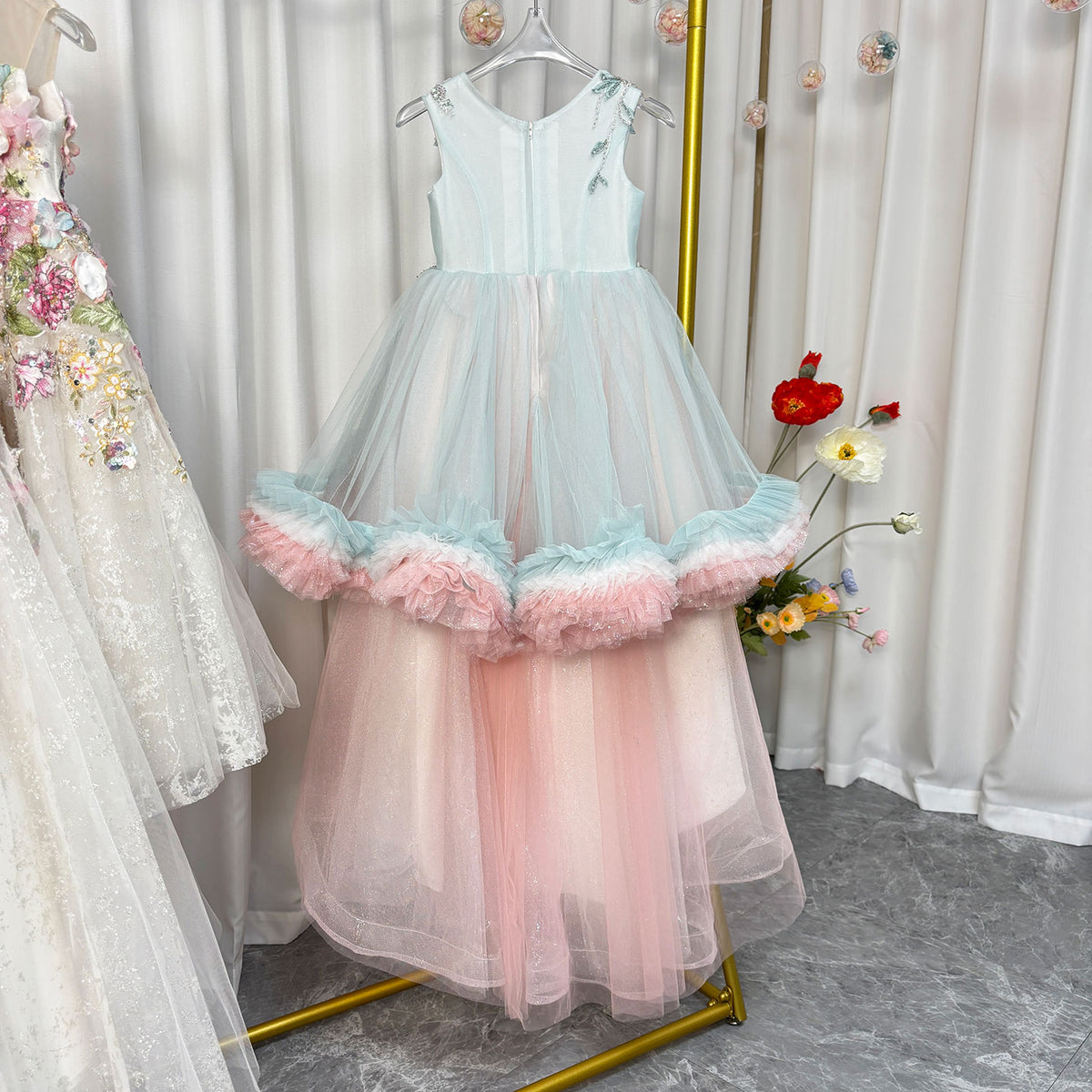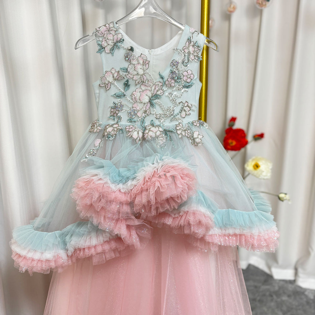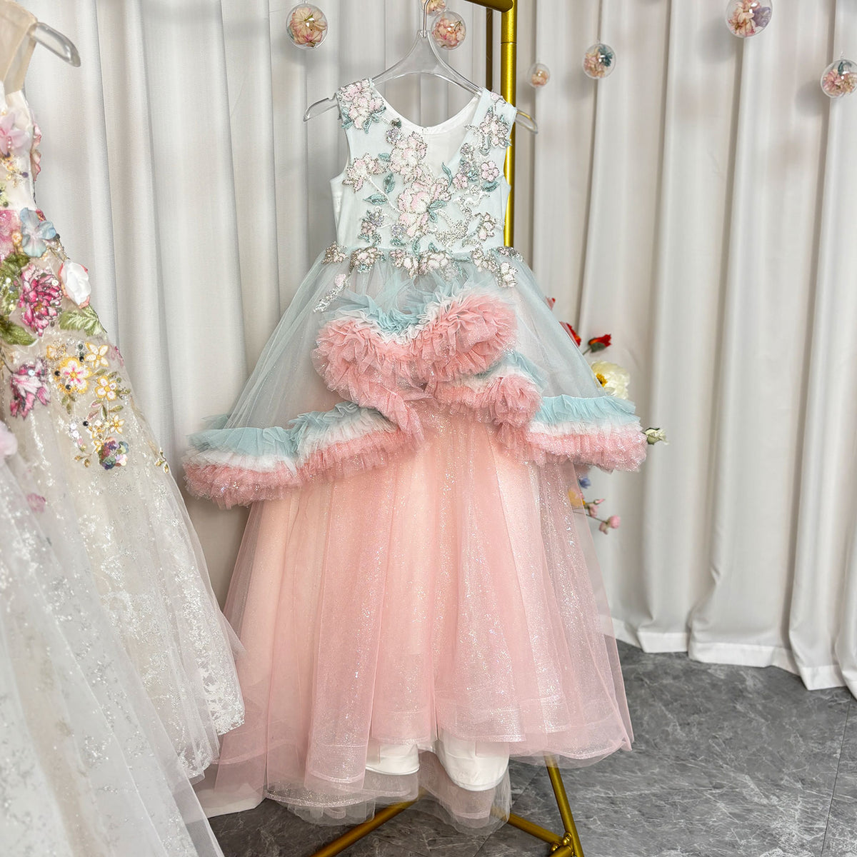 Luxury Embroidery Pink Arabic Bithday Party Girl Dress J120