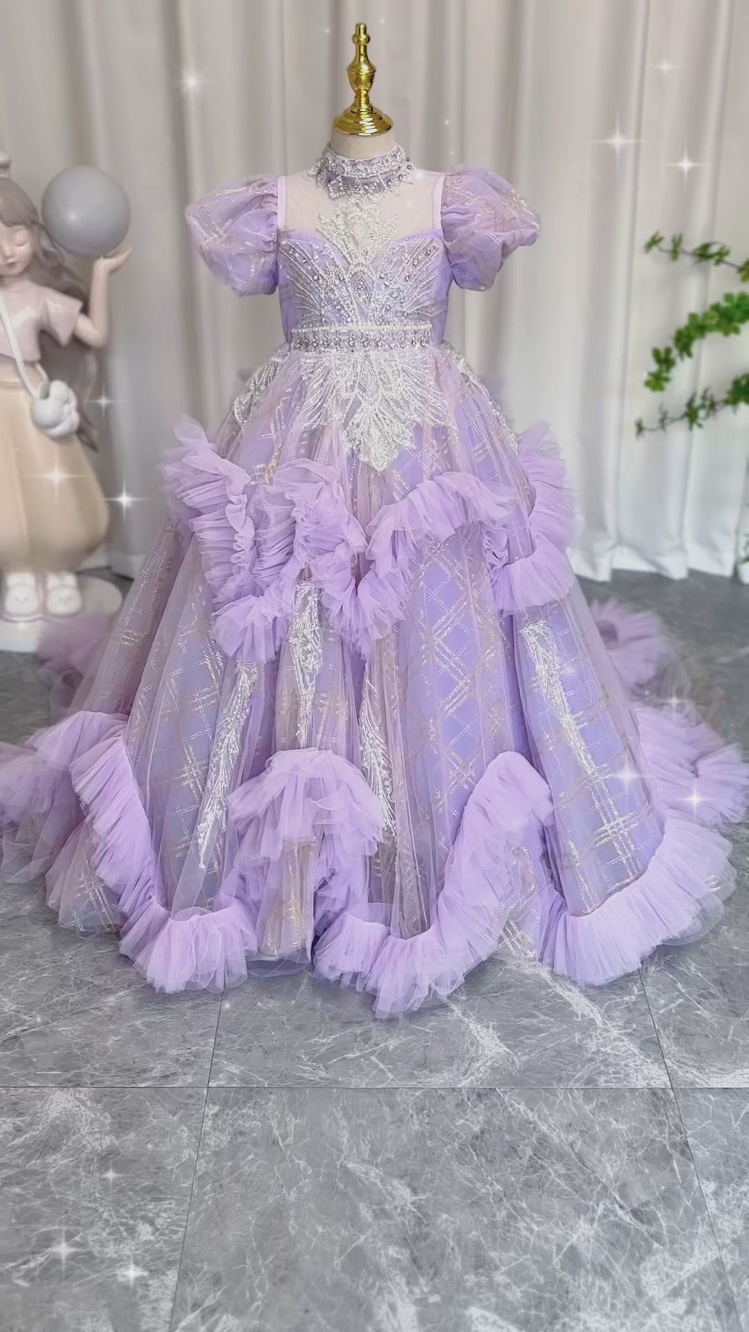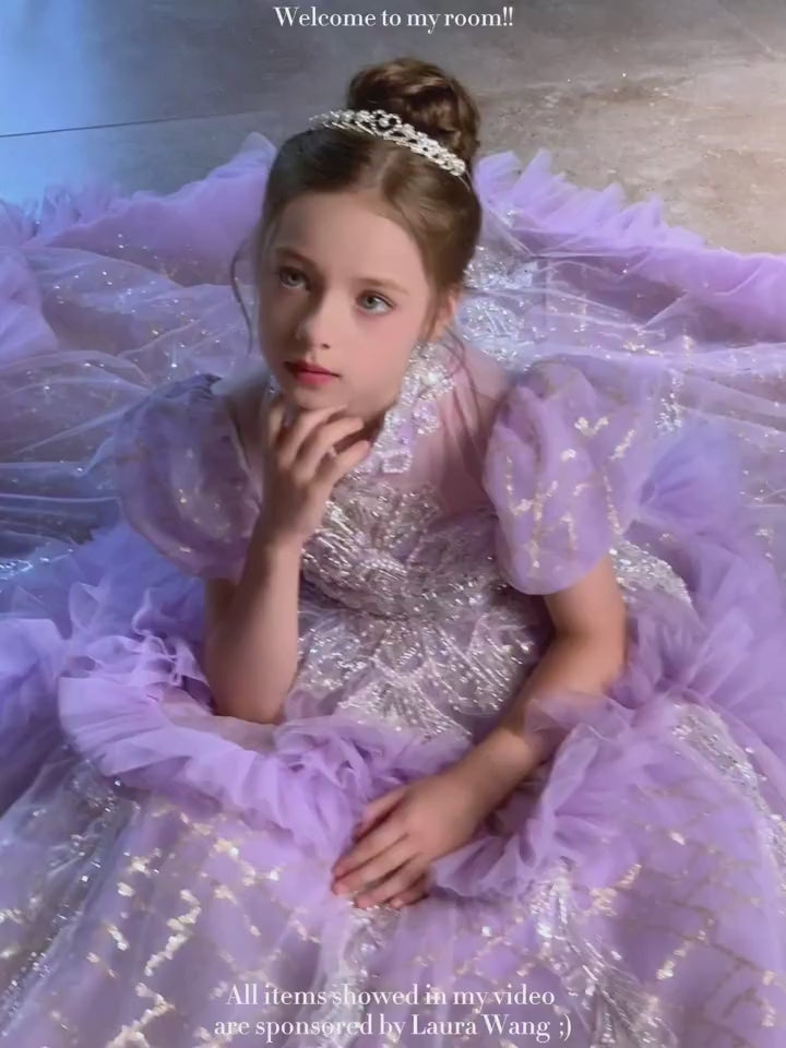 Add a touch of elegance to your little girl's special day with our Dreamy Luxury Beaded Lilac Girl Dress. Perfect for birthdays, weddings, and other special occasions, this dress features intricate beading and luxurious fabric for a truly stunning look. Made with care and high-quality materials for lasting comfort and style.
