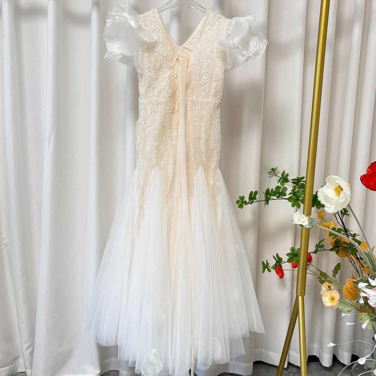 Elevate your little one's special occasion with our Jill Luxury V-Neck Beaded Tulle Flower Girl Dress. Meticulously crafted with premium tulle fabric and adorned with delicate beading, this princess-style dress features an elegant V-neckline that adds sophistication while maintaining age-appropriate charm. The J556 design combines comfort with exquisite detailing, ensuring your flower girl looks enchanting while feeling comfortable throughout the celebration.