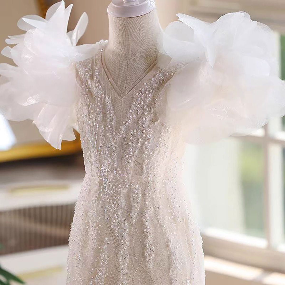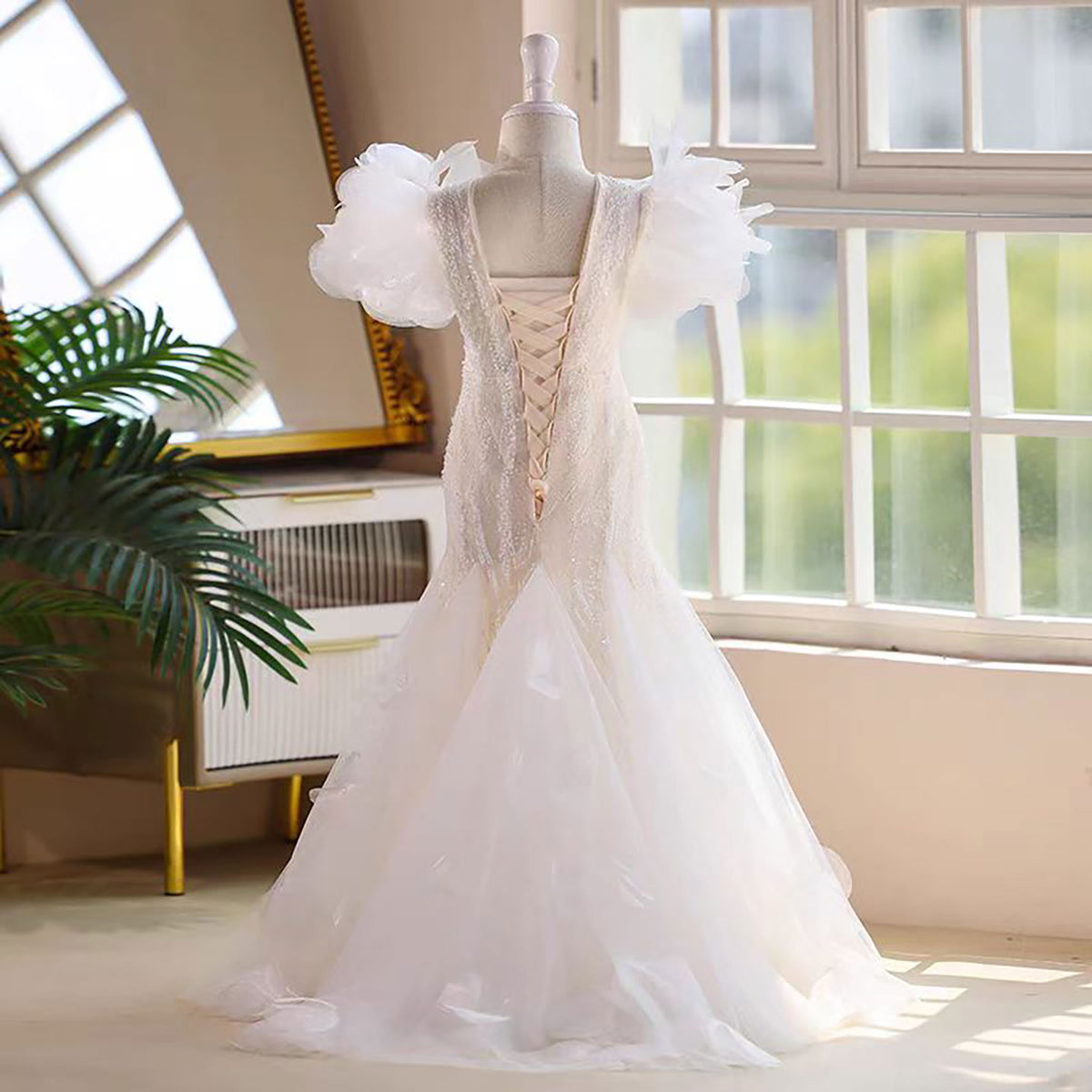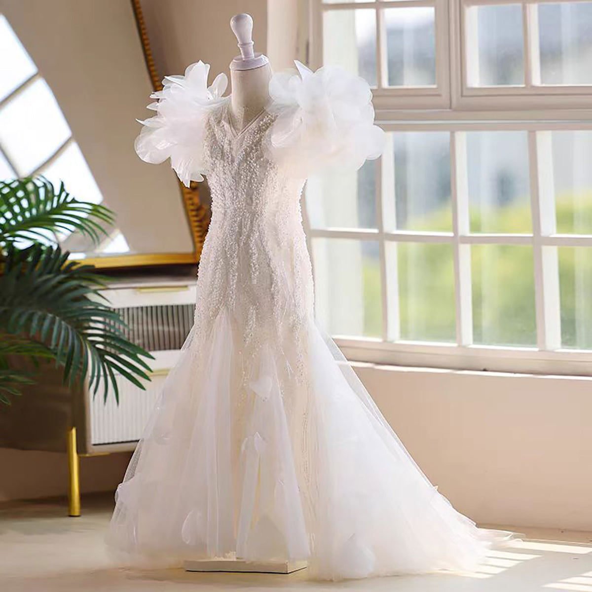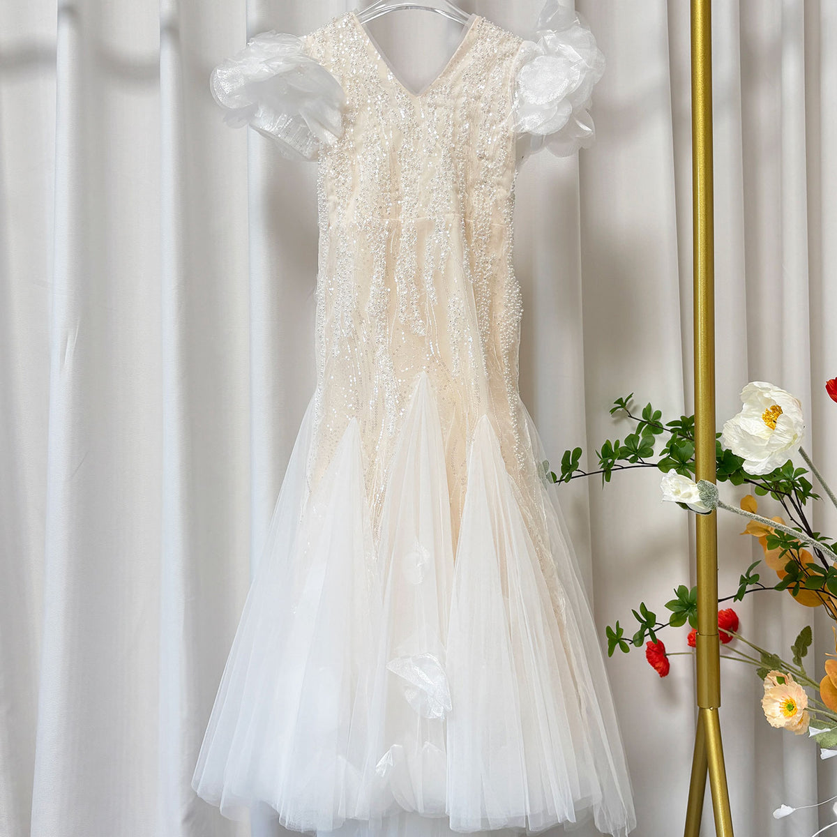Luxury V-Neck Beaded Tulle Flower Girl Dress Princess J556