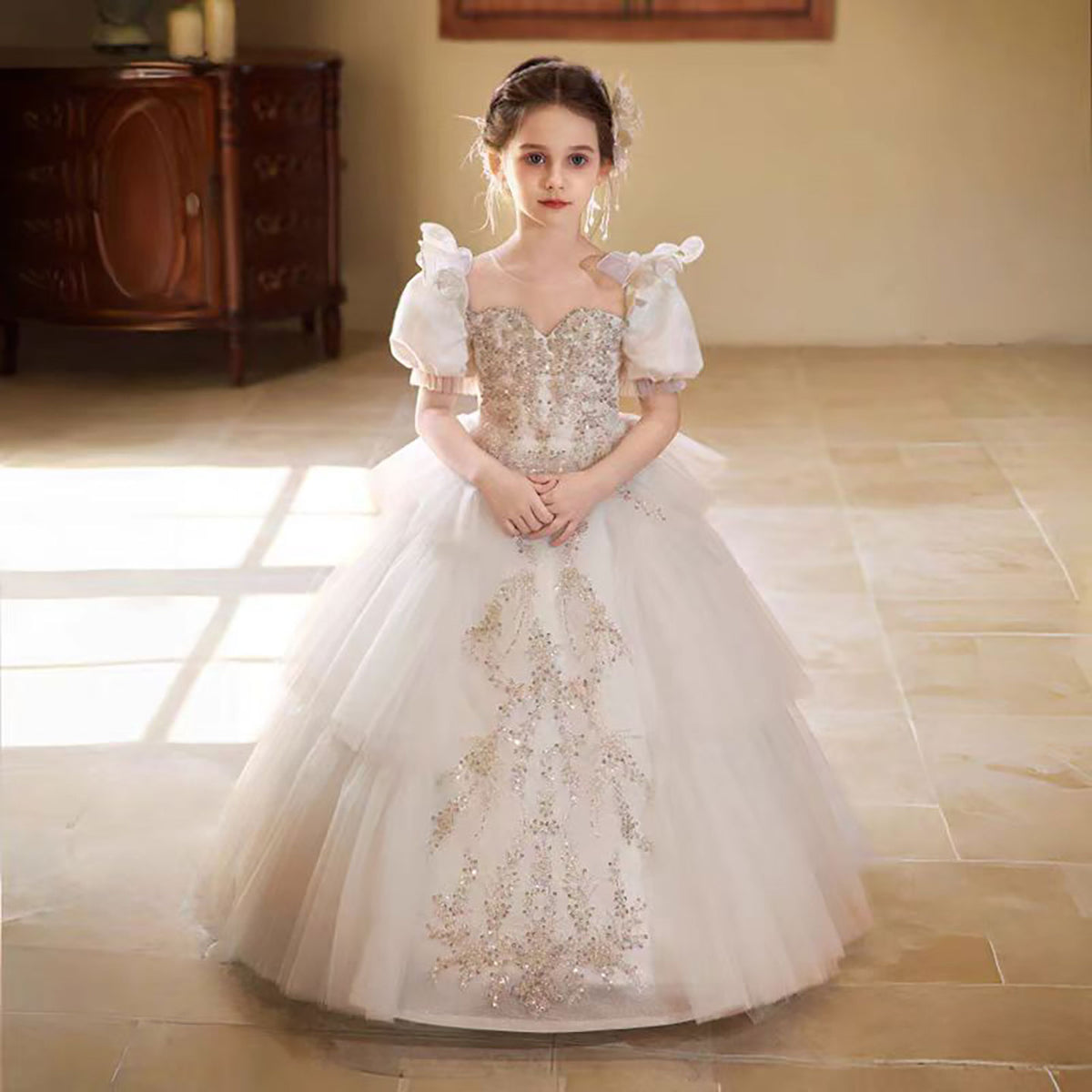 Sweetheart Beaded Tiered Tulle Flower Girl Dress D314