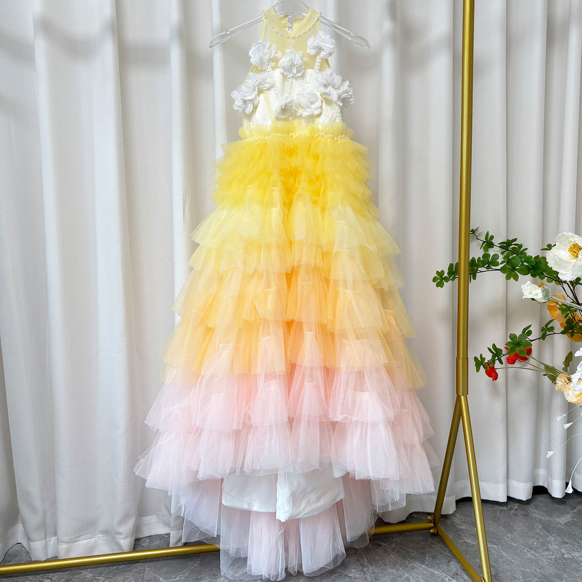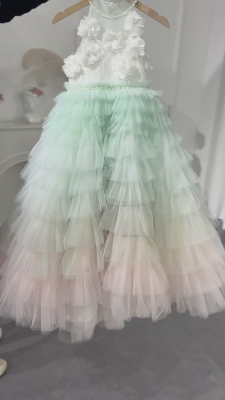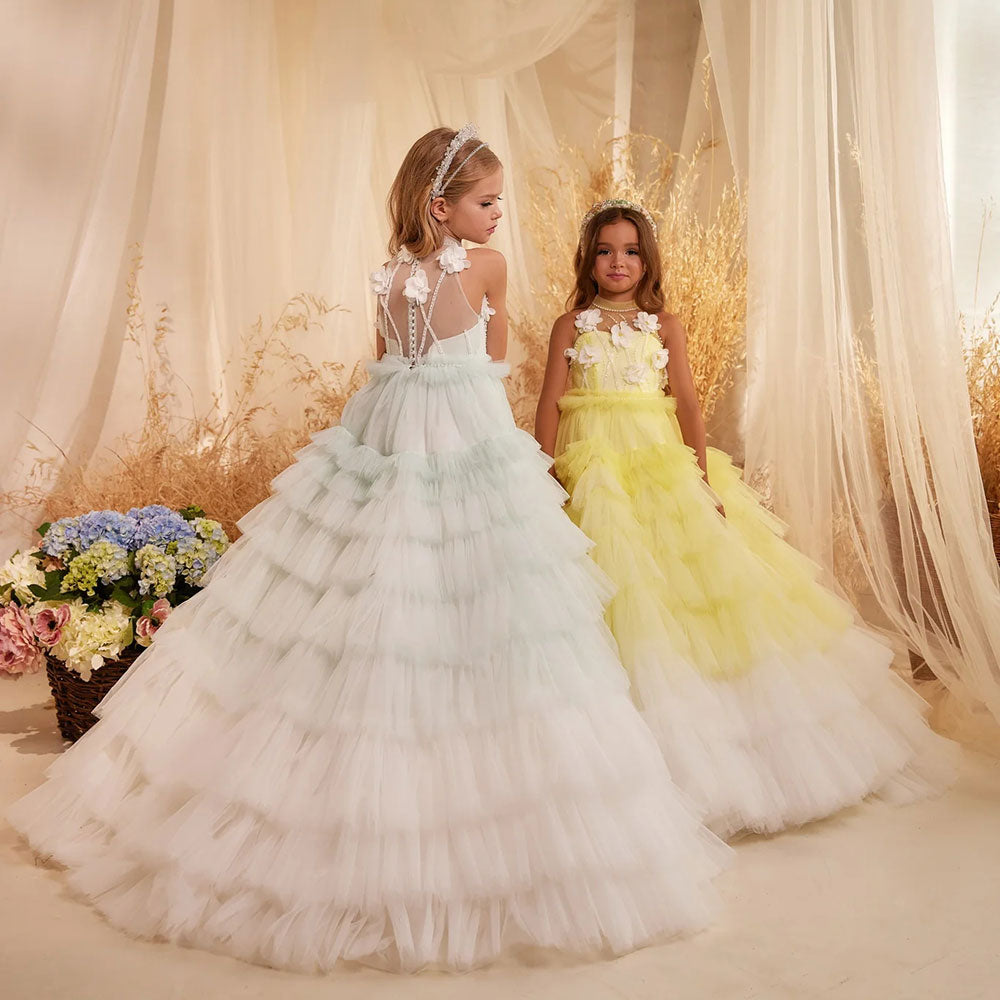 Experience the ultimate luxury with our Jill Wish Sage Green Flower Girl Dress. Handmade with exquisite flower detailing and a tiered princess ball gown design, this dress is perfect for weddings and birthday parties alike. Elevate your little girl's style and make her feel like a true princess on her special day.