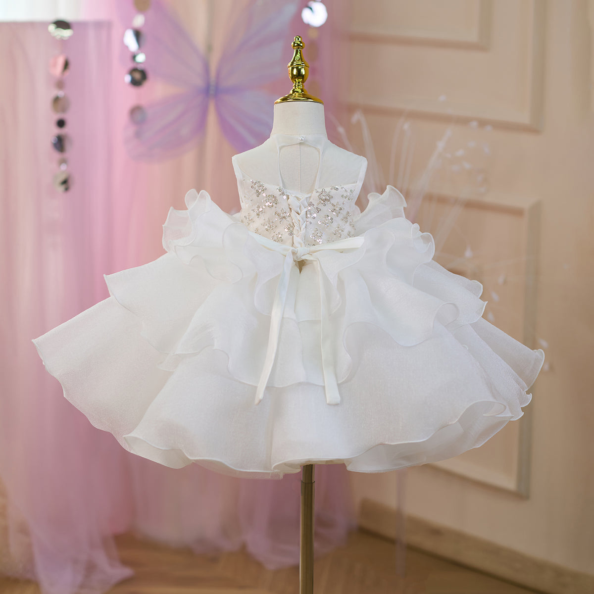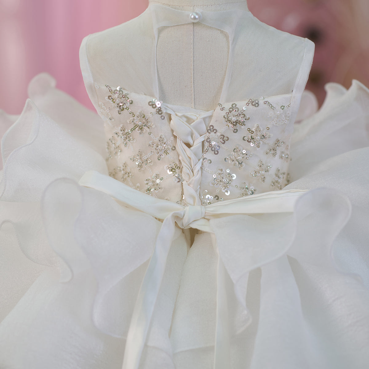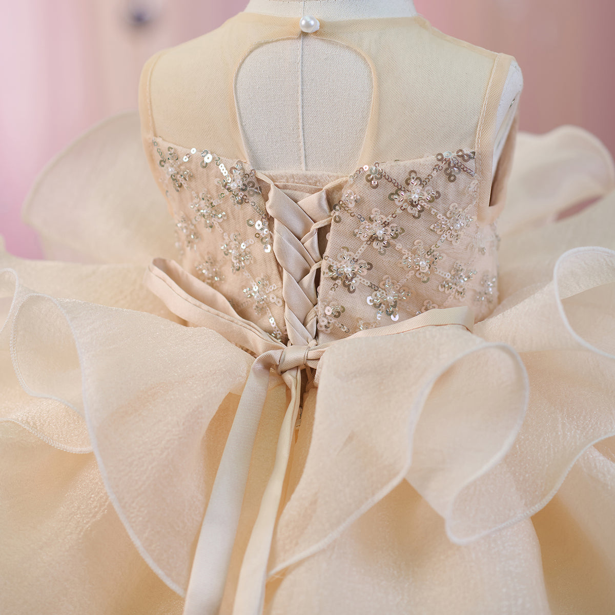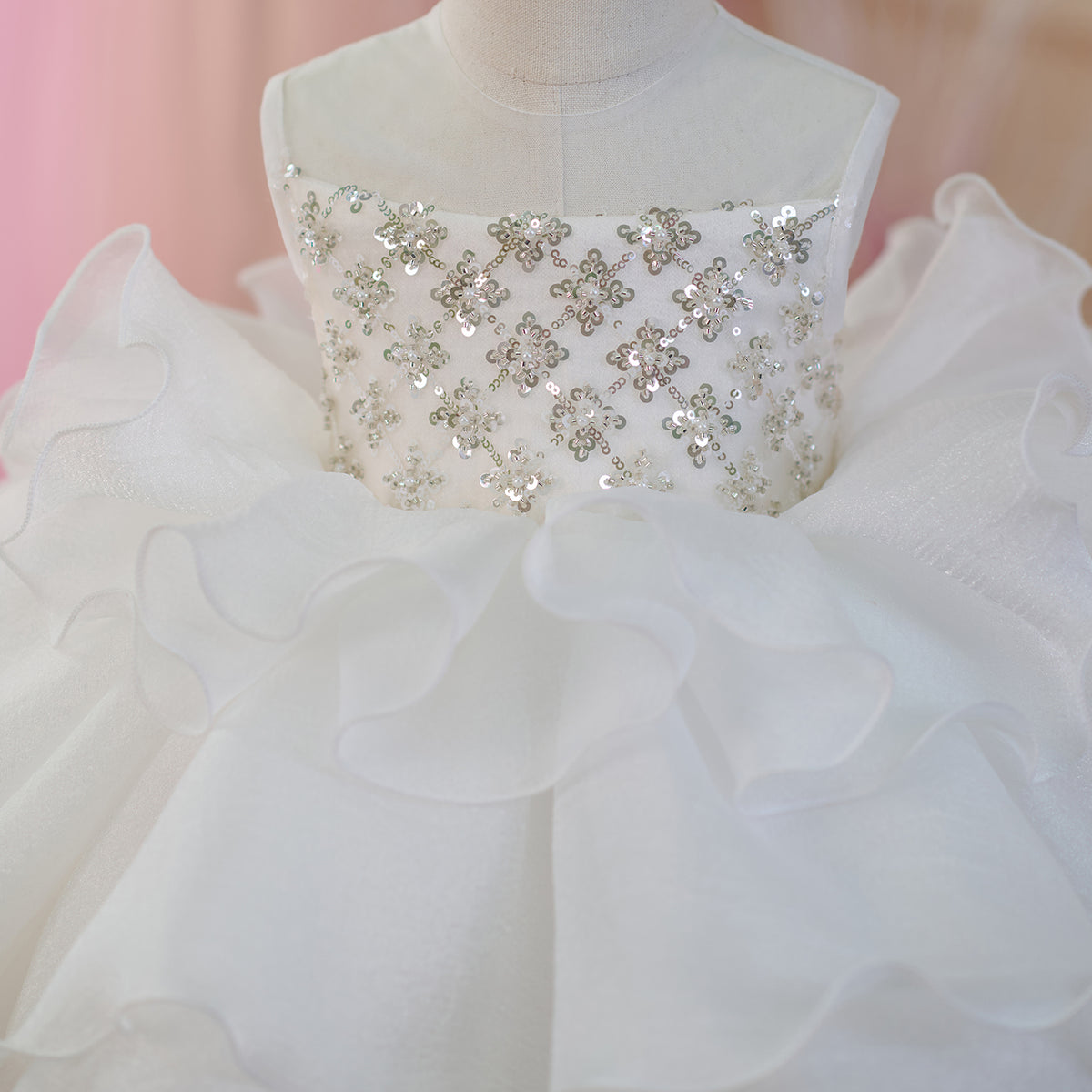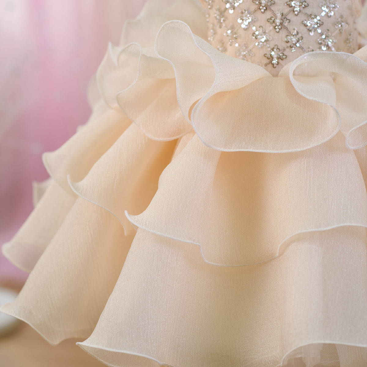 Sequined Tiered Tulle Girl Dress Bow Sleeveless J821