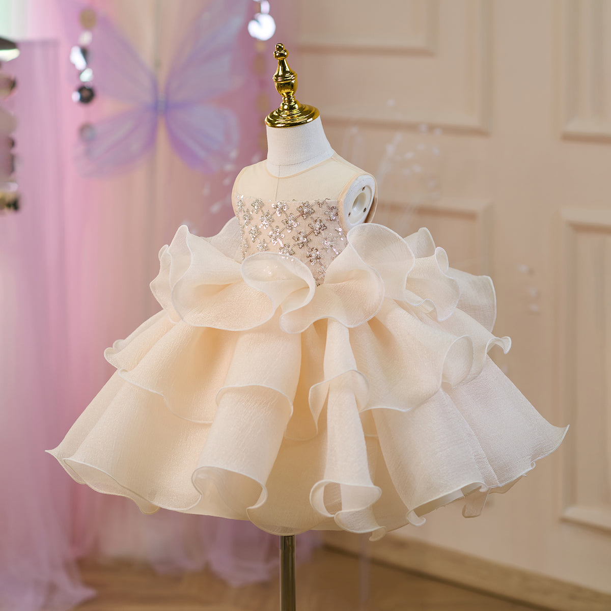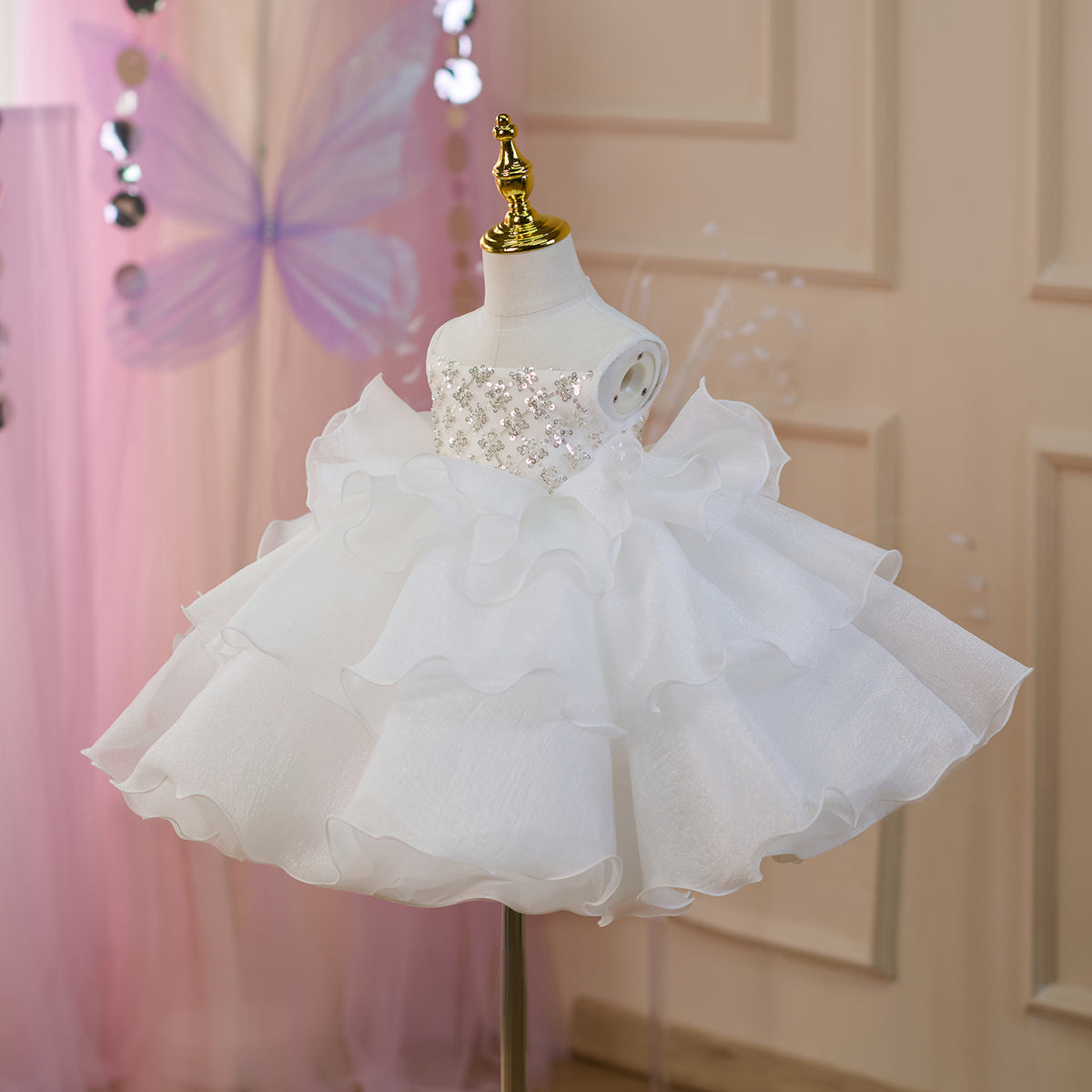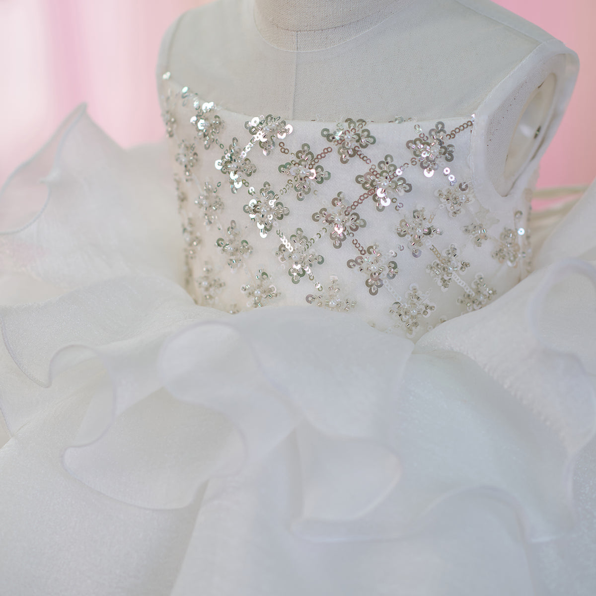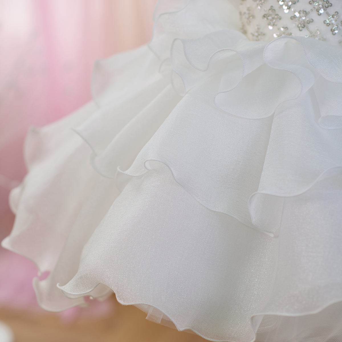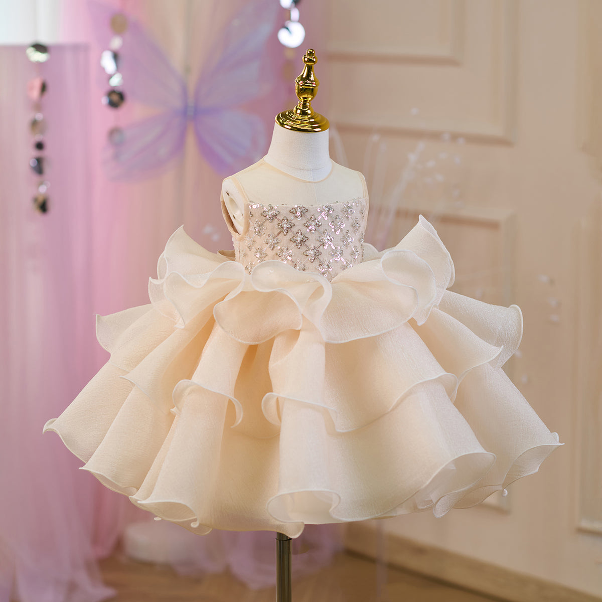 Sequined Tiered Tulle Girl Dress Bow Sleeveless J821