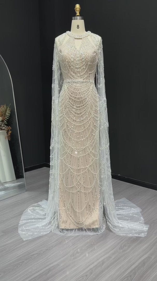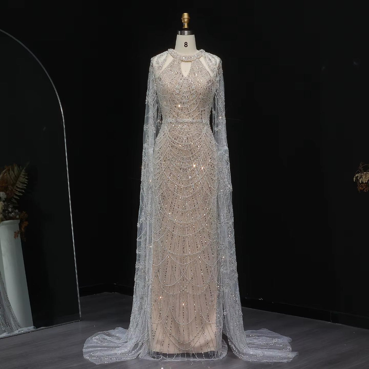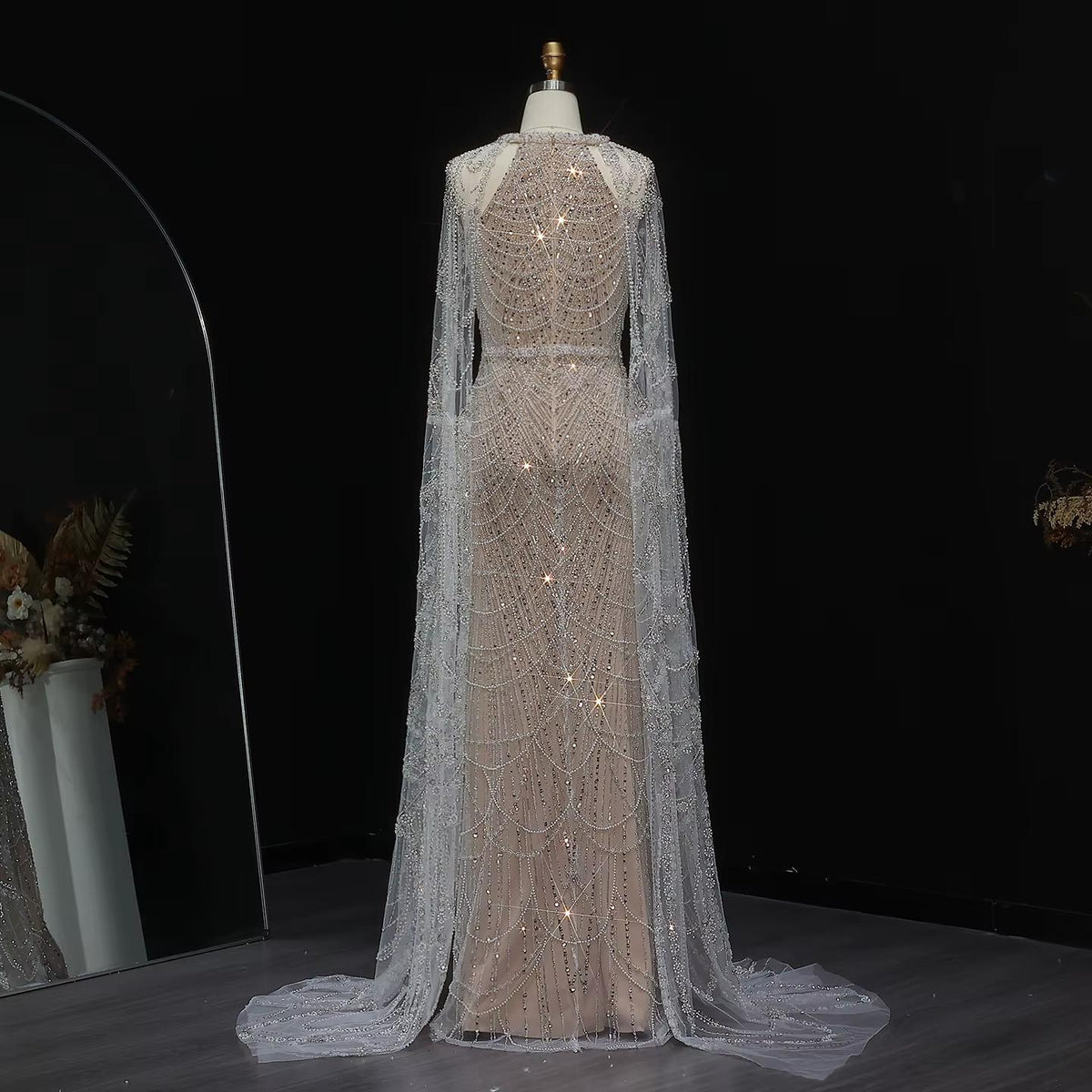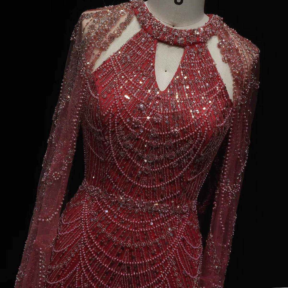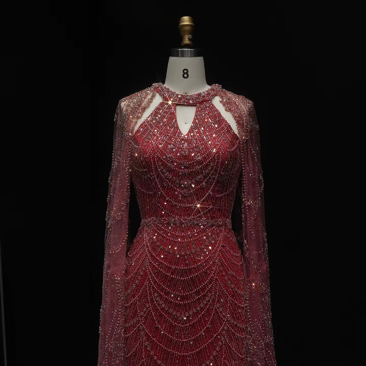 Enhance your evening look with the Elegant Burgundy Evening Gown with Cape SS089. The cascading cape adds a touch of sophistication while the deep burgundy color exudes elegance. Made with high-quality materials and expert craftsmanship, this gown is perfect for any formal occasion.