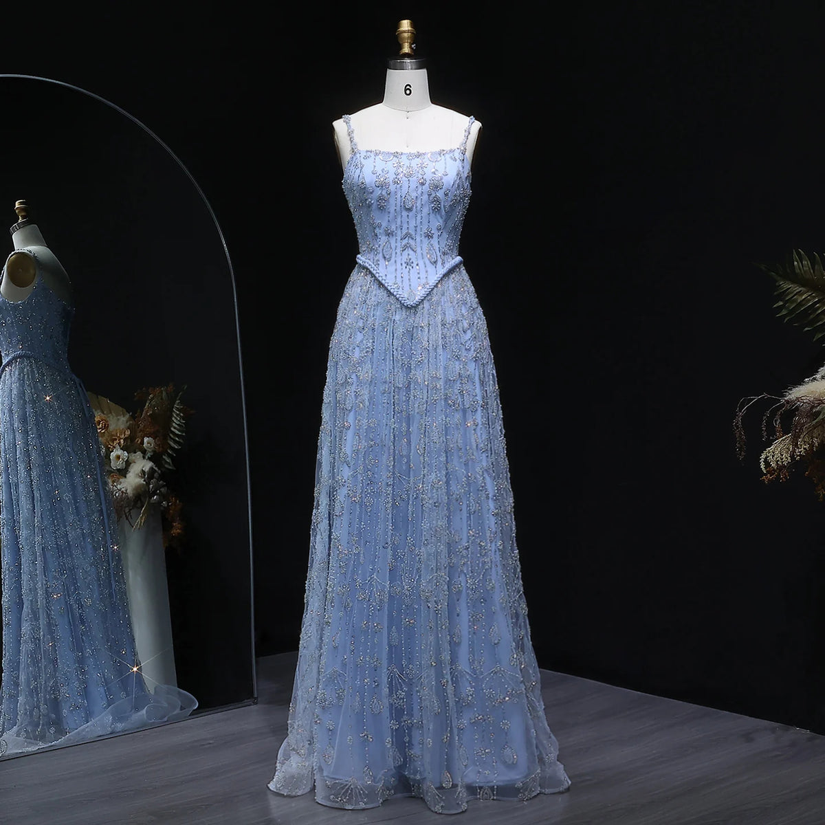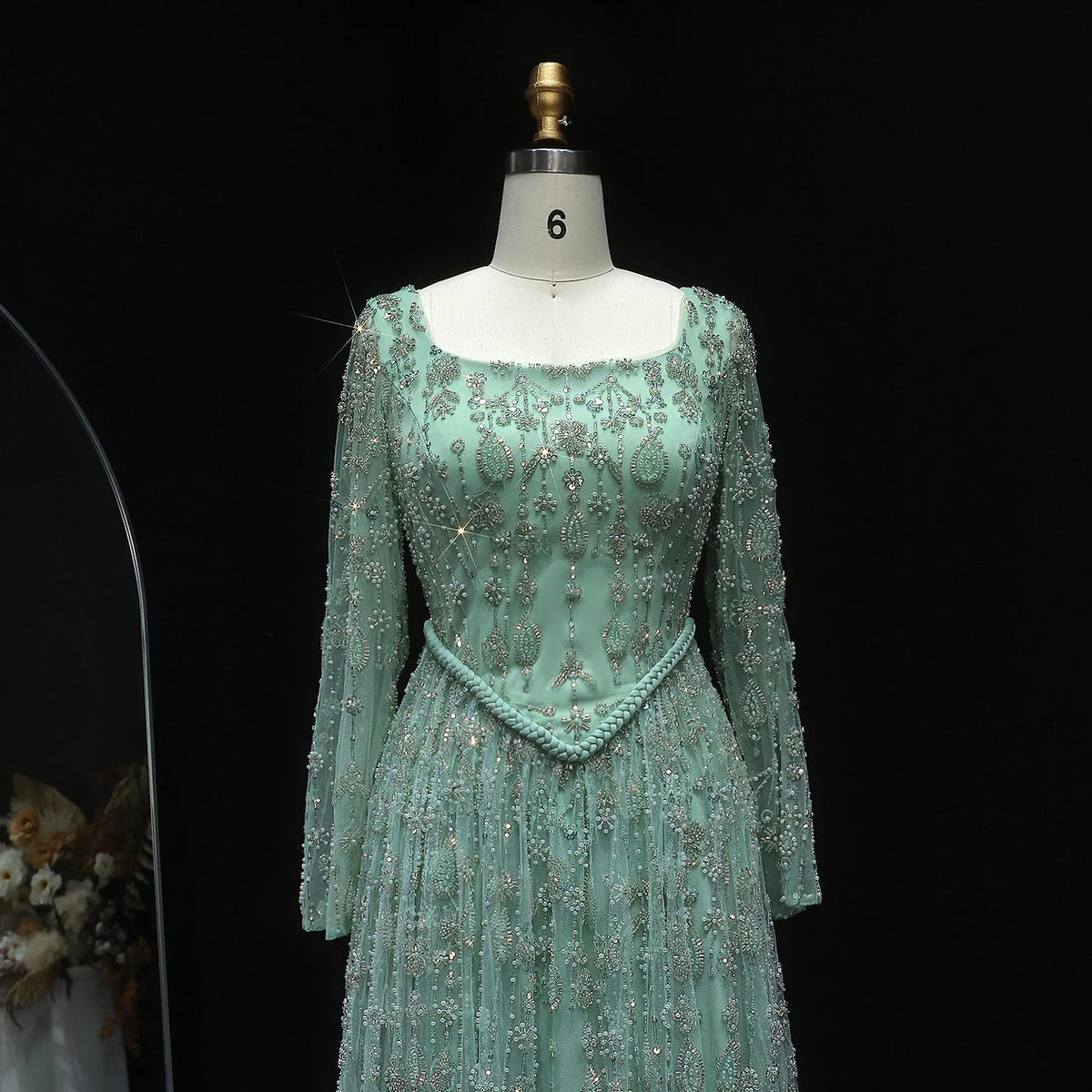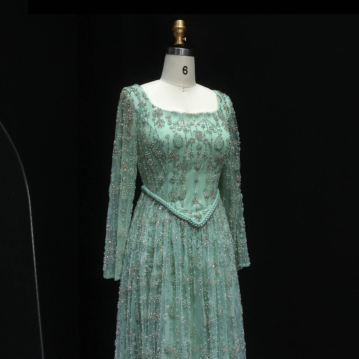 Elegant Sage Green Luxury Evening Dress with Spaghetti Straps SS693
