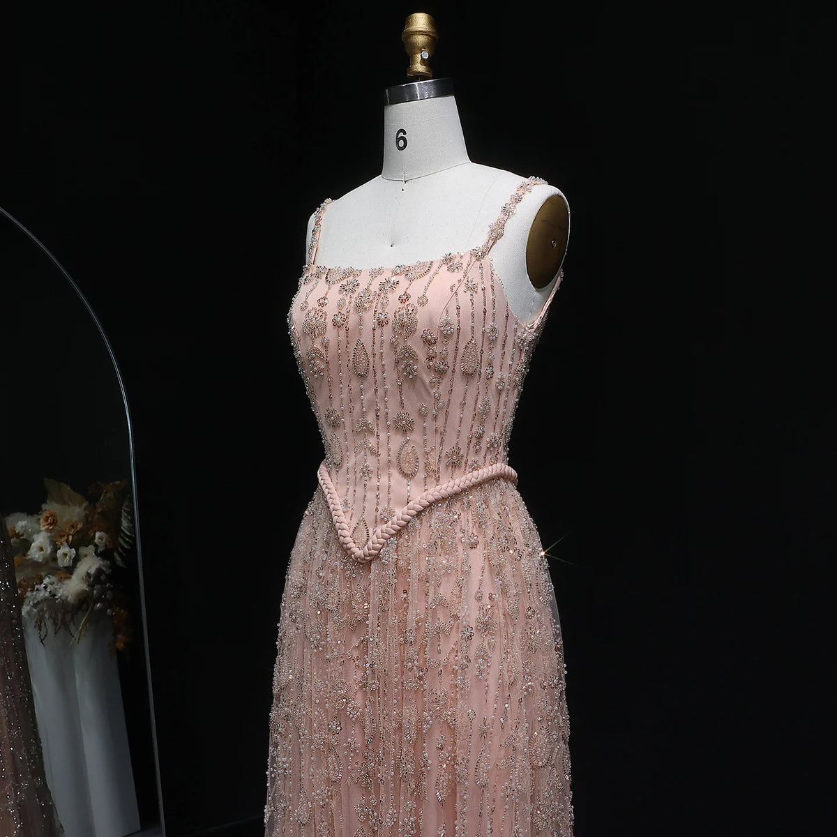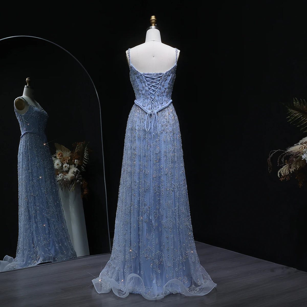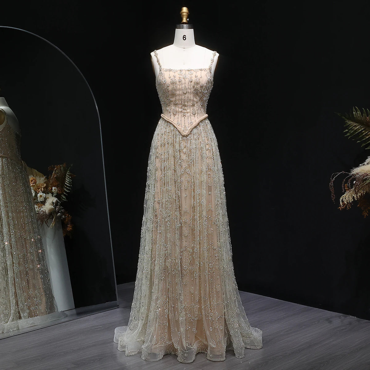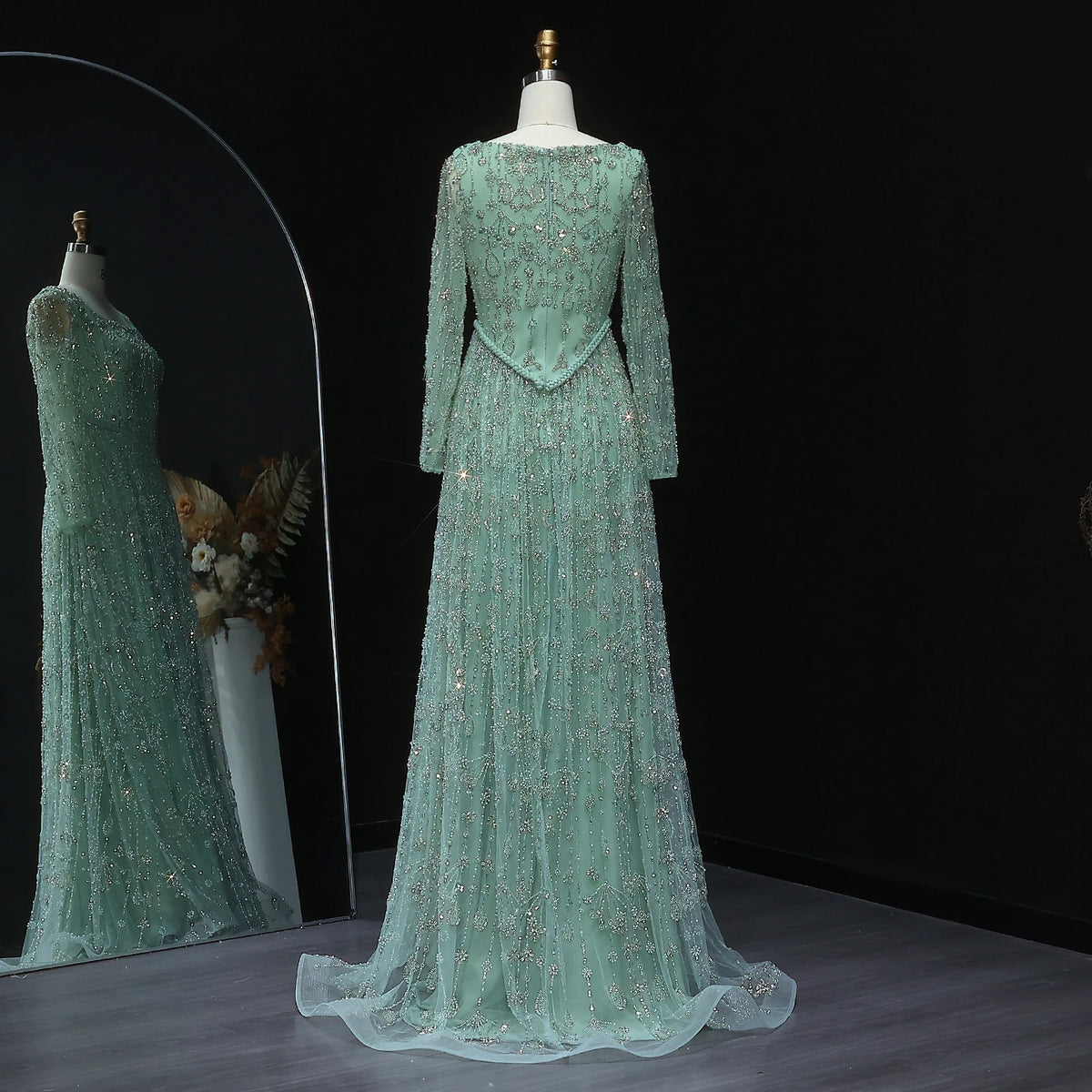 Elegant Sage Green Luxury Evening Dress with Spaghetti Straps SS693