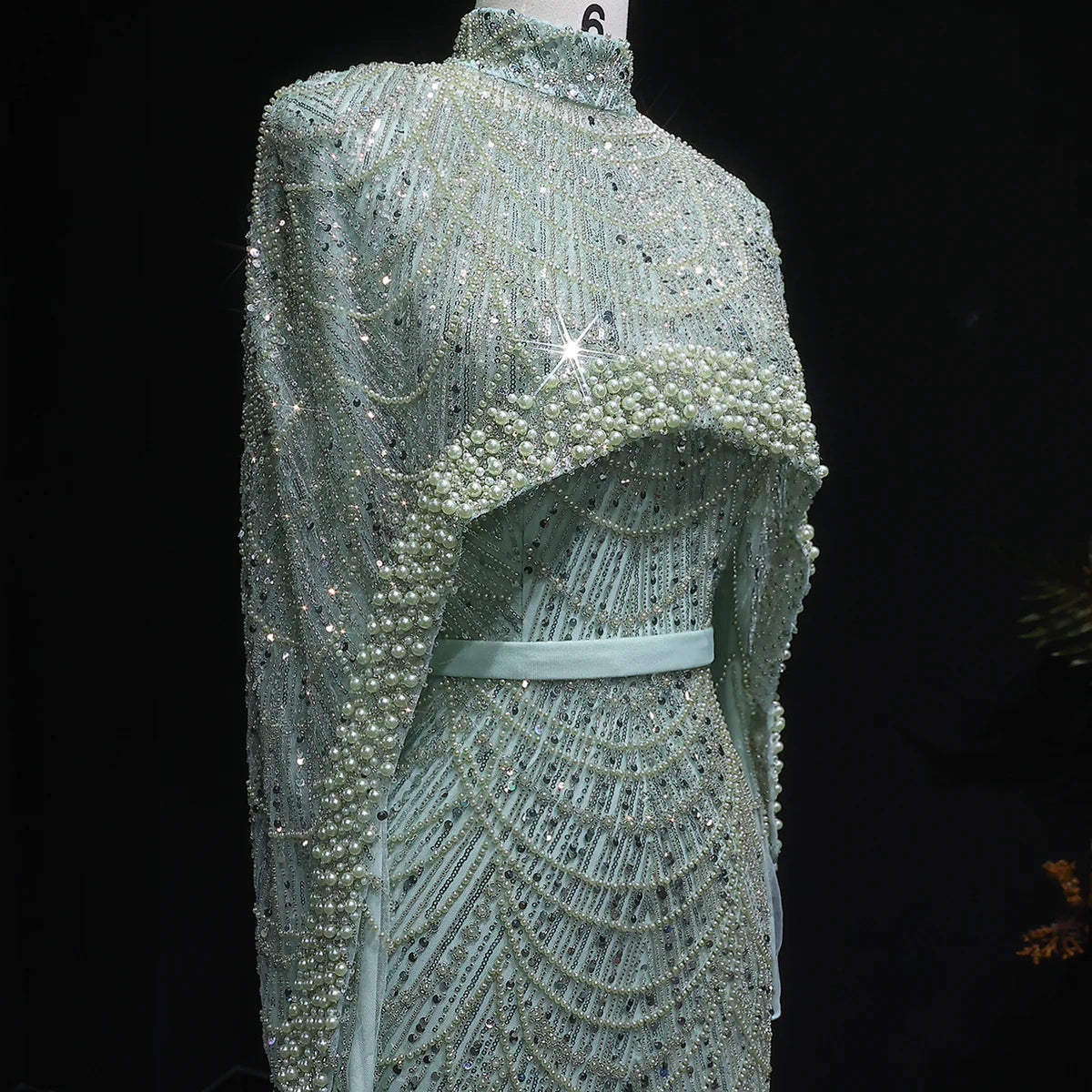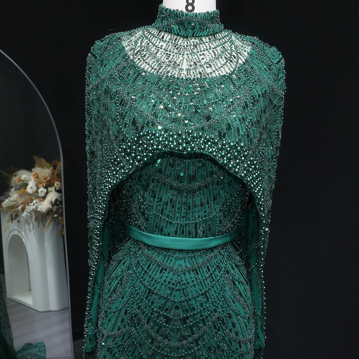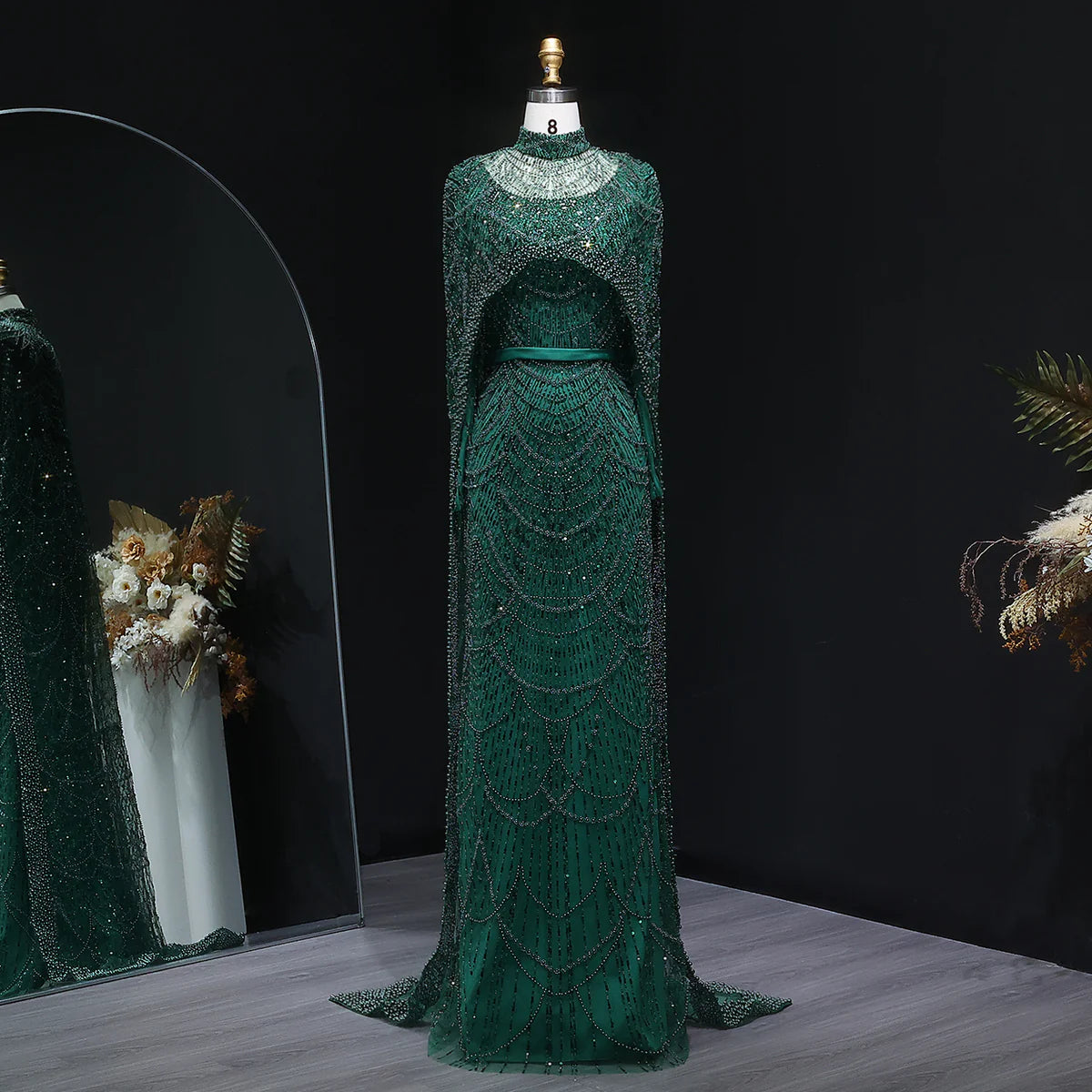 Nude Luxury Long Sleeves Muslim Evening Dresses with Cape SS369A