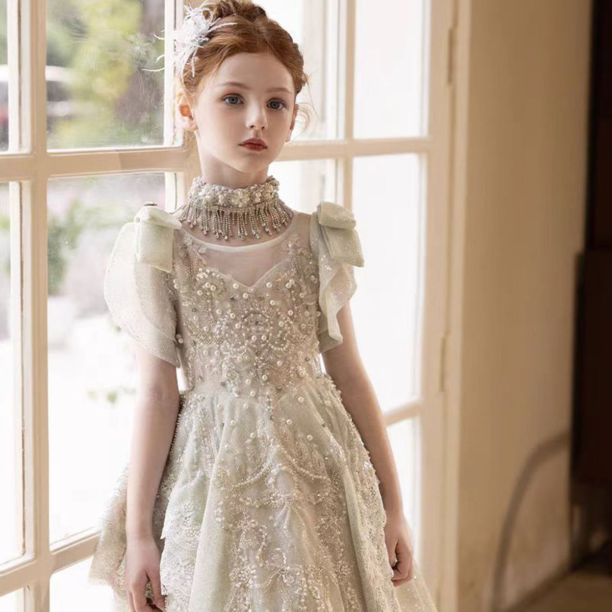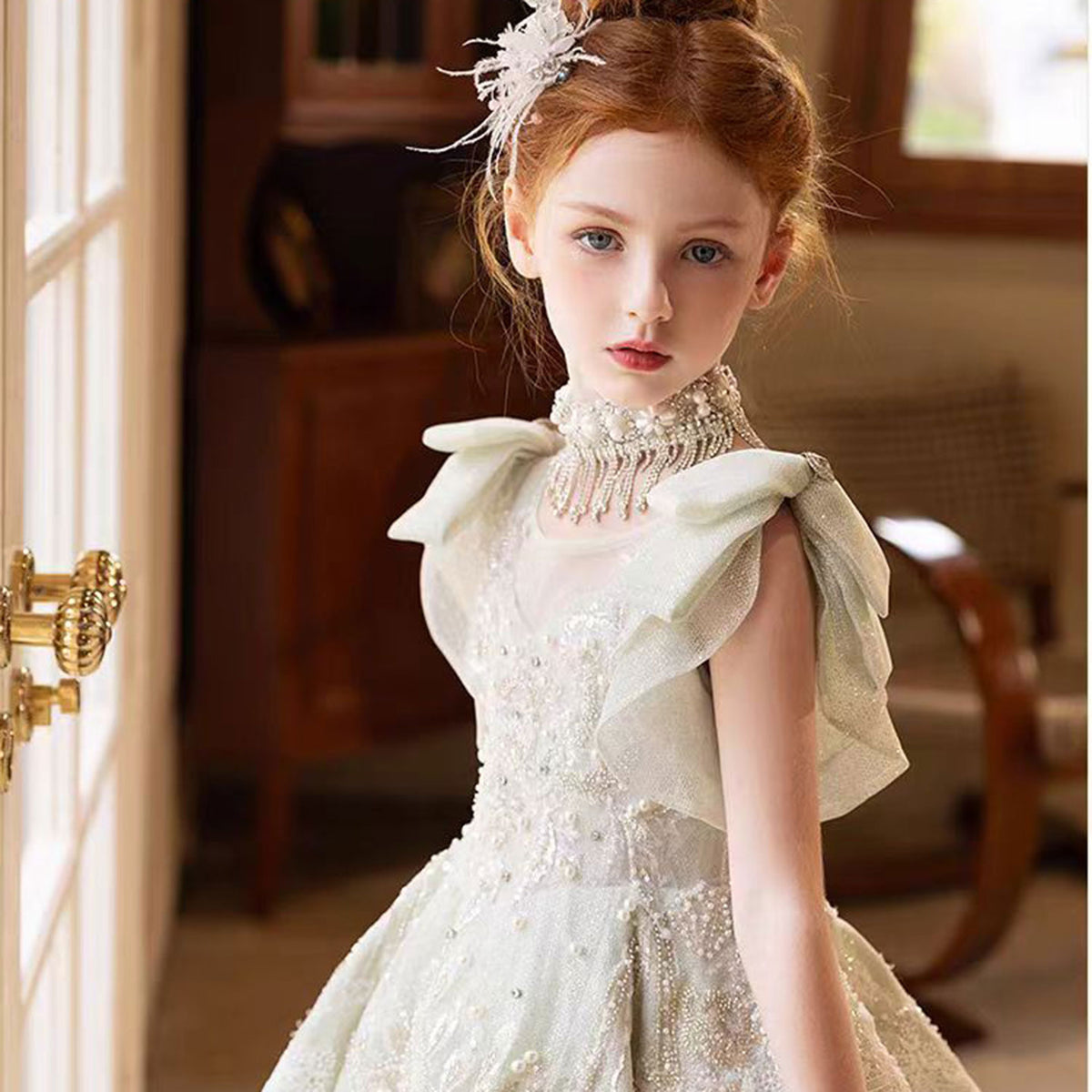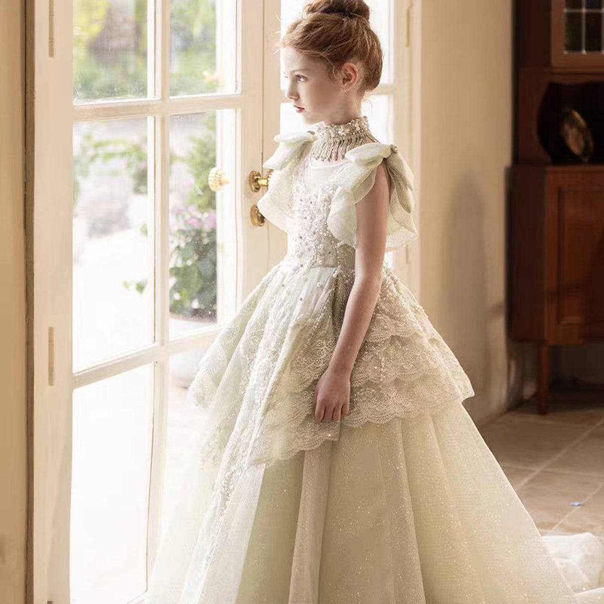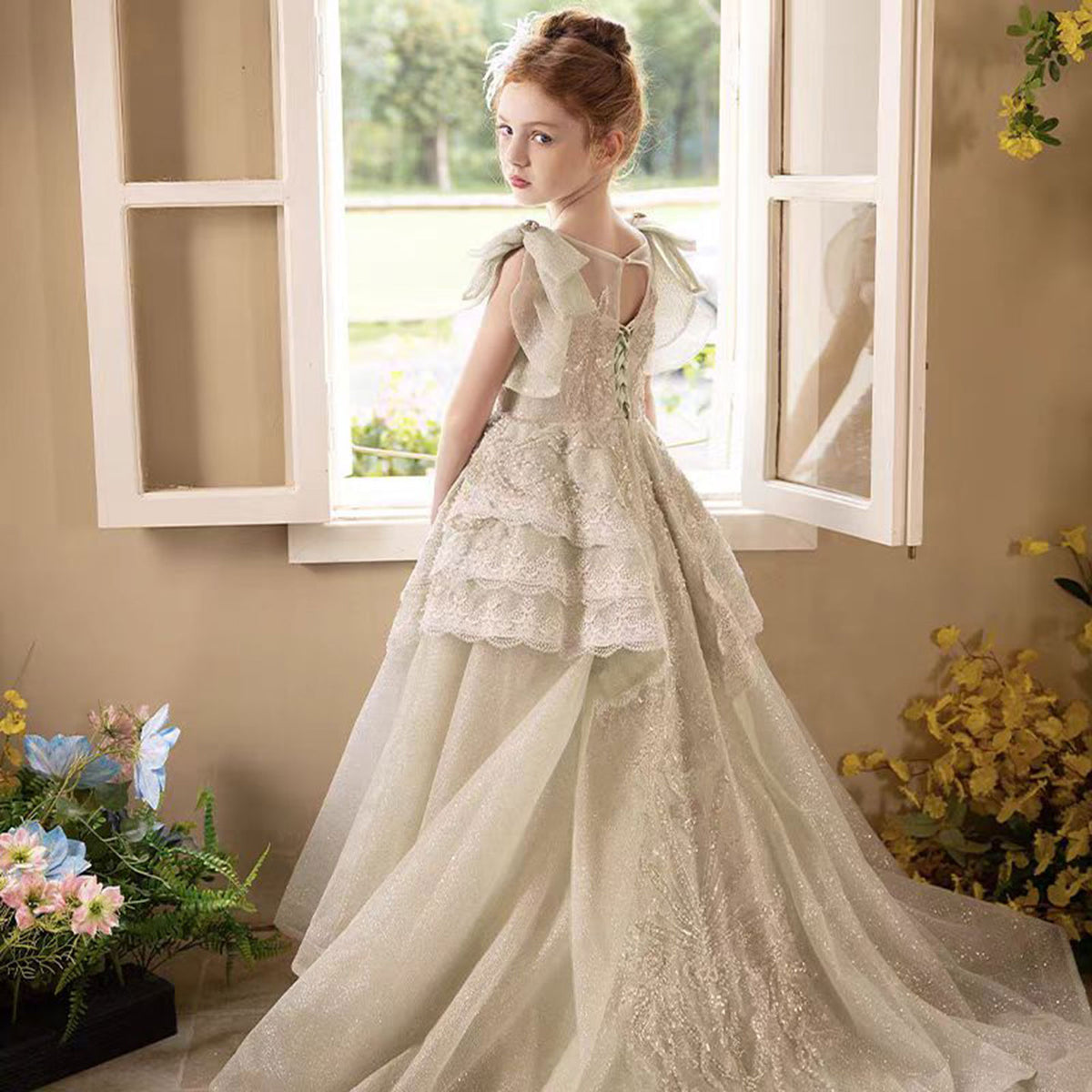 Luxury Beaded Lace Tiered Flower Girl Dress Princess J078