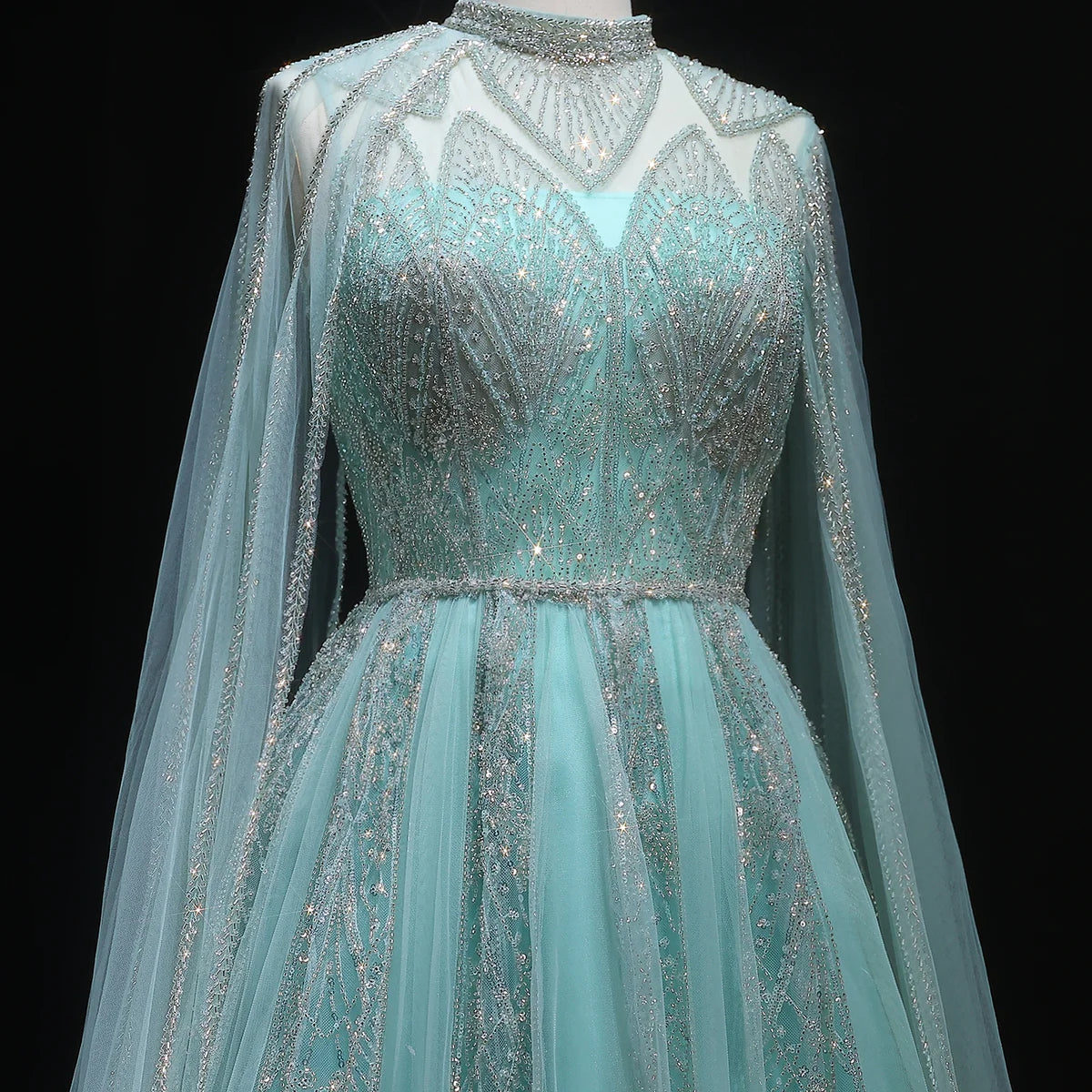 Luxury Pink Arabic Evening Dress with Cape Sleeves Gowns SS050