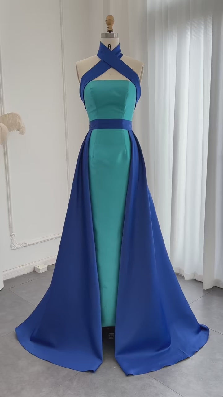 Arabic Royal Blue Contrast Turquoise Evening Dress with Overskirt SF012