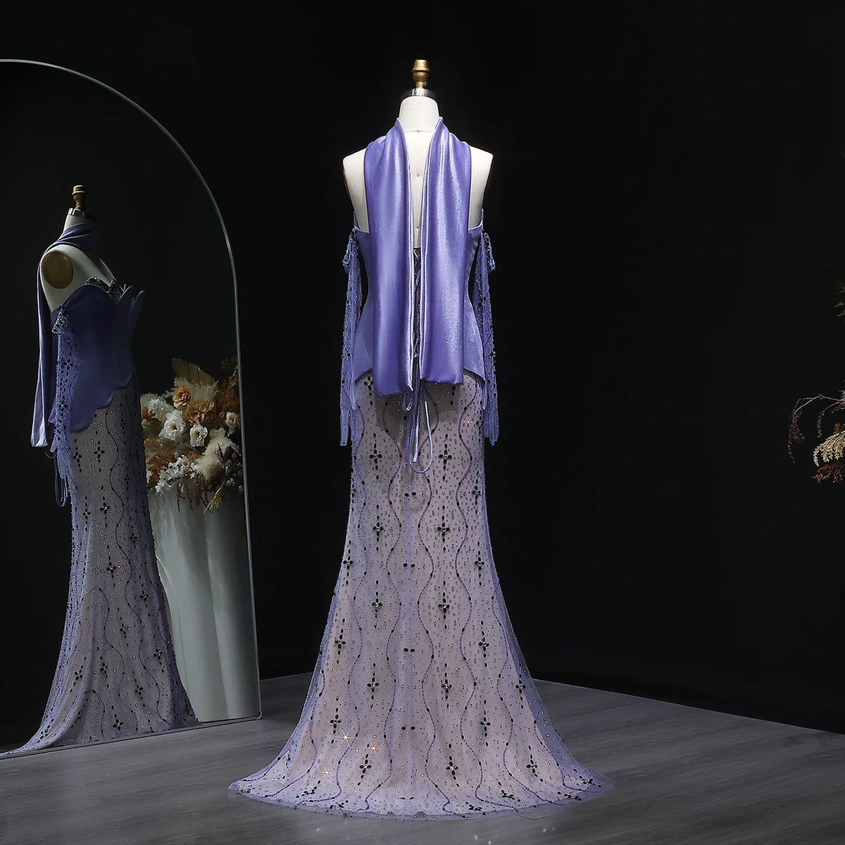 Purple Beaded Two Piece Evening Dress with Scarf SS269
