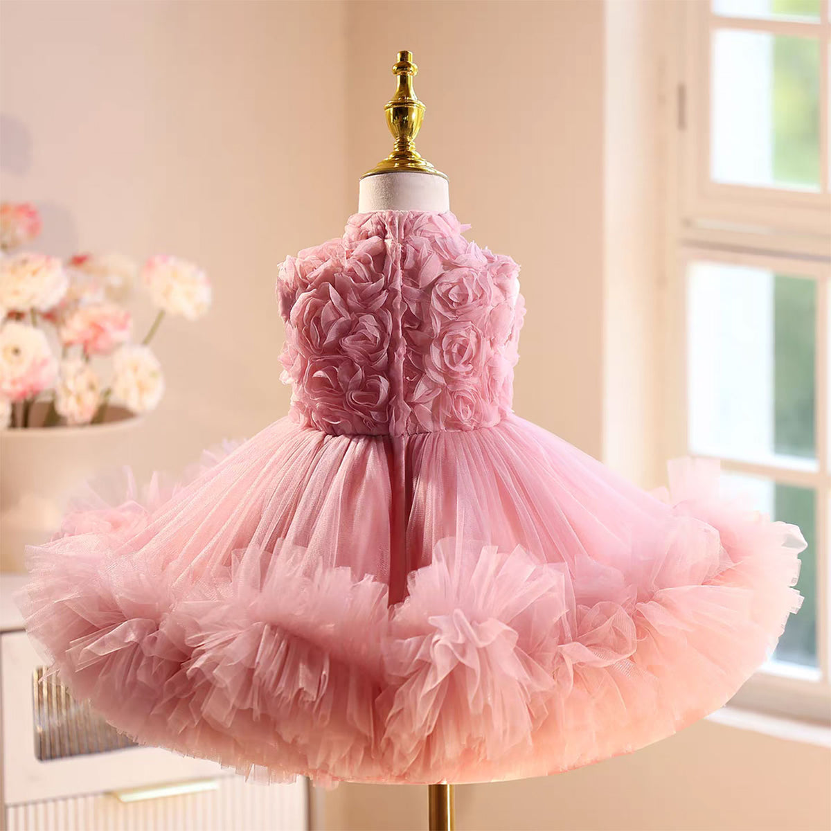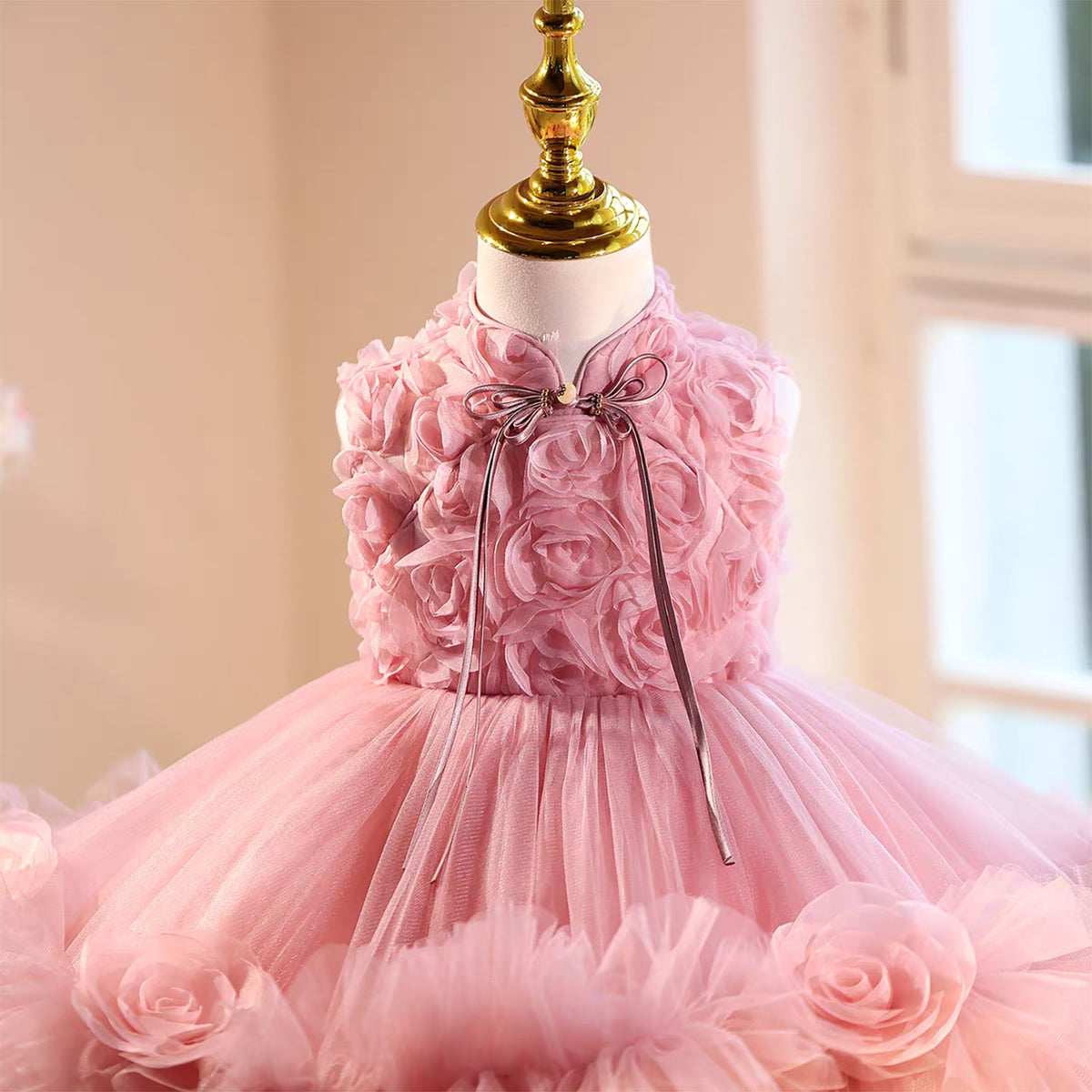 The Jill Mandarin neckline sleeveless pink tulle flower girl dress J559 offers a refined silhouette with its distinctive Mandarin collar and delicate sleeveless cut. Crafted from soft pink tulle, this dress provides a graceful and airy feel, ideal for formal events. The elegant neckline enhances the dress’s sophisticated charm, while the lightweight fabric ensures comfort throughout the day. Perfectly designed for young flower girls, it balances style and ease for a memorable occasion.