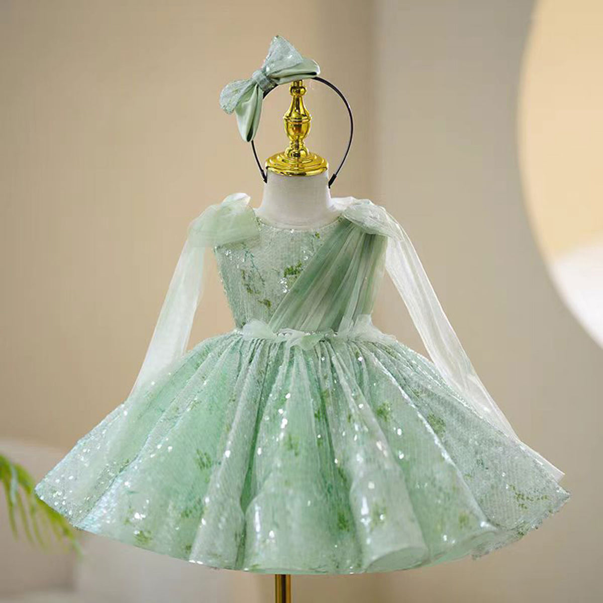 Charming Sequined Lace Tulle Flower Girl Dress With Bow J397