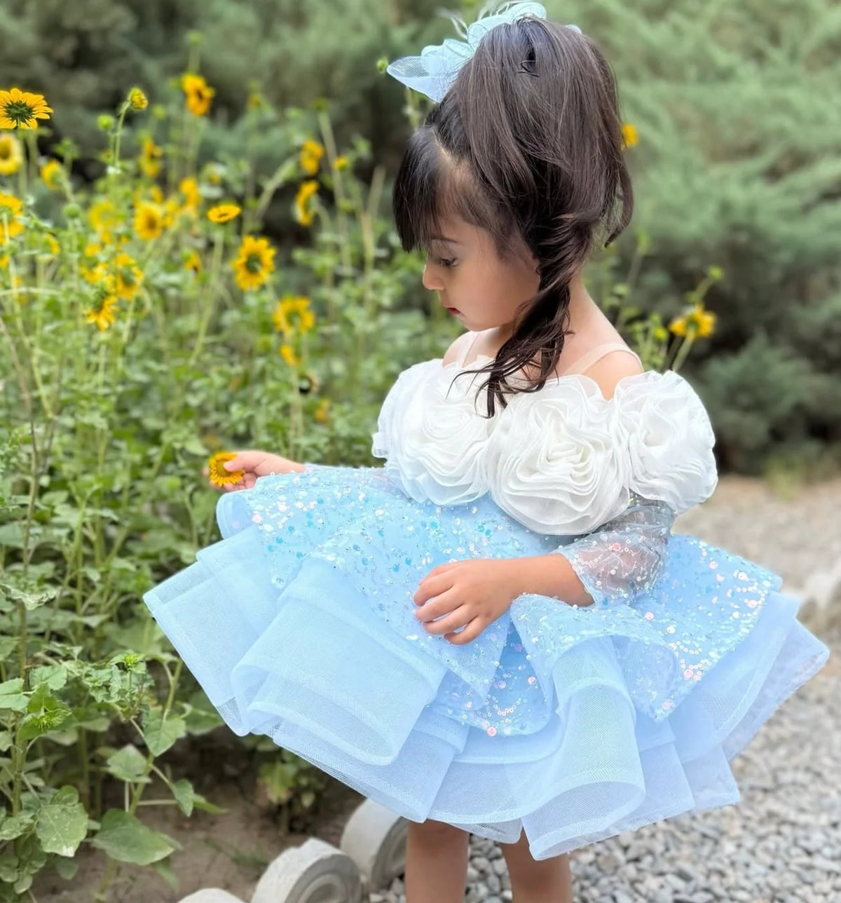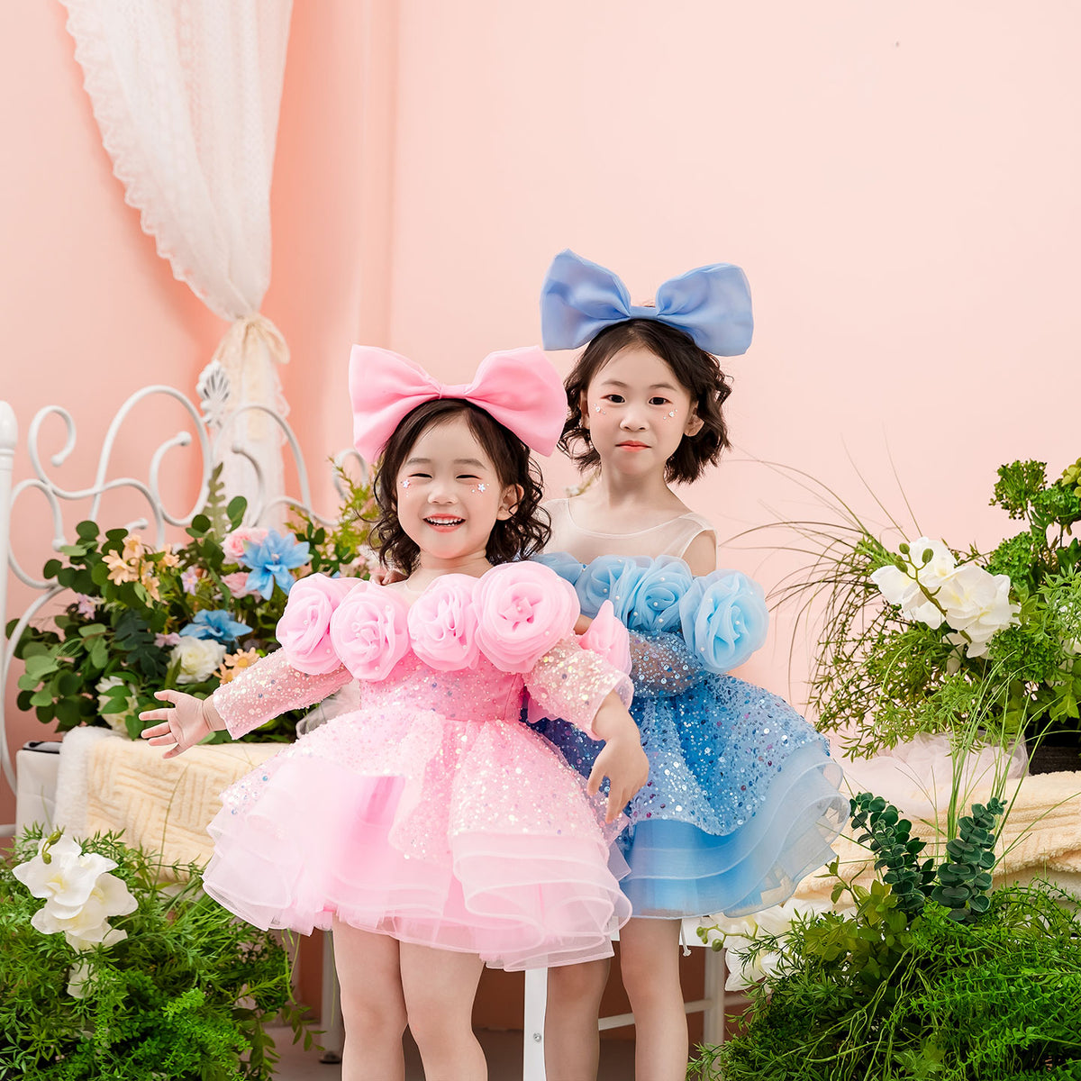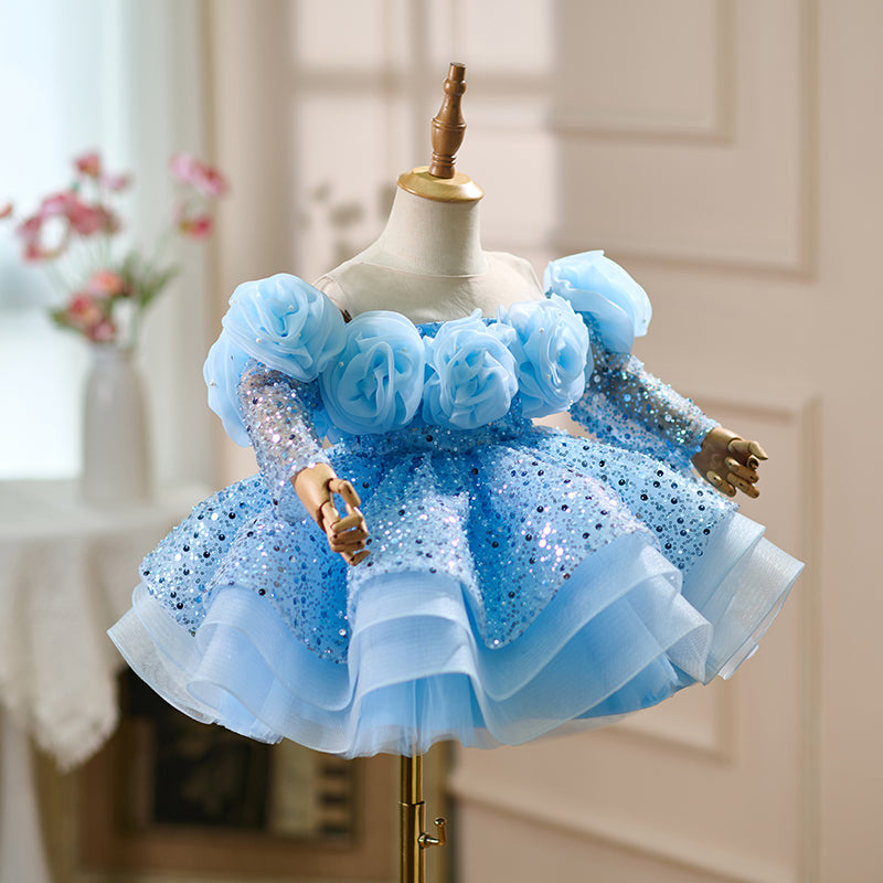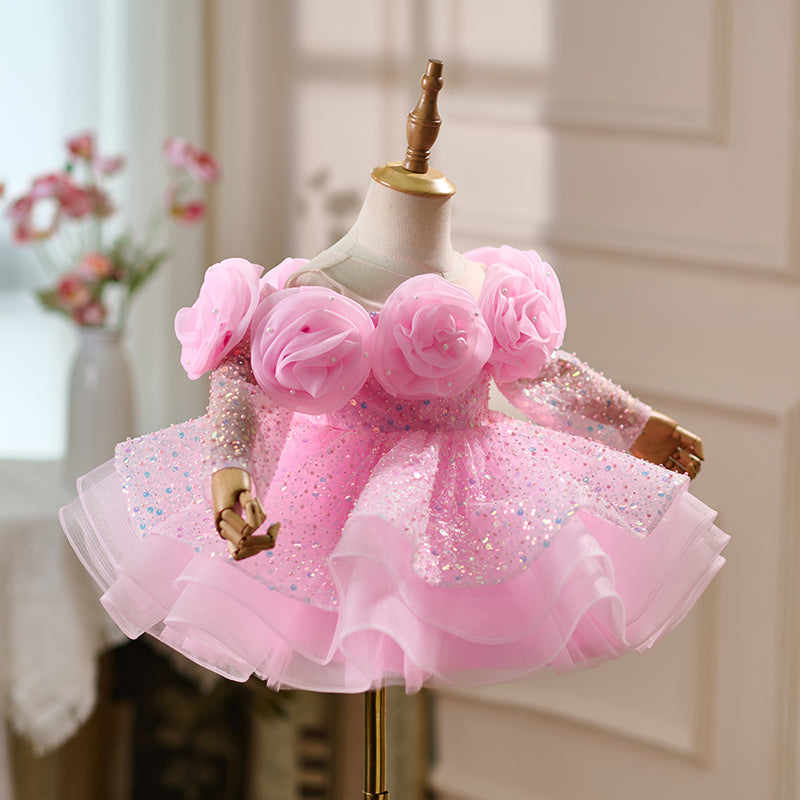 Pink Elegant Handmade Flowers Sequin Girl Dress D099
