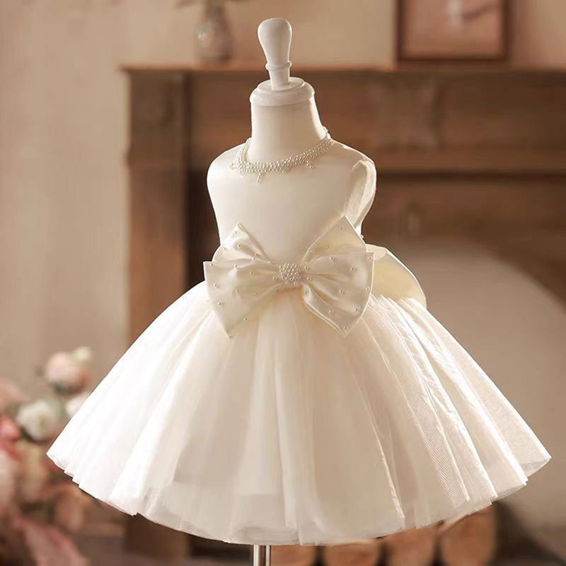 Elegant White Flower Girl Dress with Bow Satin Ball Gown J205