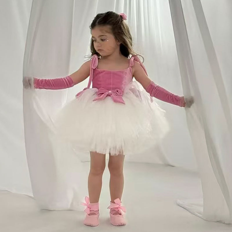 Princess Pink Wedding Flower Girl Dress with Glitter Tulle and Waist Bow D140