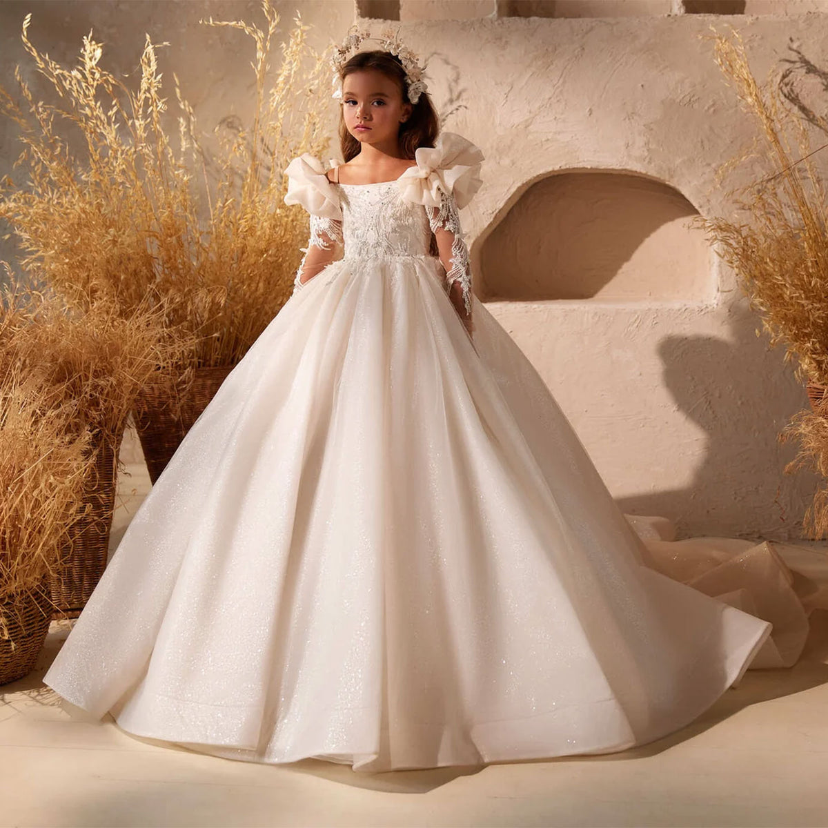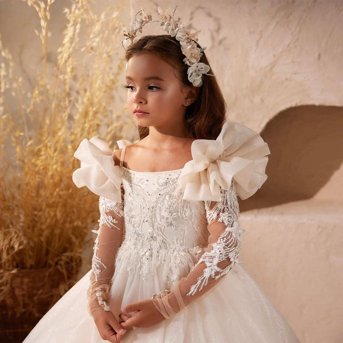 This dreamy luxury white dress is perfect for any young princess attending a wedding or birthday party. The delicate flower detailing adds a touch of elegance, while the soft fabric ensures comfort for your little one. Make her feel like a true princess in this stunning gown.