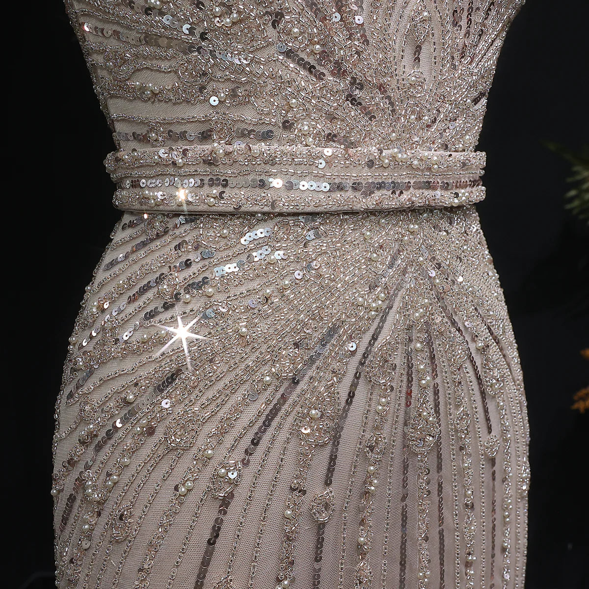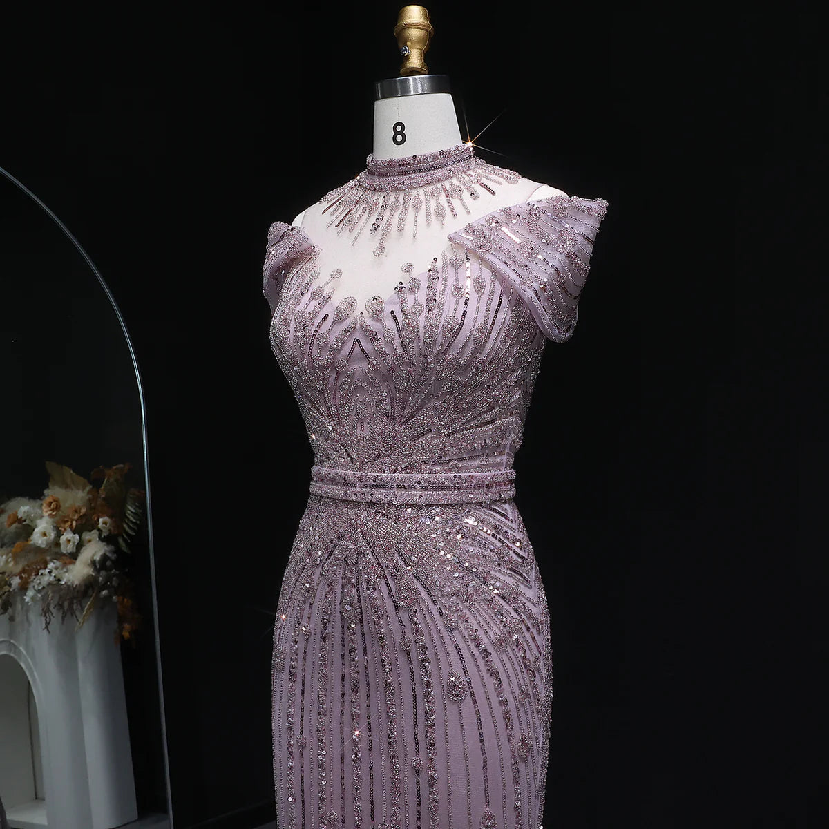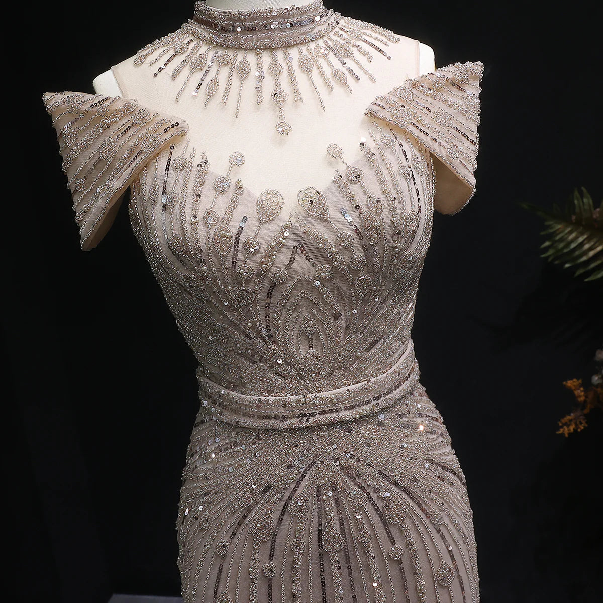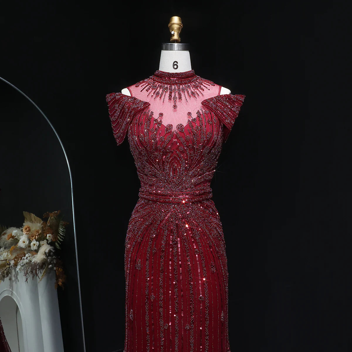 Elegant Off-Shoulder Beaded Evening Gown SS109